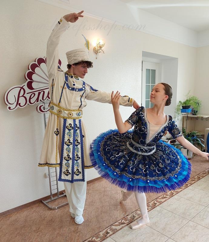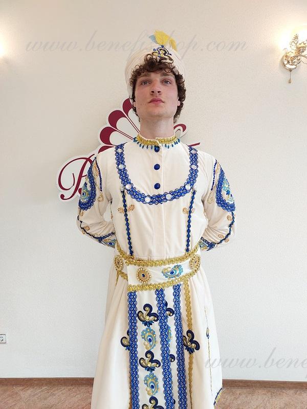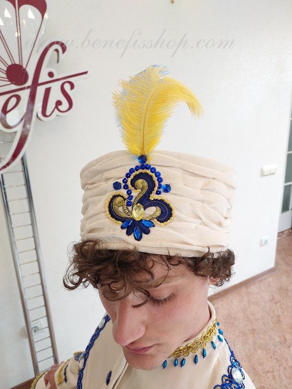 Detalii: camisol, curea, pantaloni,articol decorativ pentru cap. Jacheta este confecționată din catifea cu o încuietoare ascunsă. O centură cu două cozi. Pantaloni din biflex. Decor: aplicații, strasuri, împletitură, paiete, margele.