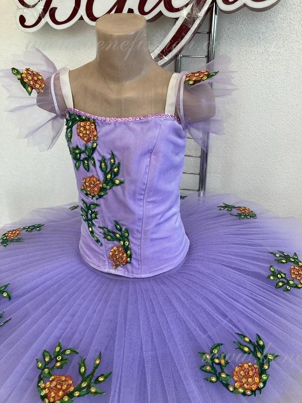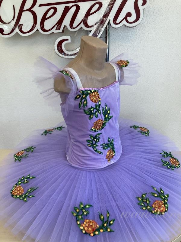 Corsetul se fixează în spate într-un rând de împletituri de croșetat, în interiorul cablului servește pentru a regla dimensiunea în zona pieptului.Tutu: este format din 5 volane, pe pantaloni scurți din b / f (fără jug) cu margini căzute.