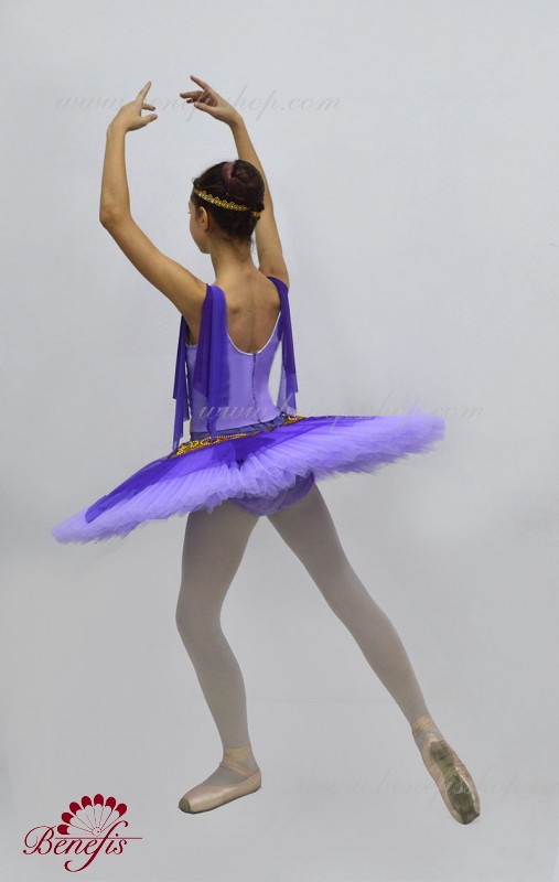 Corsetul este confectionat din tesatura semi-elastica (tafta). Fusta este realizata pe baza unui tutu de bază profesional T0001B.