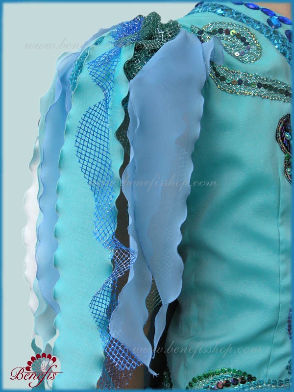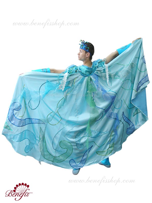 Costumul este indeplinit dintr-o tesatura densa si se incheie pe cirlige pe spate. Jacketul este infrumusetat cu aplicatii, strase, paiete, panglica in ton cu costumul. La nivelul umerilor, sunt cusute panglici din plasa si din sifon, frumos ciselate, ce aduc aminte de alge marine. Decorul jacketei si trenciul dupa culoarea si stilul sau se aseamana cu lumea submarina. Trenciul larg de satin pe pardoseala, este incheiat de jacket cu ajutorul a doi nasturi, care sunt cusute pe umeri. Minecarii in baza de cauciuc, sunt infrumusetate cu paiete. Obada este indeplinita din strase si margele. Costumul este folosit in baletul “Napoli”, “Perlele si Oceanul” sau ca costum pentru scena.