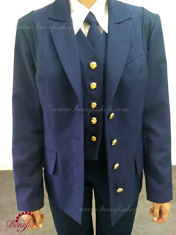 Jacheta si vesta sunt realizate din tesatura semi elastica(gabardina), se incheie in față cu nasturi.
