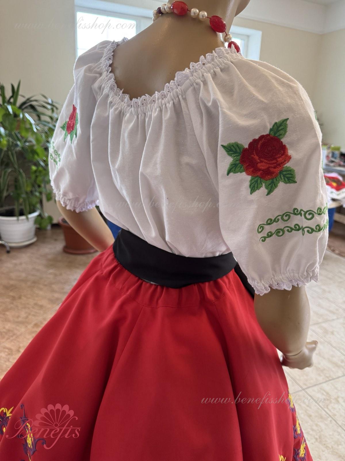 Detalii:o centură. Fabricat din gabardină. Broderia este realizată în stil național pe o mașină specială.Bluza și fusta nu sunt incluse în preț. În plus față de centură, puteți comanda o bluză J0352 și o fustă J0131.