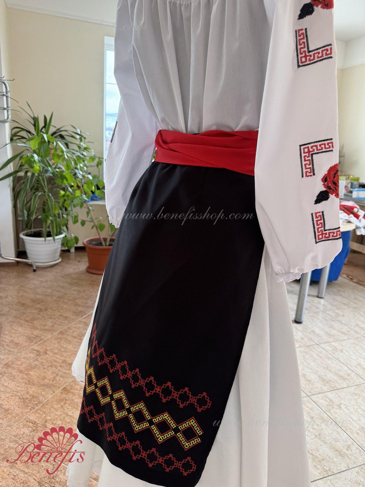 Costumele nationale moldovenesti sunt fabricate din materiale naturale de înaltă calitate. Pentru femei si fete:fiind alcatuit din bluza si fusta alba , catrinta si briu, toate imitind un imprimeu inspirit din modelele populare moldovenesti. Costumele sunt executate respectindu-se cele mai bune tradiţii ale culturii Moldovenesti.Bluza, centura nu sunt incluse în preț. În plus față de fustă, puteți comanda bluza J0376,centura J0370.