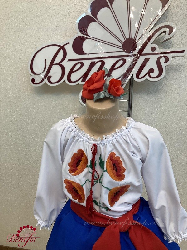 Detalii: bluza, fusta,briu. Fusta este realizată din materiale naturale de înaltă calitate. Bluza este confecționată din țesătură de cămașă. O bandă elastică este introdusă pe decolteu și mâneci și este decorată cu dantelă naturală. Broderia este realizată în stil național pe o mașină specială.