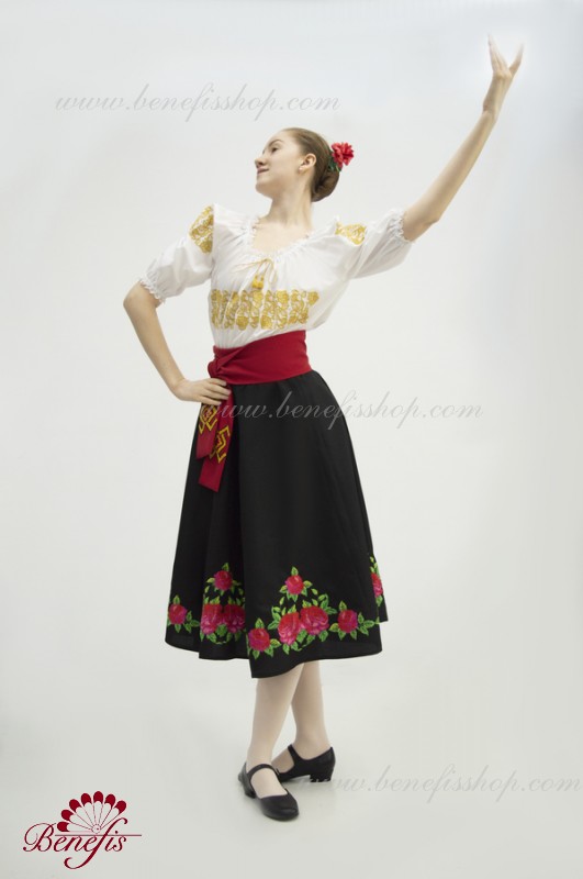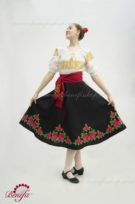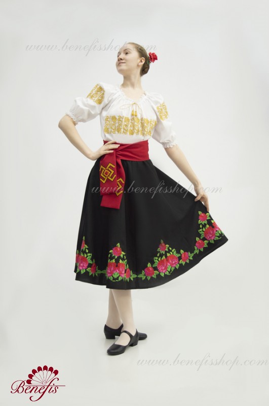Bluza este confecționată din țesătură de cămașă. O bandă elastică este introdusă pe decolteu și mâneci și este decorată cu dantelă naturală. Broderia este realizată în stil național pe o mașină specială.