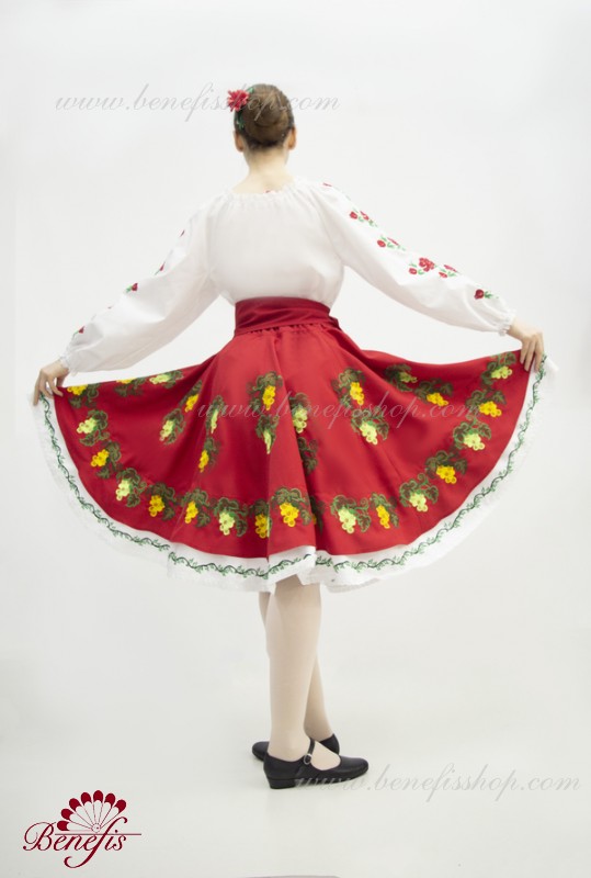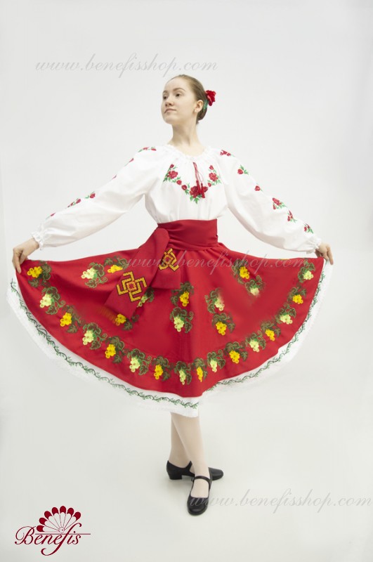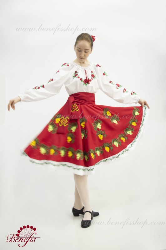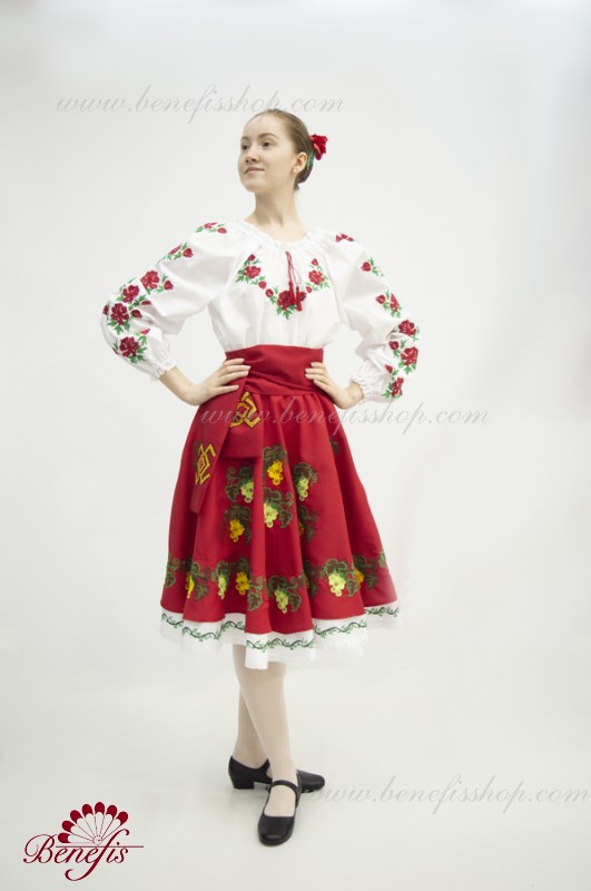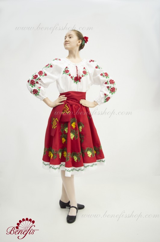 Bluza este confecționată din țesătură de cămașă. O bandă elastică este introdusă pe decolteu și mâneci și este decorată cu dantelă naturală. Broderia este realizată în stil național pe o mașină specială.