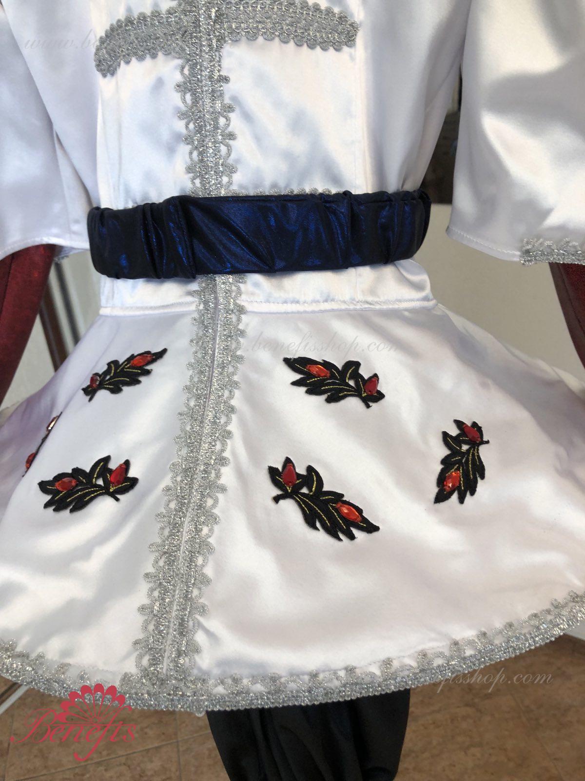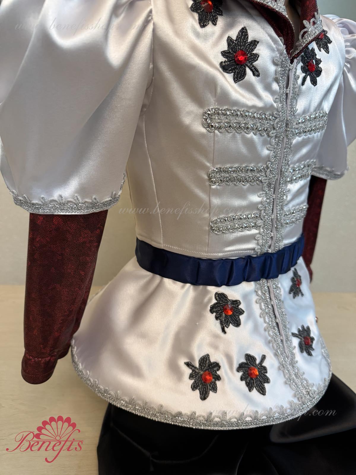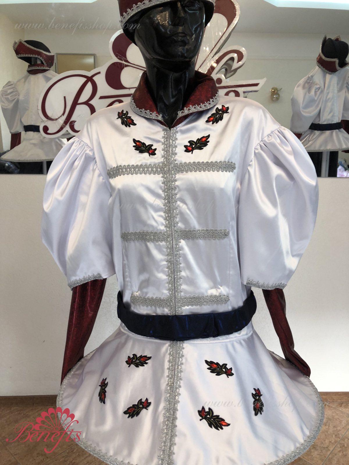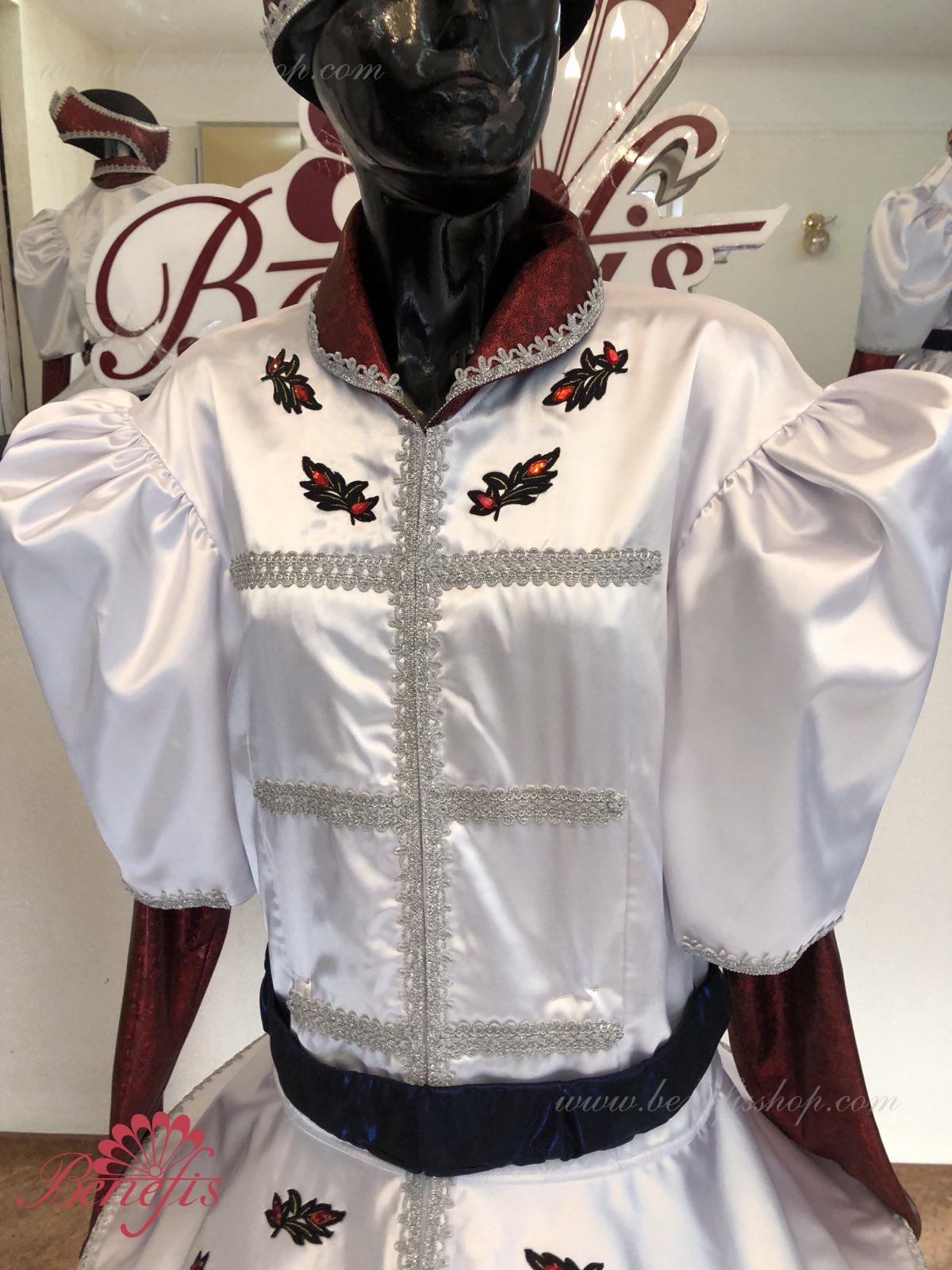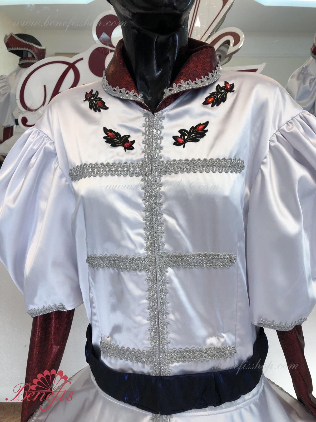 Gulerul este confecționat din țesătură semi-elastică. Mânecile și gulerul sunt realizate din Laser biflex. O bandă de cauciuc este introdusă pe fundul gulerului pentru a da formă. Decor: dantelă, aplicații, paiete, margele și pietre. Pantalonii și centura sunt confecționate din țesătură semi-elastică.