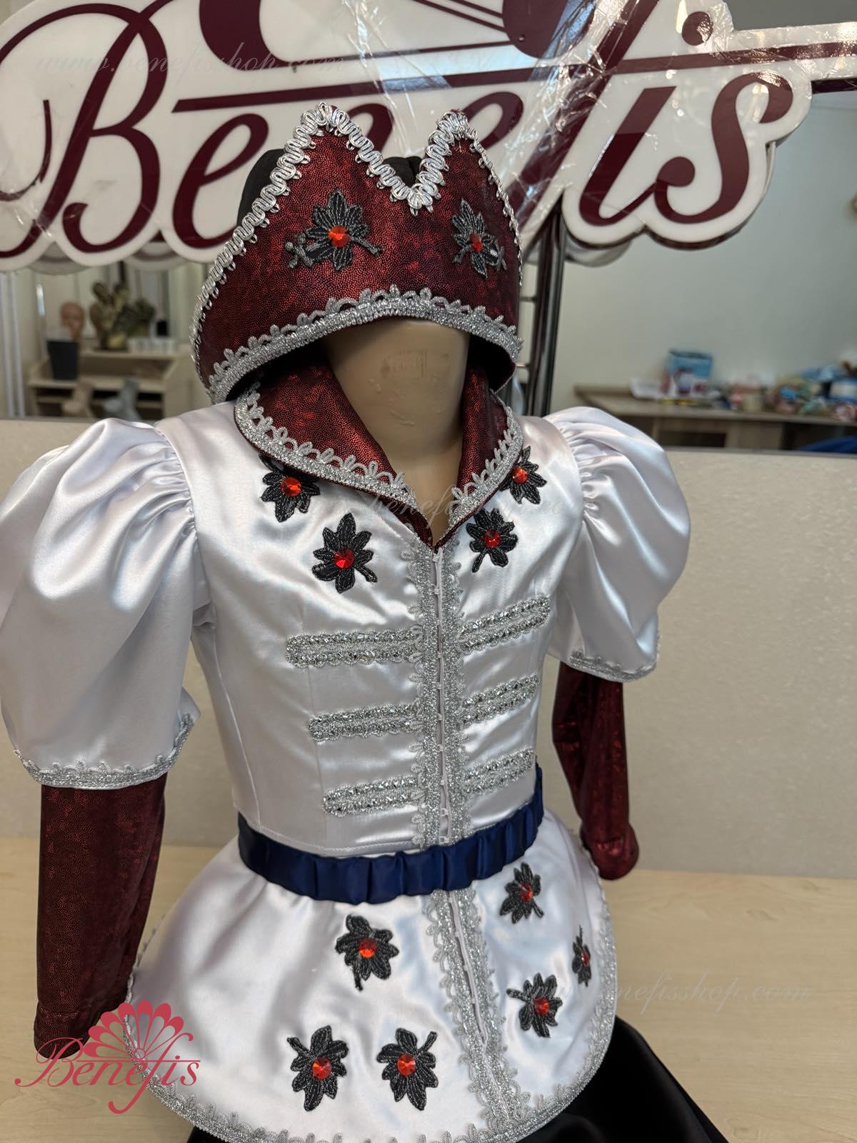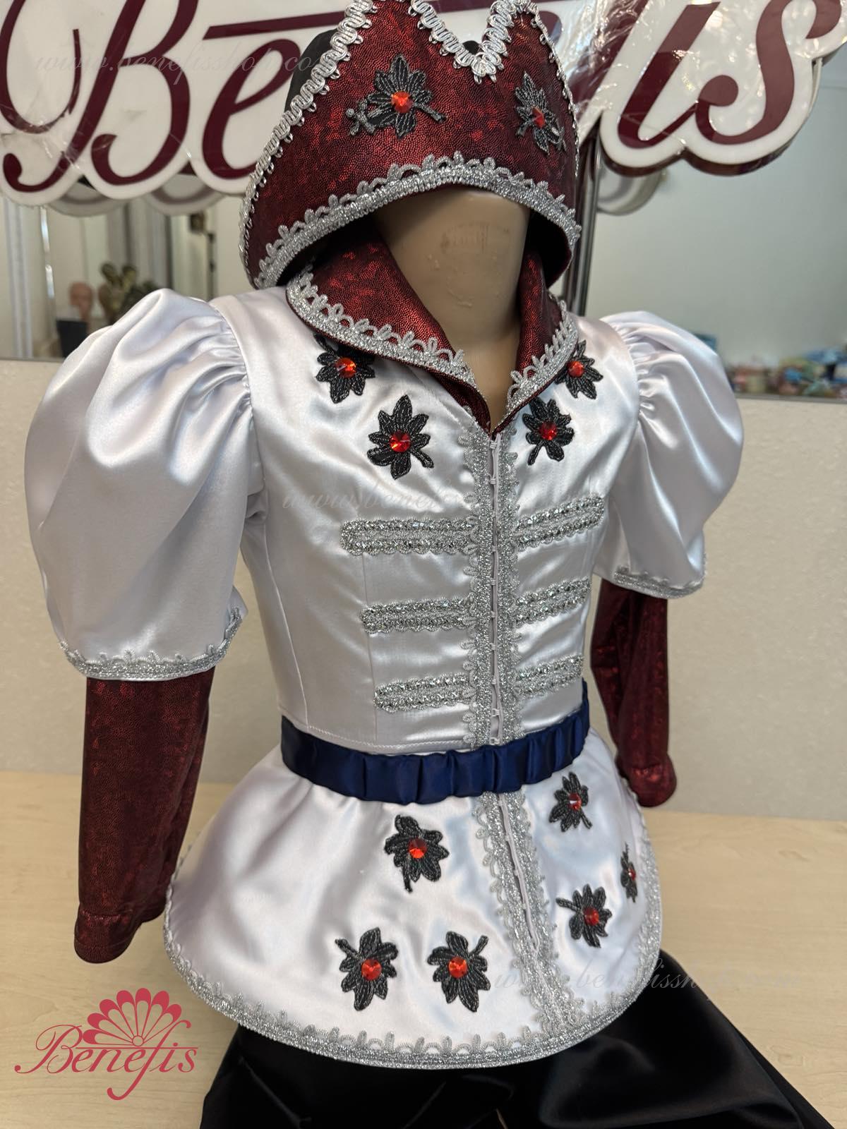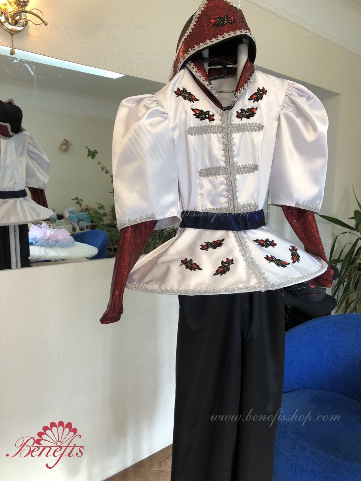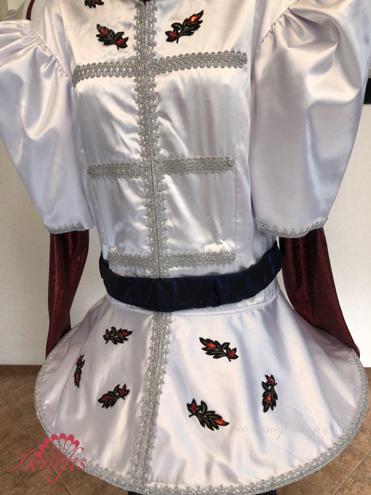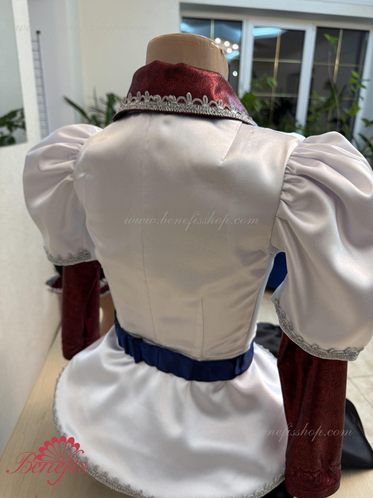Gulerul este confecționat din țesătură semi-elastică. Mânecile și gulerul sunt realizate din Laser biflex. O bandă de cauciuc este introdusă pe fundul gulerului pentru a da formă. Decor: dantelă, aplicații, paiete, margele și pietre. Pantalonii și centura sunt confecționate din țesătură semi-elastică.