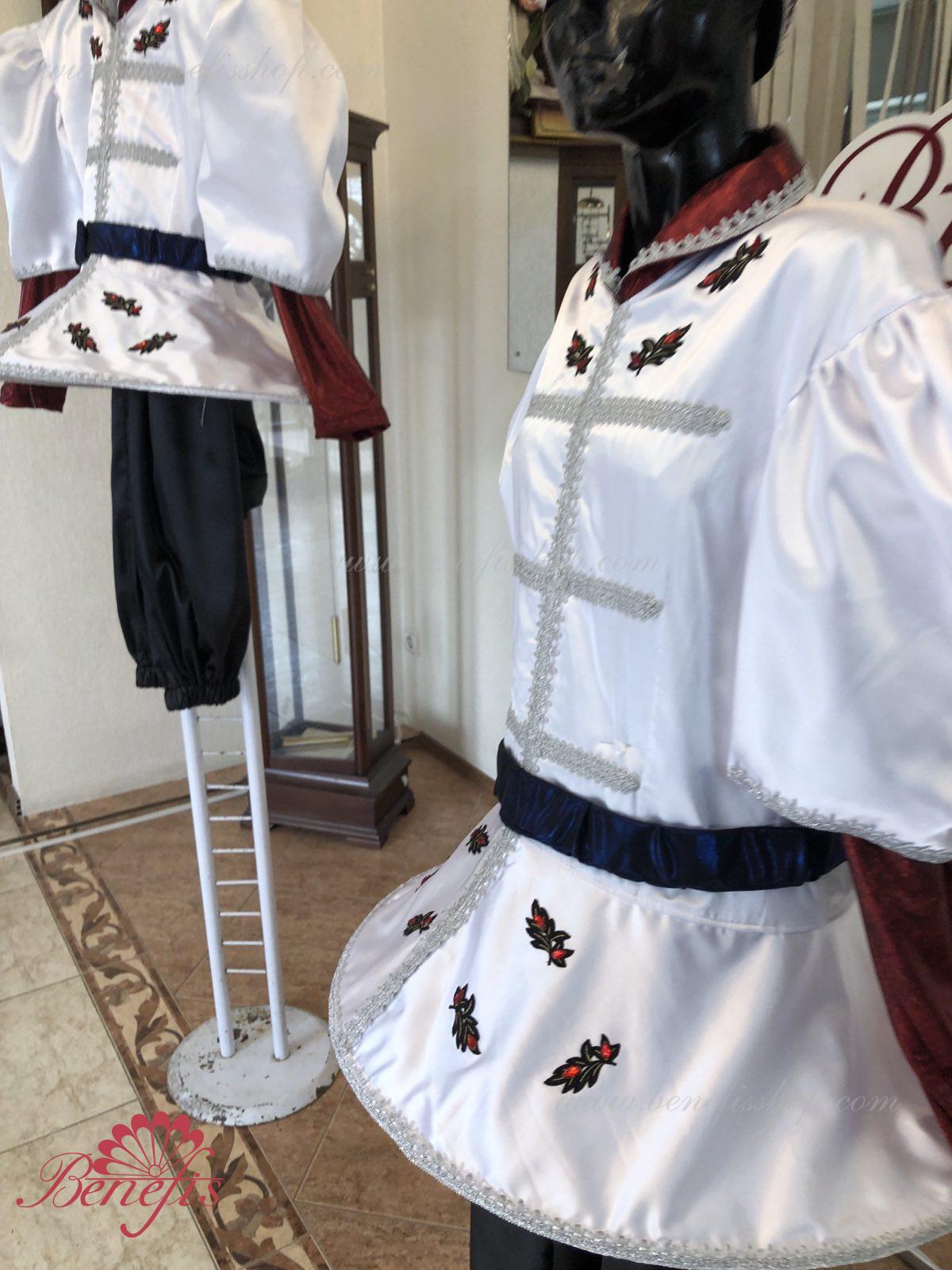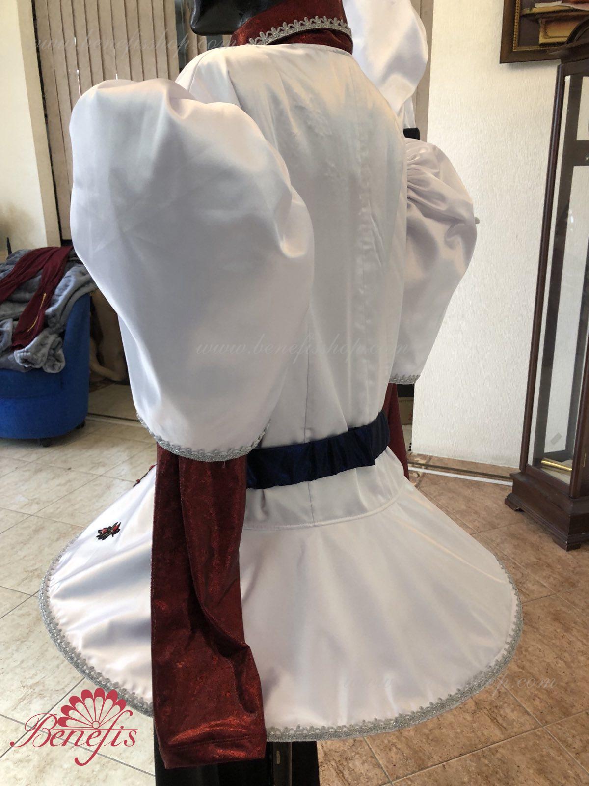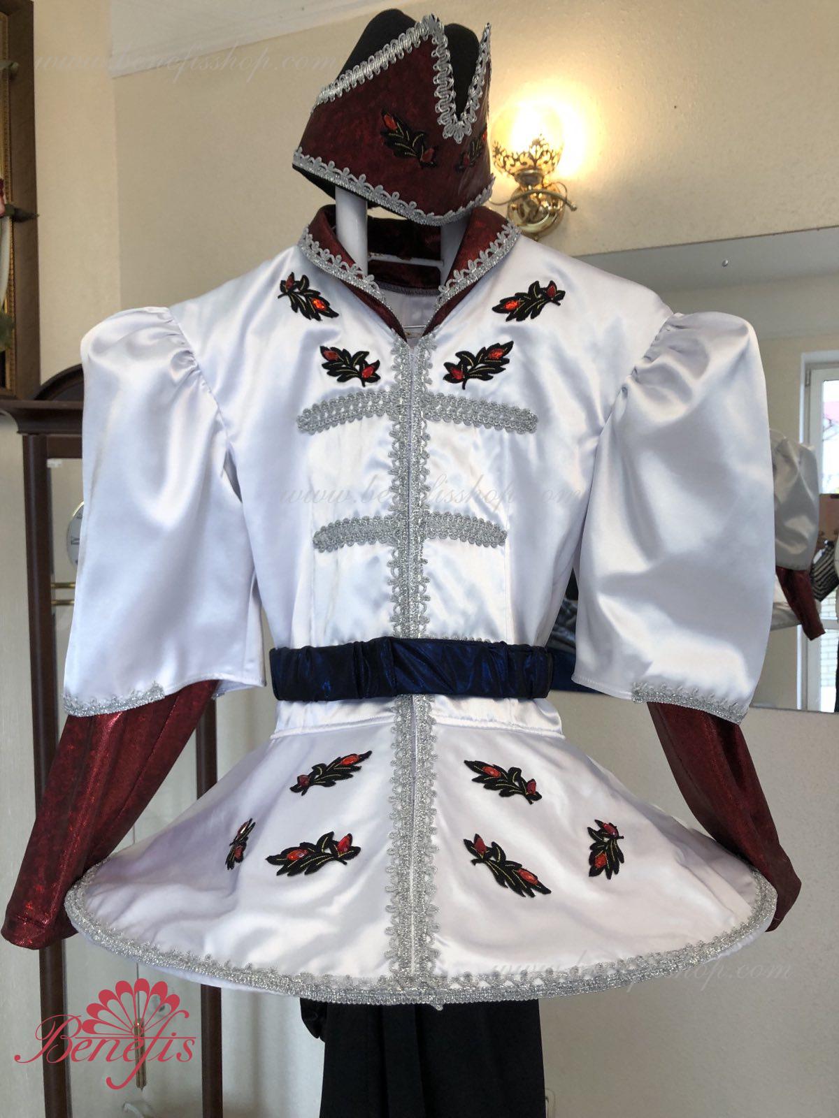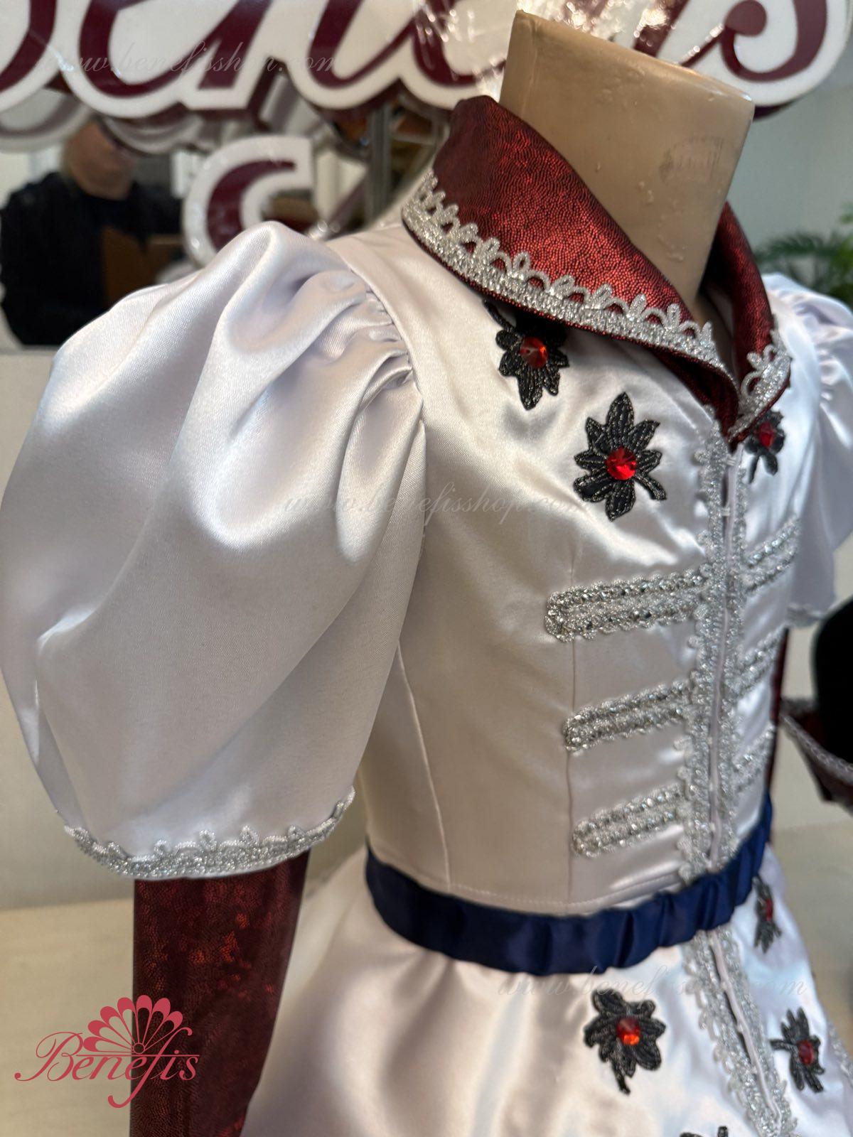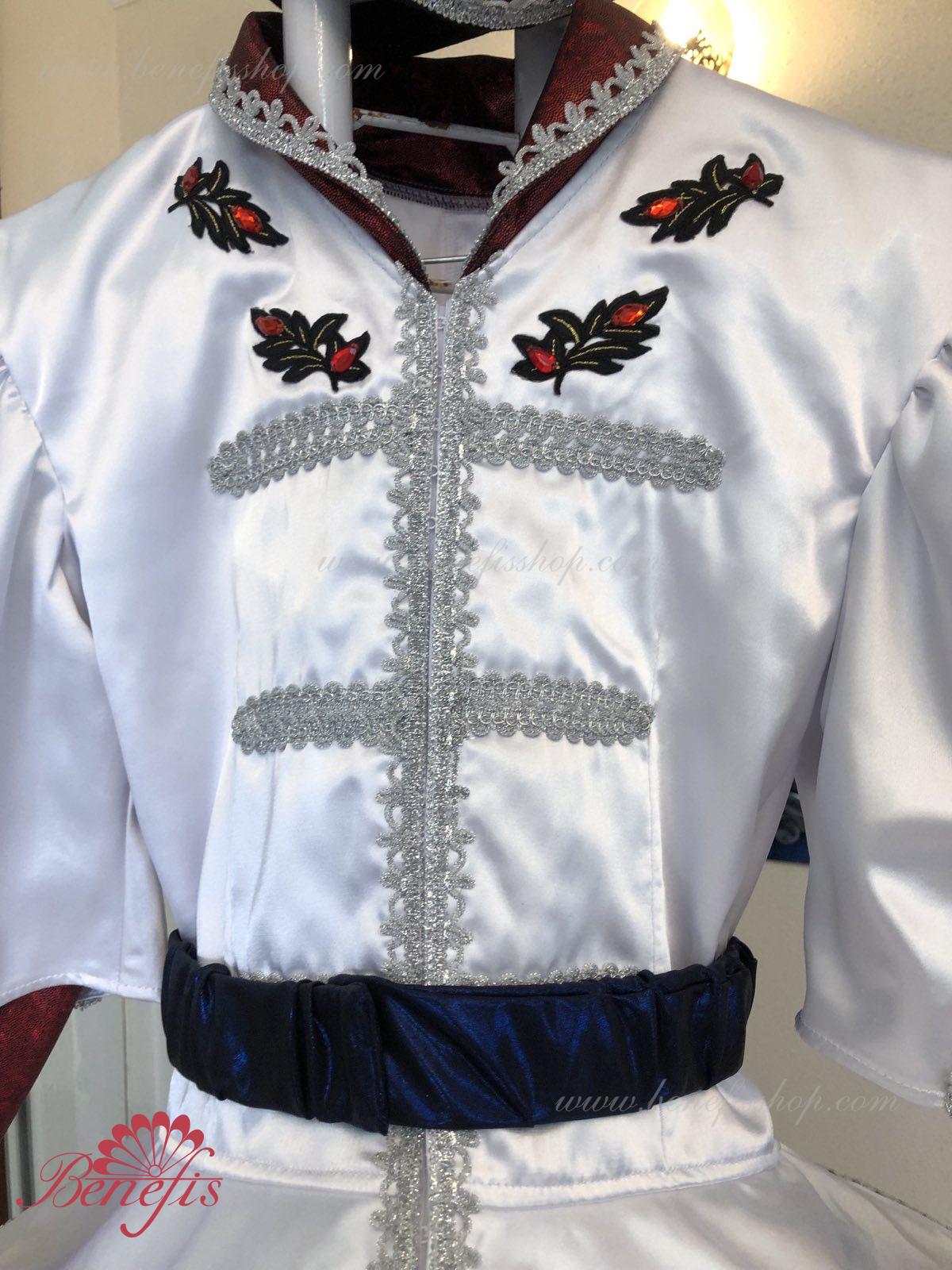 Gulerul este confecționat din țesătură semi-elastică. Mânecile și gulerul sunt realizate din Laser biflex. O bandă de cauciuc este introdusă pe fundul gulerului pentru a da formă. Decor: dantelă, aplicații, paiete, margele și pietre. Pantalonii și centura sunt confecționate din țesătură semi-elastică.