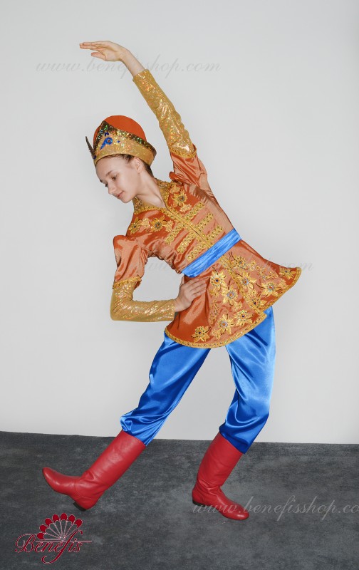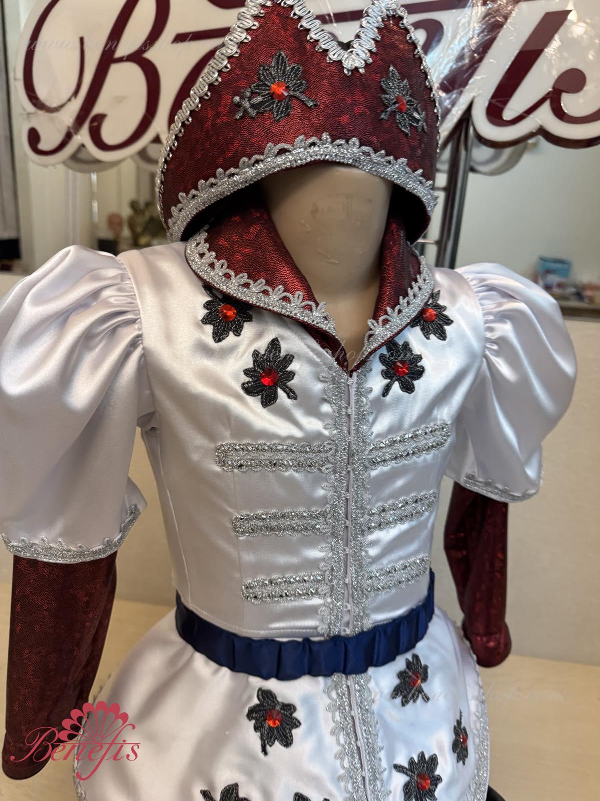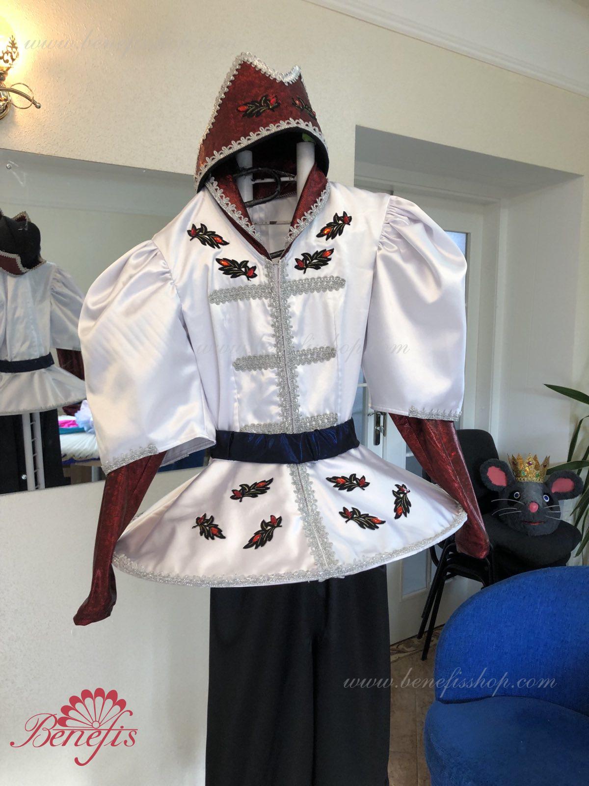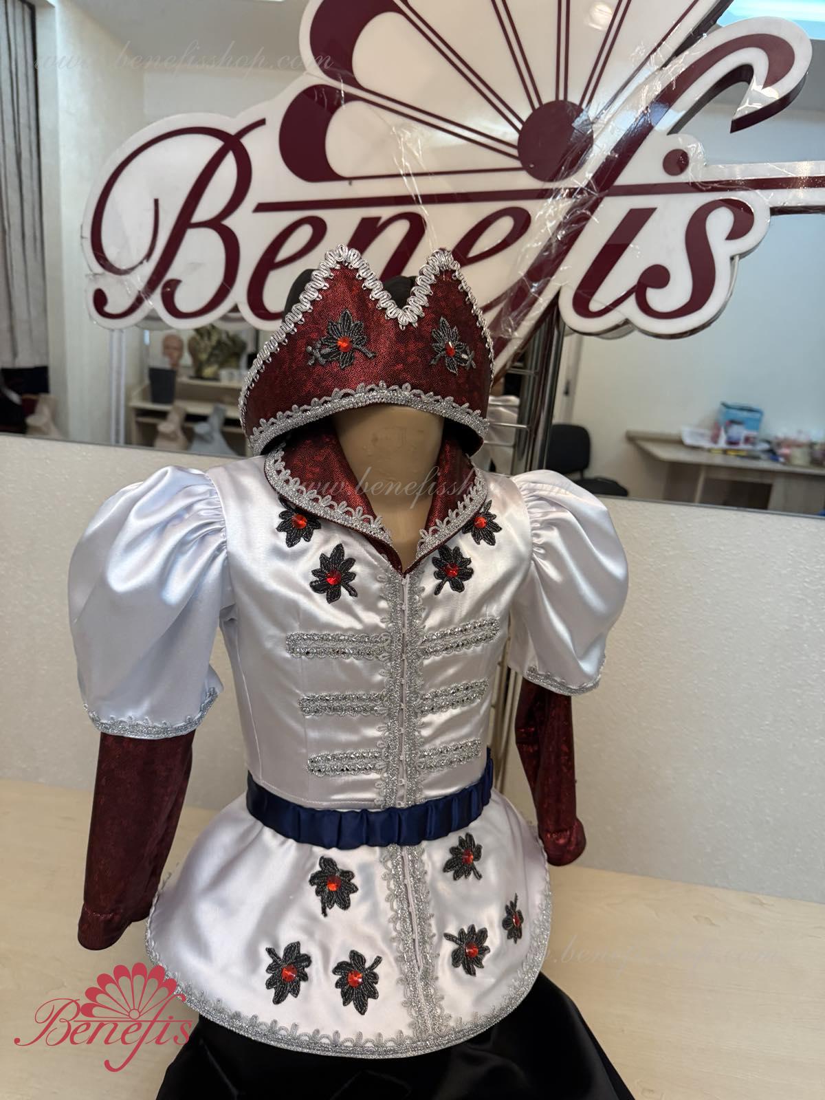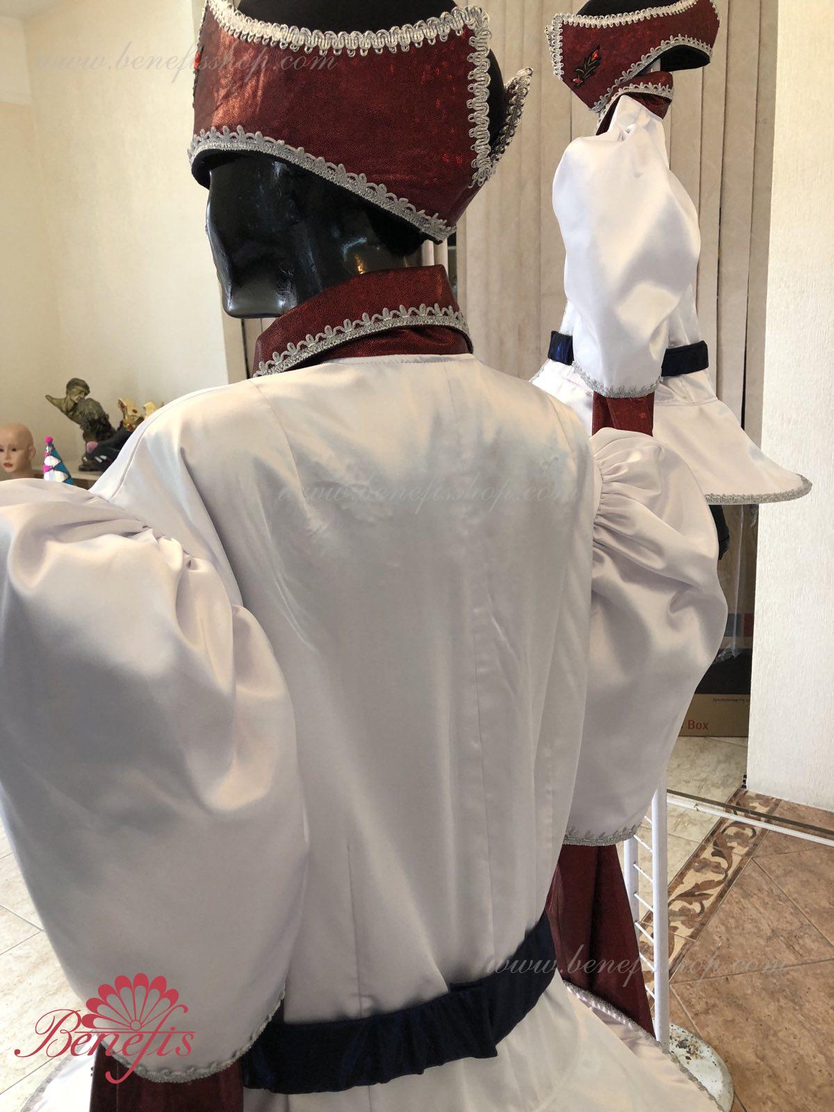 Gulerul este confecționat din țesătură semi-elastică. Mânecile și gulerul sunt realizate din Laser biflex. O bandă de cauciuc este introdusă pe fundul gulerului pentru a da formă. Decor: dantelă, aplicații, paiete, margele și pietre. Pantalonii și centura sunt confecționate din țesătură semi-elastică.