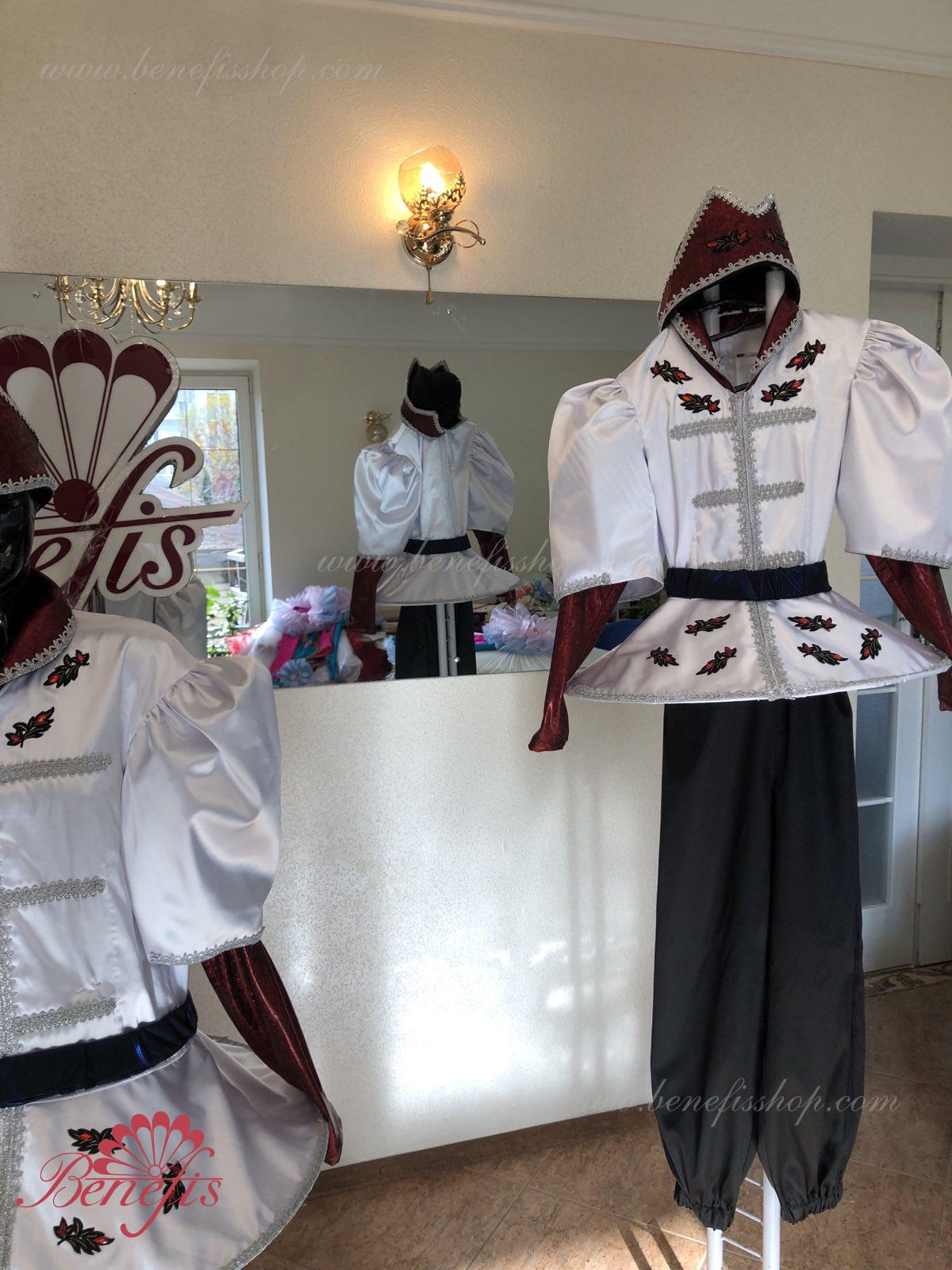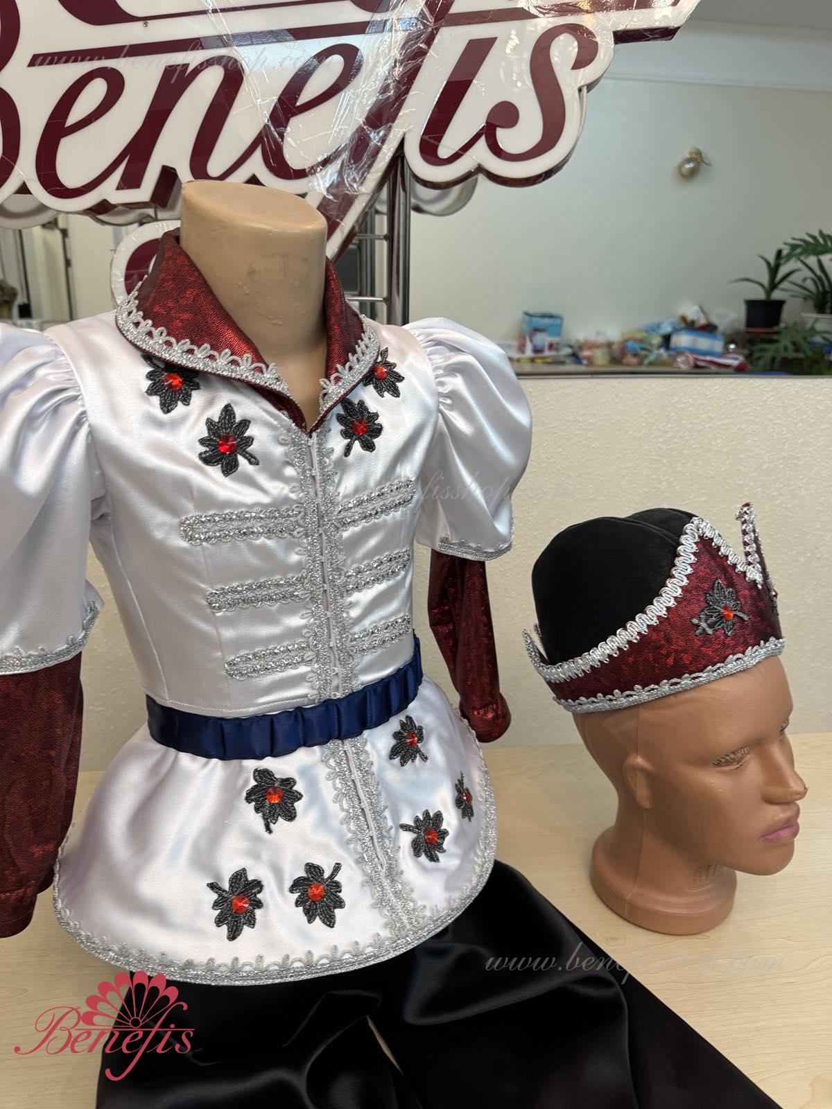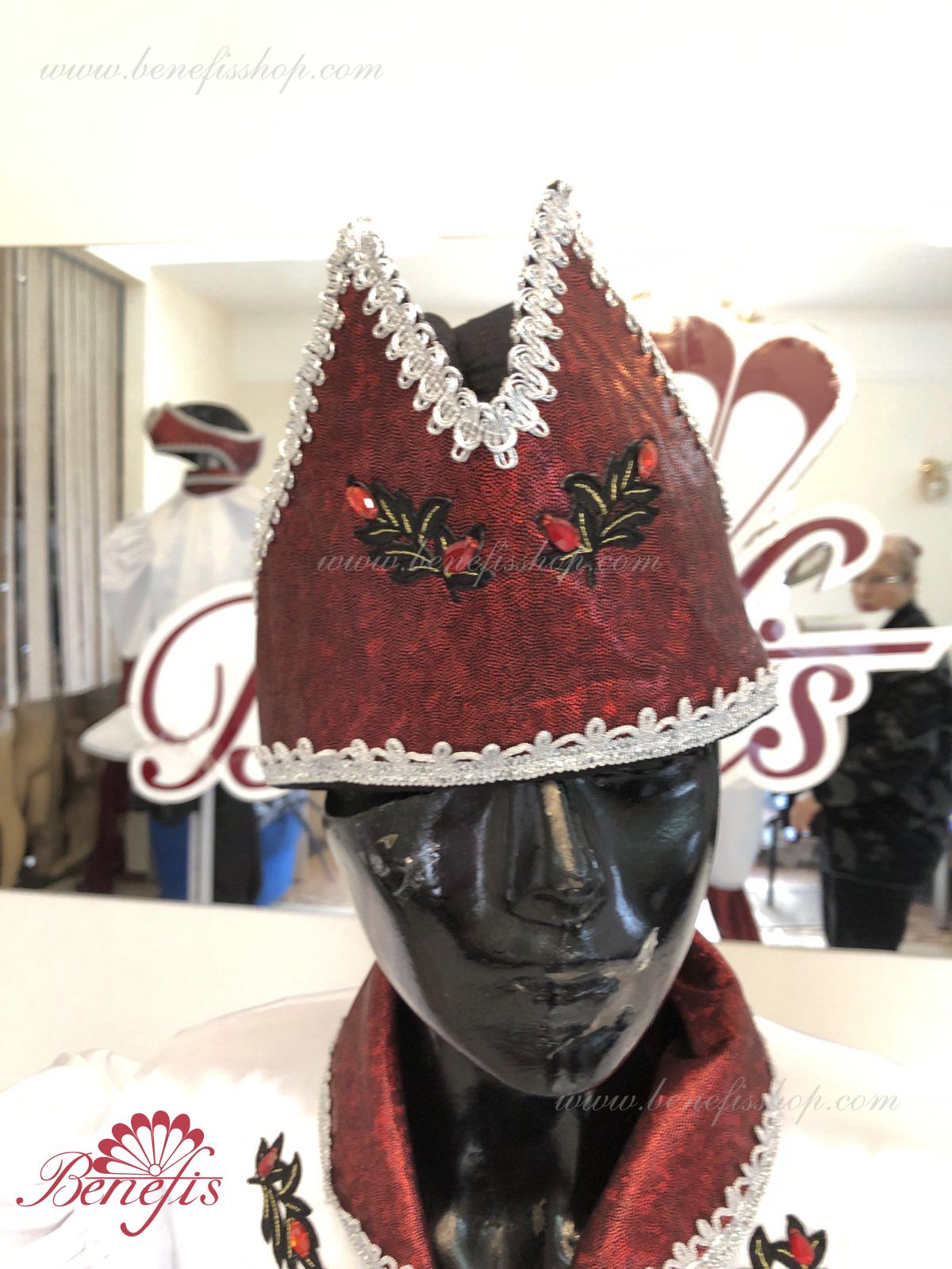Costum:sacou, pantaloni si articol decorativ pentru cap.