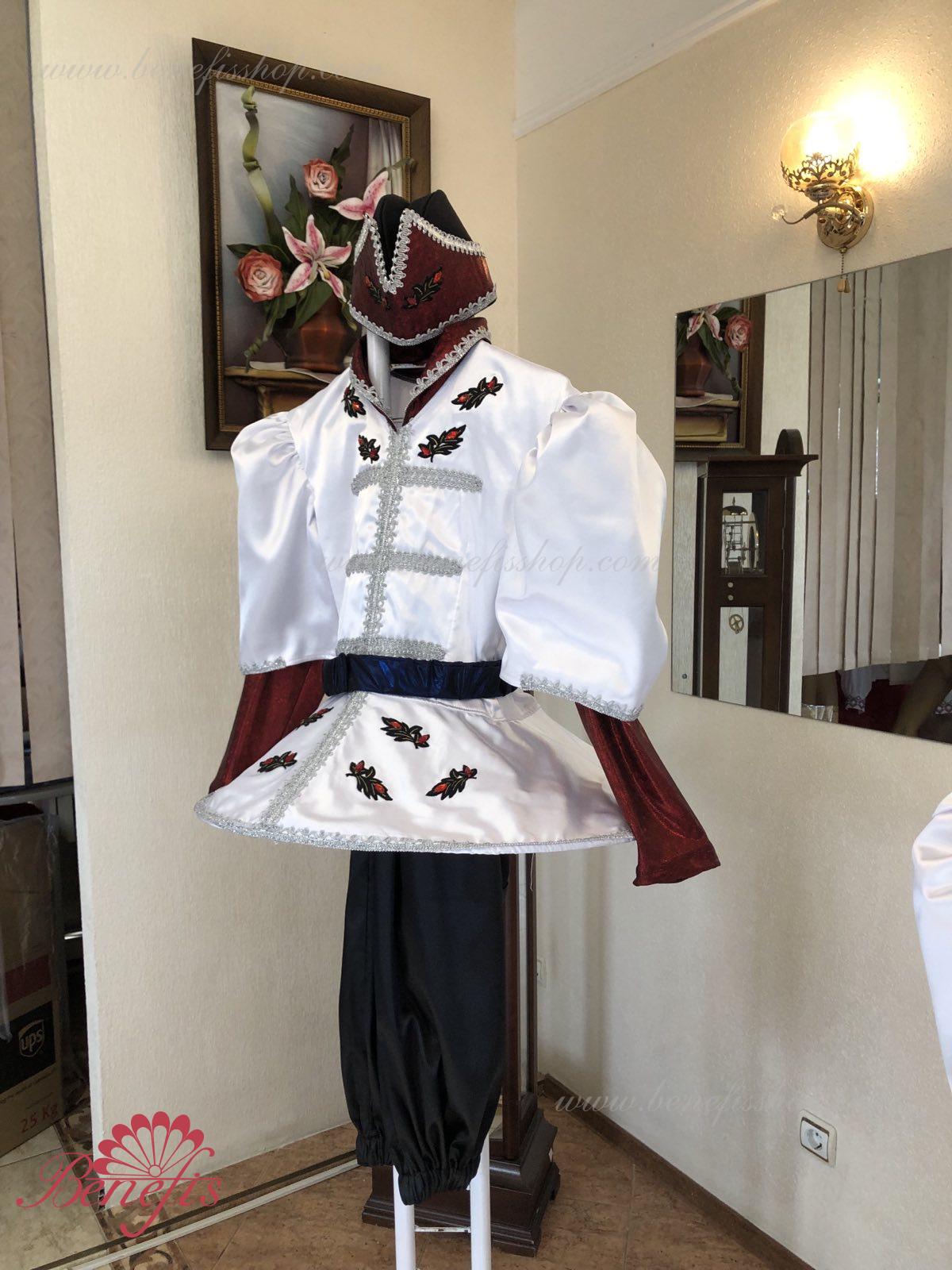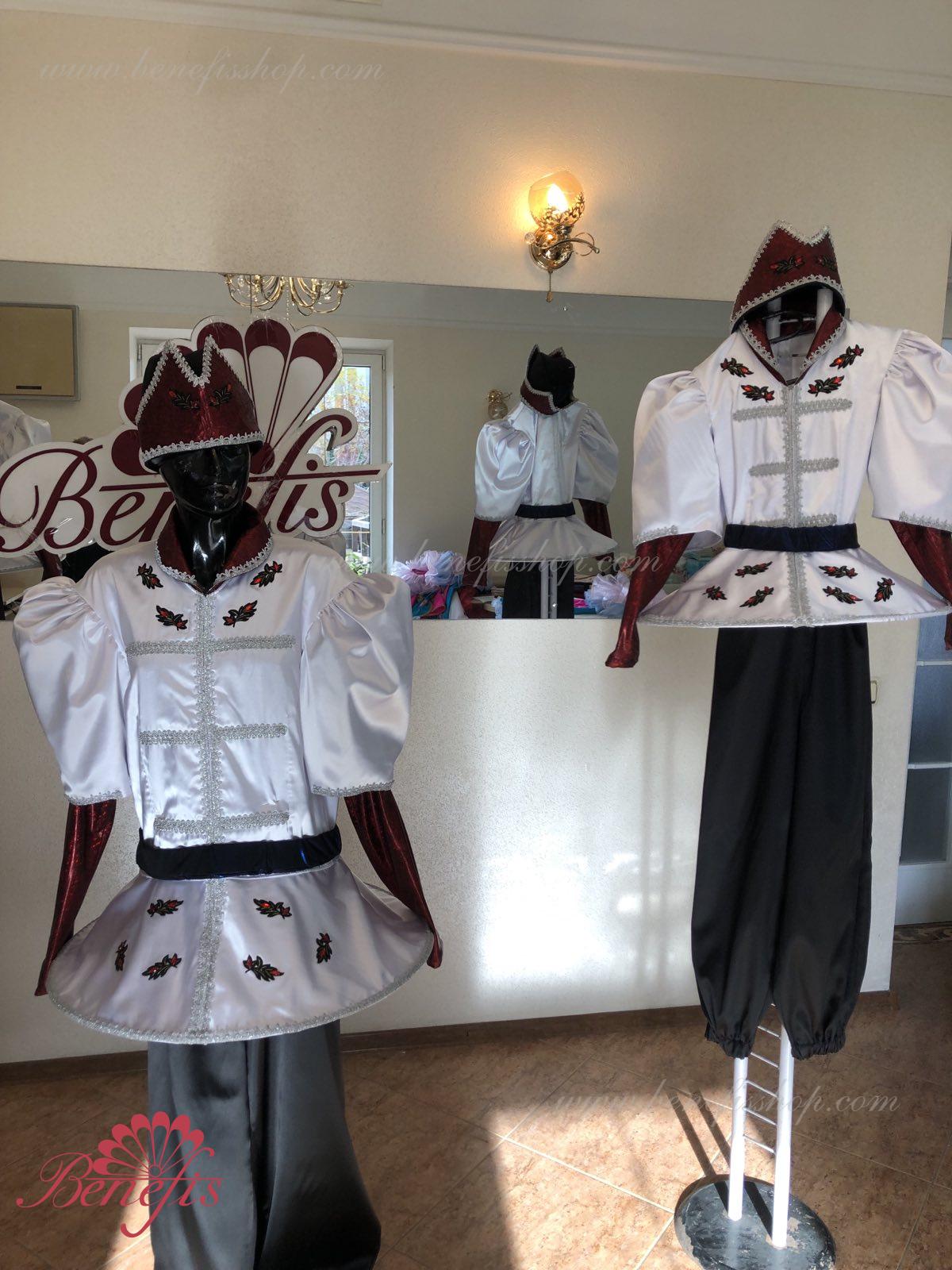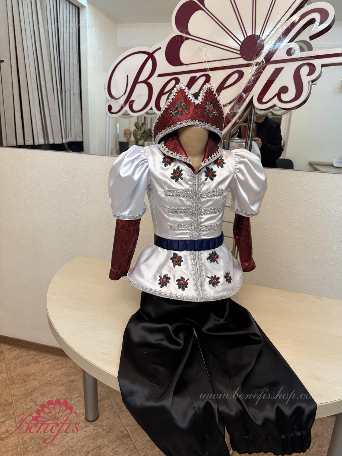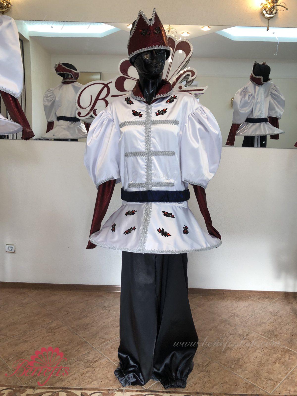 Costum:sacou, pantaloni si articol decorativ pentru cap.