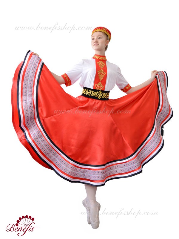 Fusta este confectionata din tesatura satinata groasa formata din 6 pene. Panglica decorativă este folosită în partea de jos a fustei.