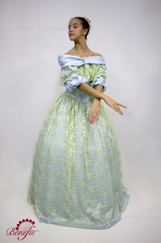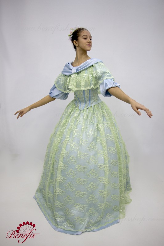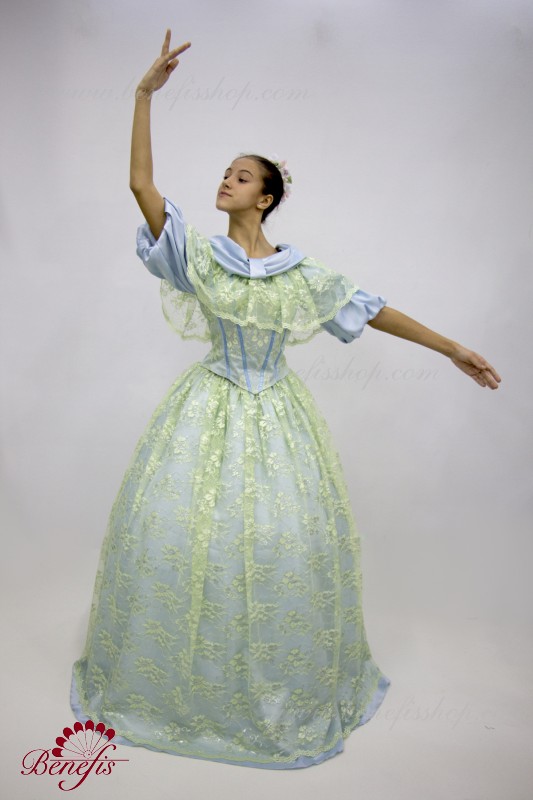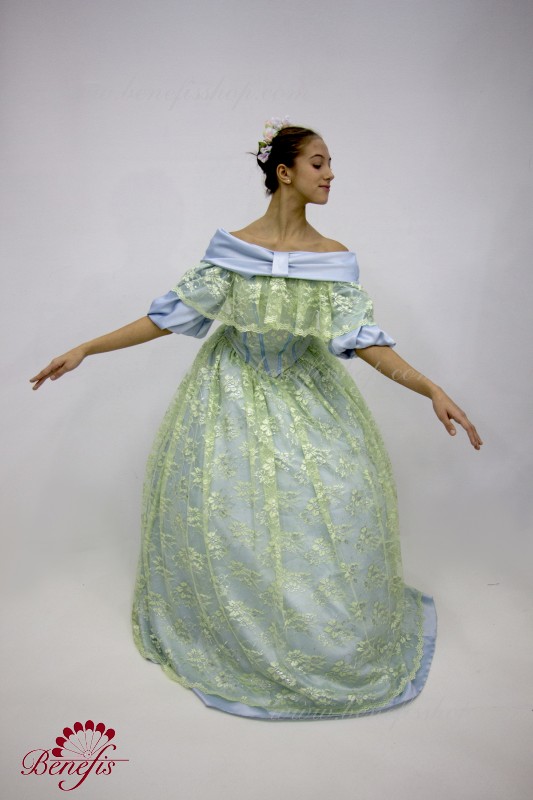 Detalii: costum. Corset + guipure + mâneci bufante. Fusta din Tulle 3 straturi de 16 pene + jug.