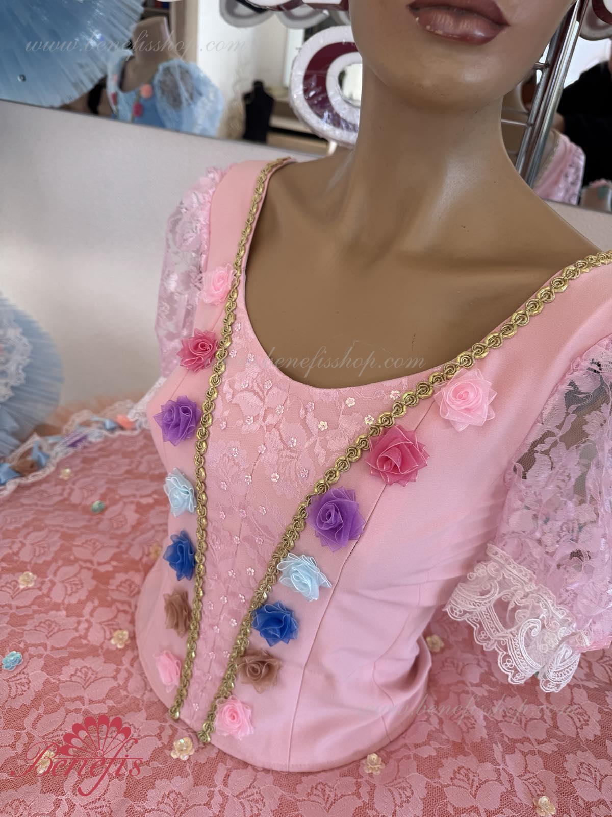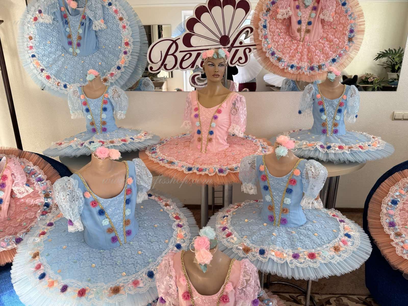 Acest costum de balet profesional este realizat pe baza unui tutu de bază profesional nr. T 0001B (vezi secțiunea"fuste de balet de bază și de repetiție").