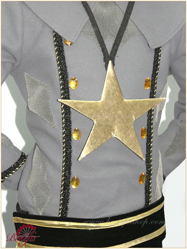 Centura si steaua de pe piept sunt confectionate din brocart si panglica aurie.