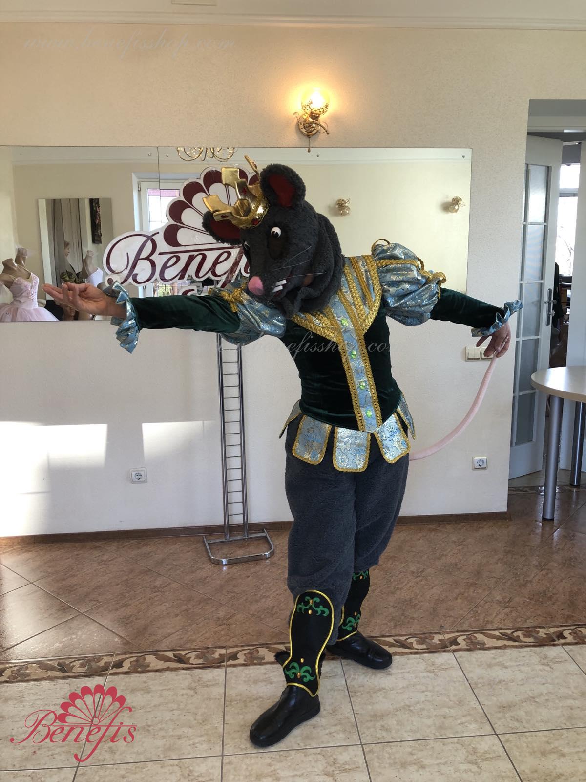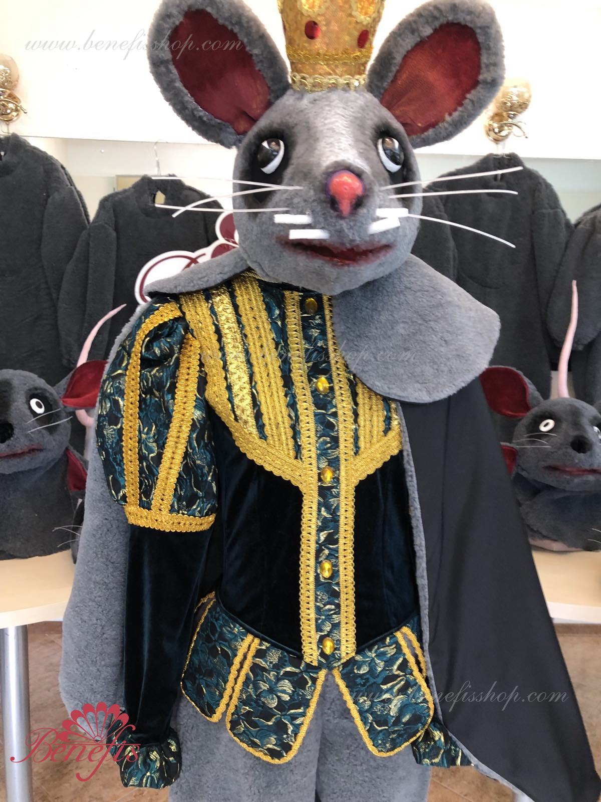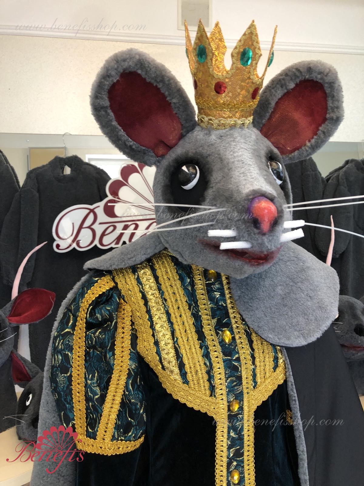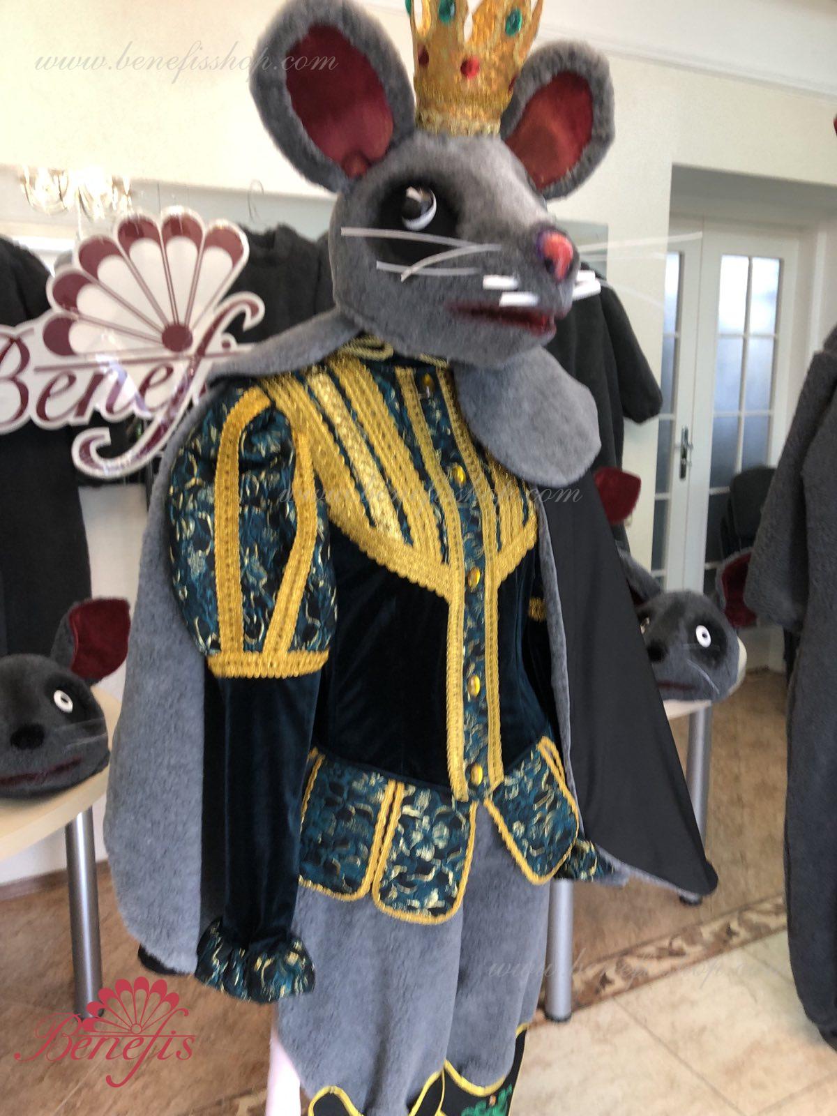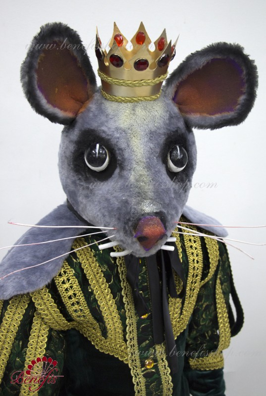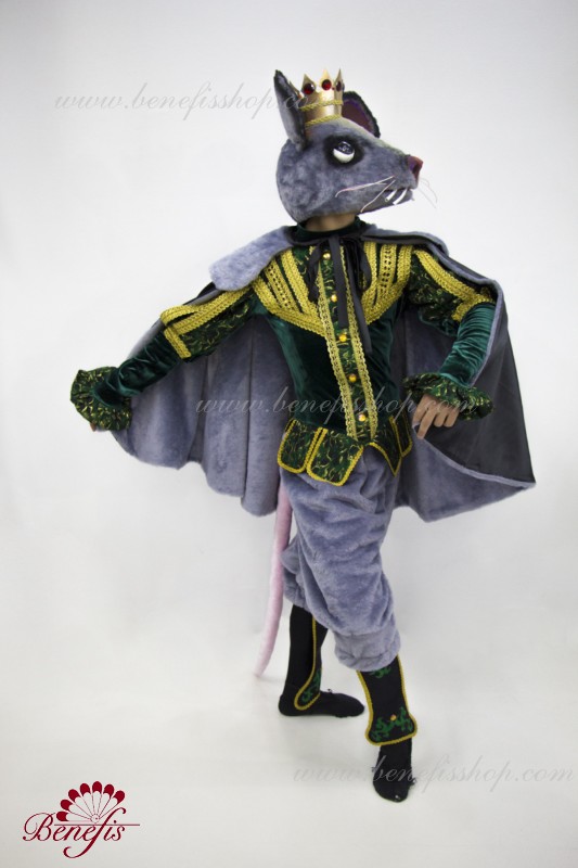 Detalii costum: guler, pelerină, pantaloni scurți, ghetre, Mască de blană cu coroană atașată cu pietre. Țesături precum brocart bogat imprimat și catifea semi-elastică sunt utilizate pentru colier. Jacheta este decorată cu panglică de aur și butoane, țesăturile de blană sunt de asemenea folosite în costum, care dau costumului o imagine de scenă a unui șobolan pentru balet, "Spărgătorul de nuci".