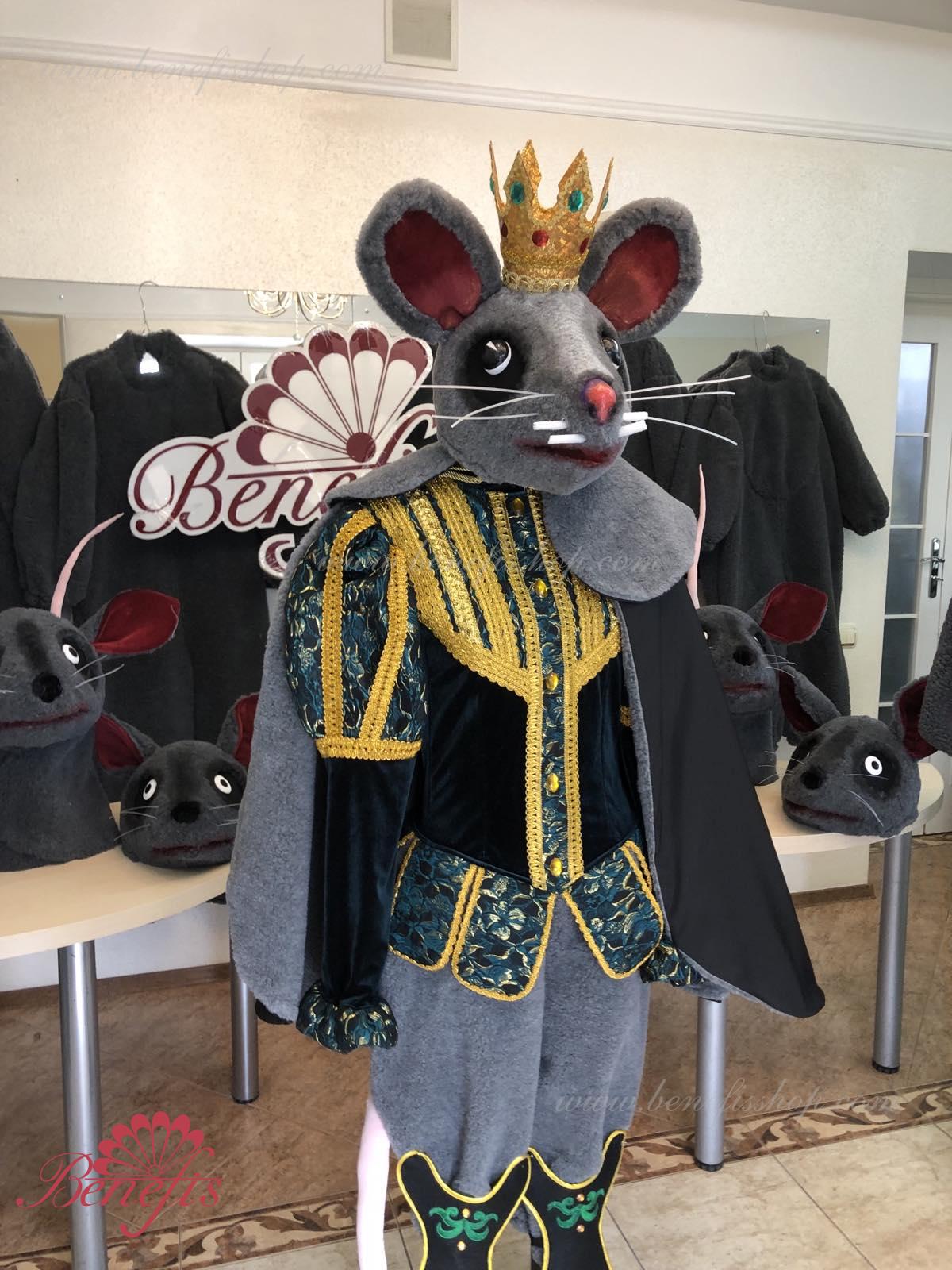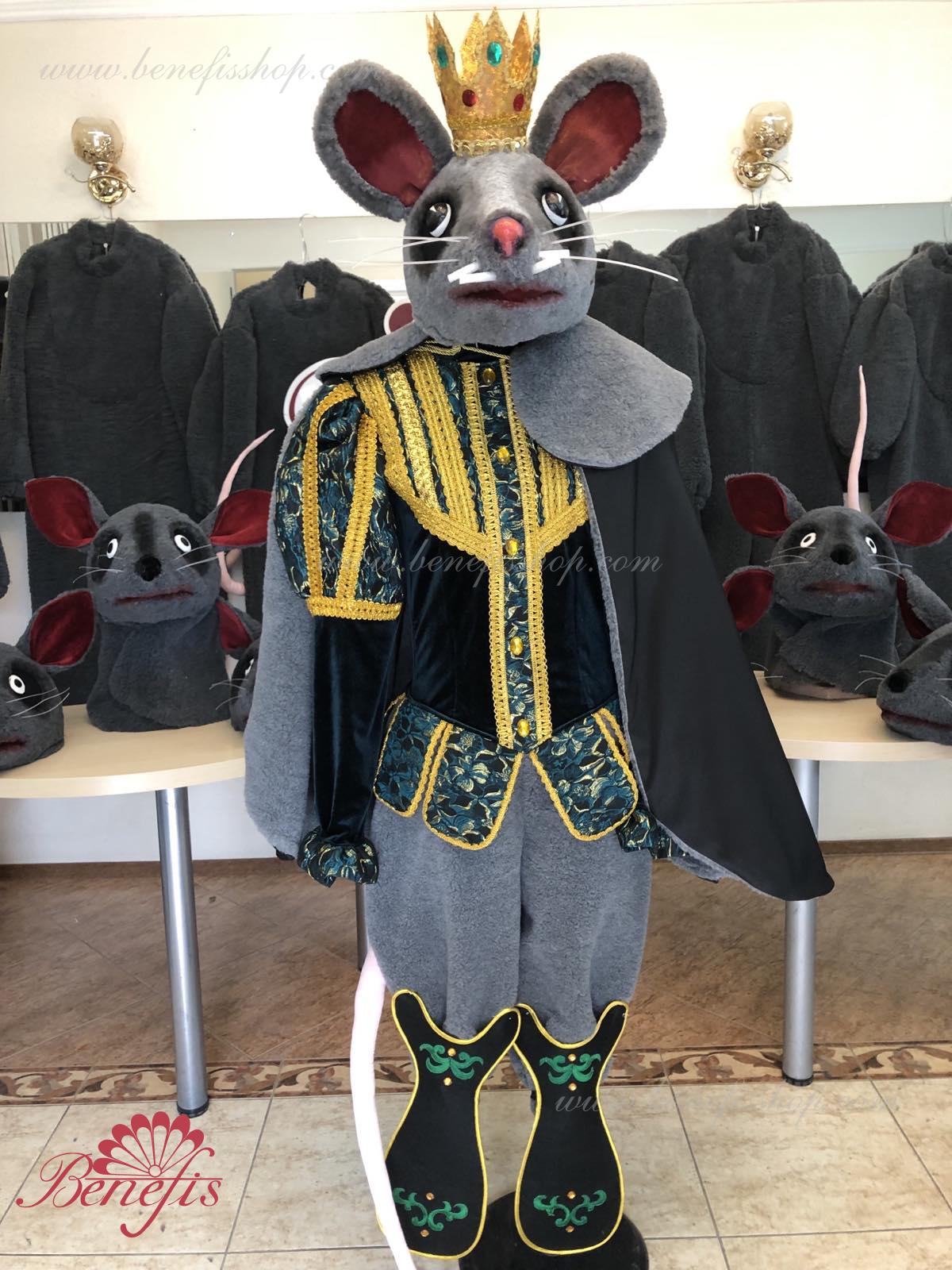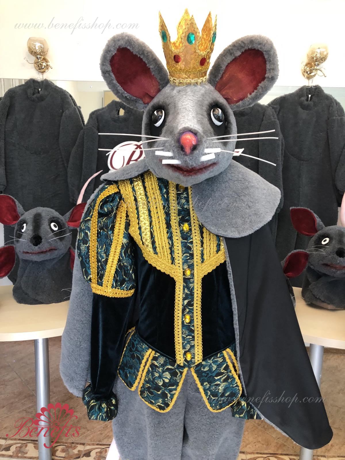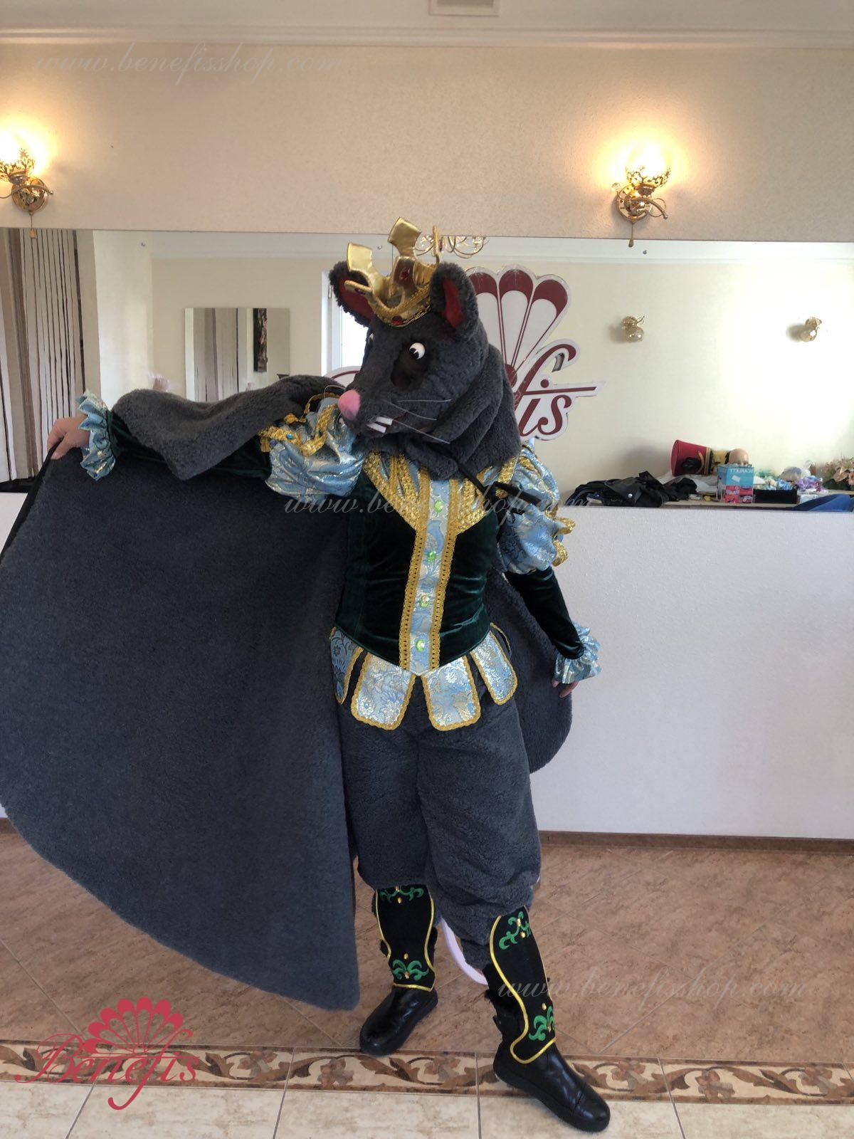 Detalii costum: guler, pelerină, pantaloni scurți, ghetre, Mască de blană cu coroană atașată cu pietre. Țesături precum brocart bogat imprimat și catifea semi-elastică sunt utilizate pentru colier. Jacheta este decorată cu panglică de aur și butoane, țesăturile de blană sunt de asemenea folosite în costum, care dau costumului o imagine de scenă a unui șobolan pentru balet, "Spărgătorul de nuci".