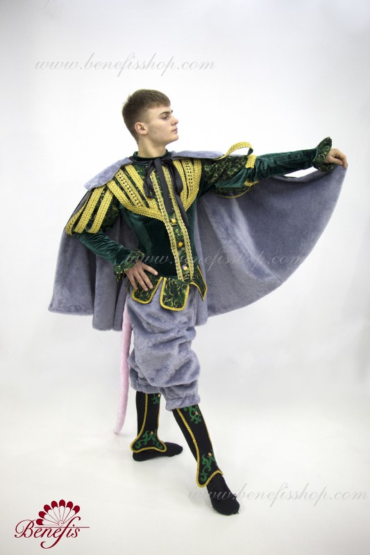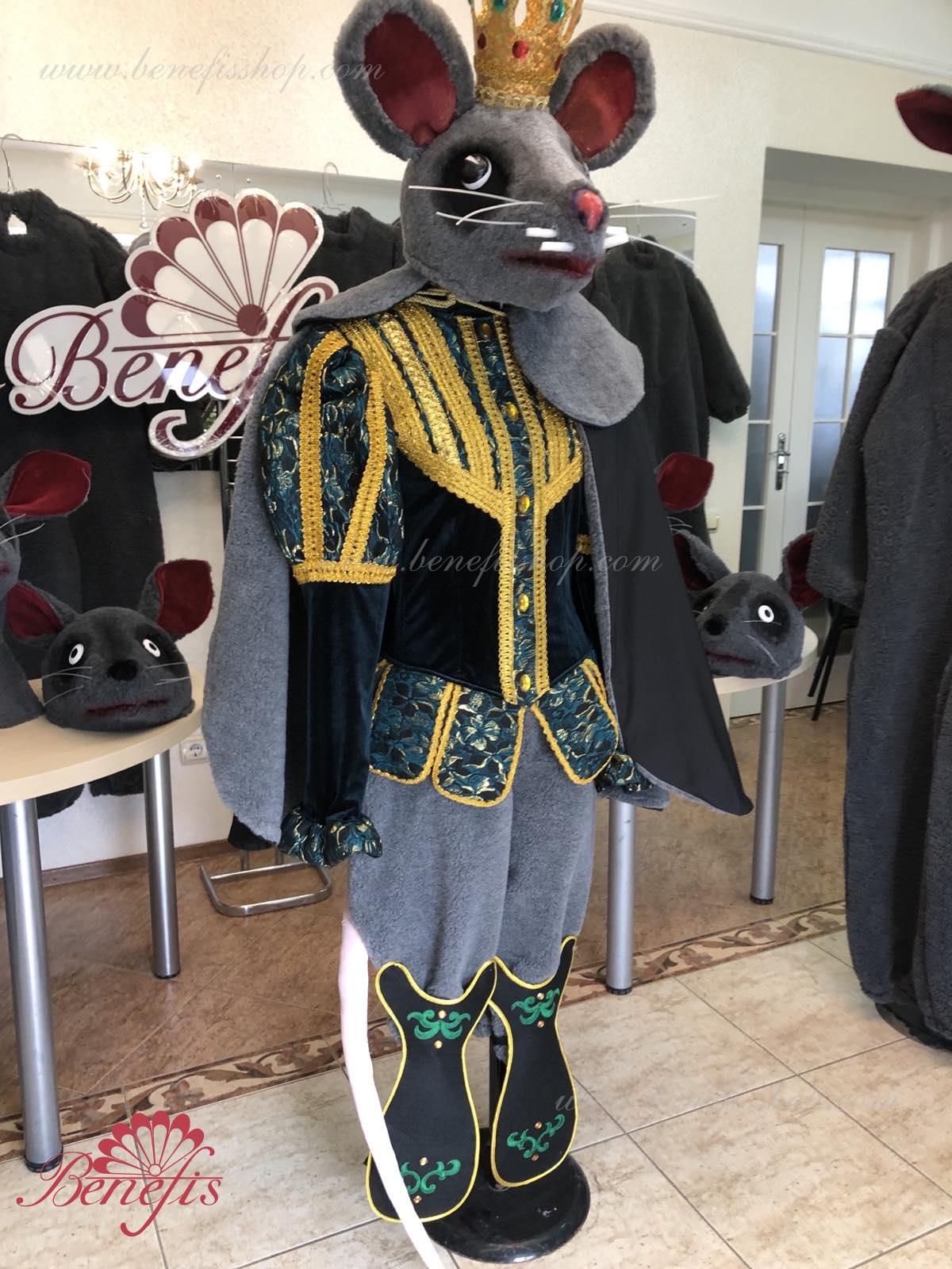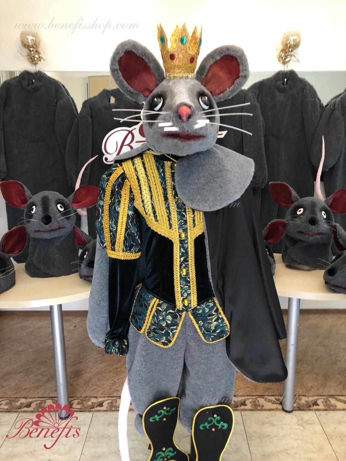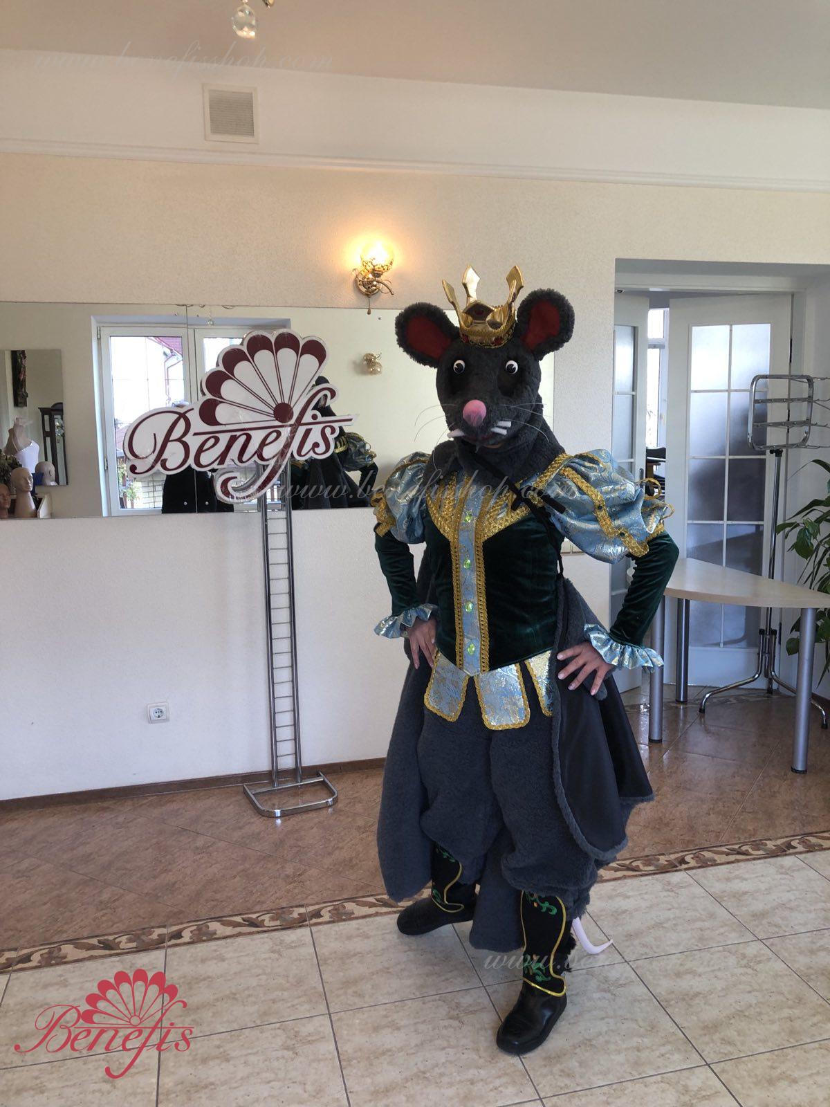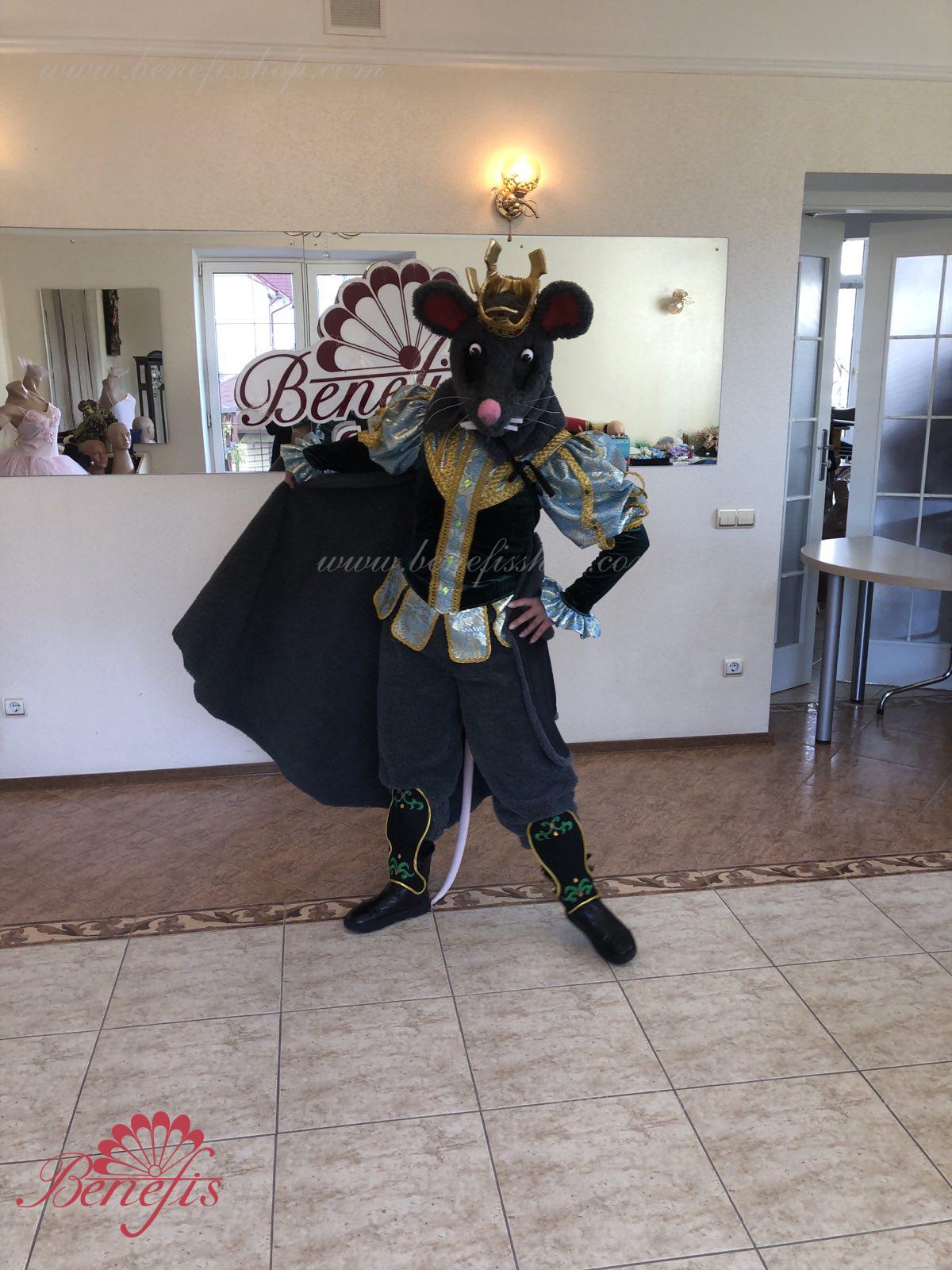 Detalii costum: guler, pelerină, pantaloni scurți, ghetre, Mască de blană cu coroană atașată cu pietre. Țesături precum brocart bogat imprimat și catifea semi-elastică sunt utilizate pentru colier. Jacheta este decorată cu panglică de aur și butoane, țesăturile de blană sunt de asemenea folosite în costum, care dau costumului o imagine de scenă a unui șobolan pentru balet, "Spărgătorul de nuci".