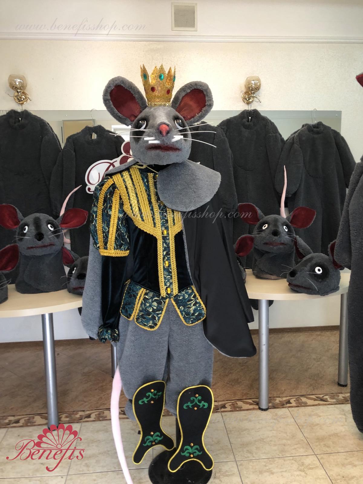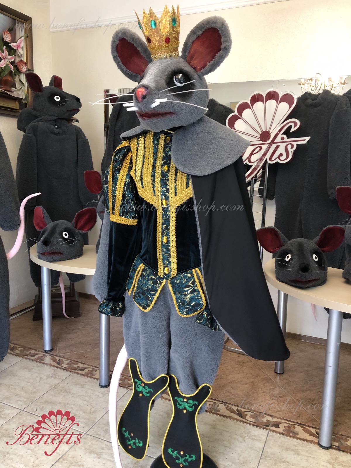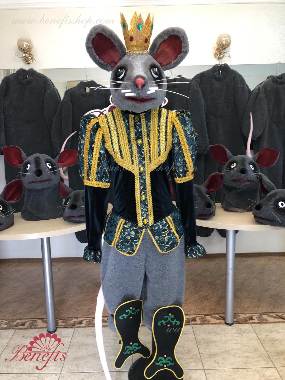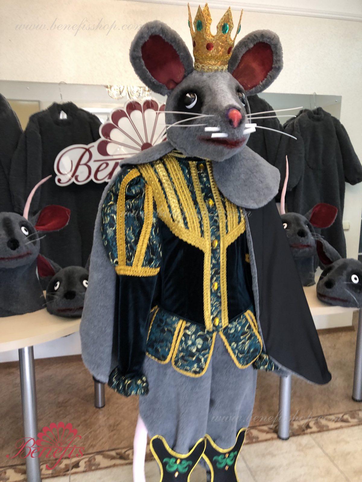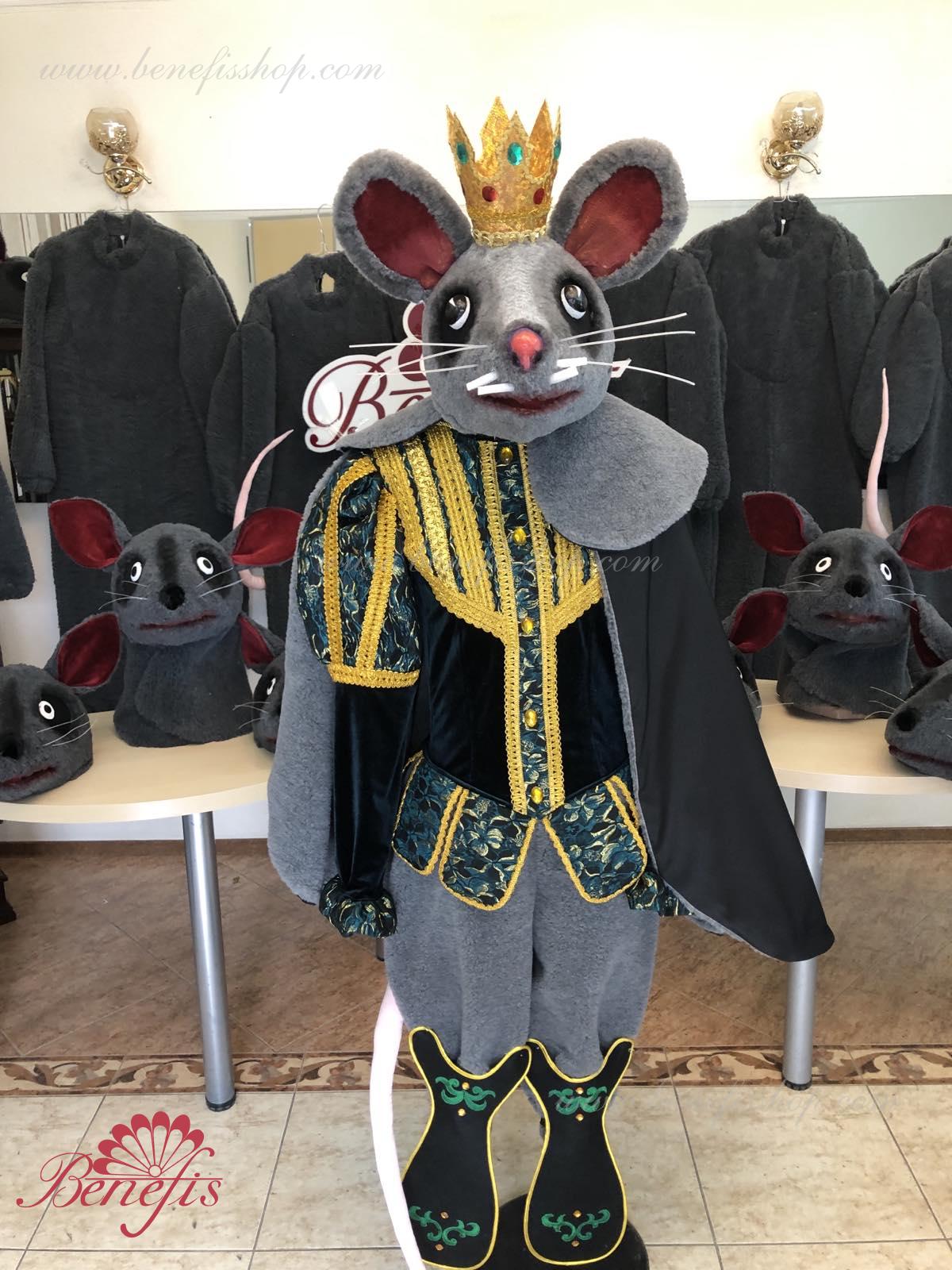 Detalii costum: guler, pelerină, pantaloni scurți, ghetre, Mască de blană cu coroană atașată cu pietre. Țesături precum brocart bogat imprimat și catifea semi-elastică sunt utilizate pentru colier. Jacheta este decorată cu panglică de aur și butoane, țesăturile de blană sunt de asemenea folosite în costum, care dau costumului o imagine de scenă a unui șobolan pentru balet, "Spărgătorul de nuci".
