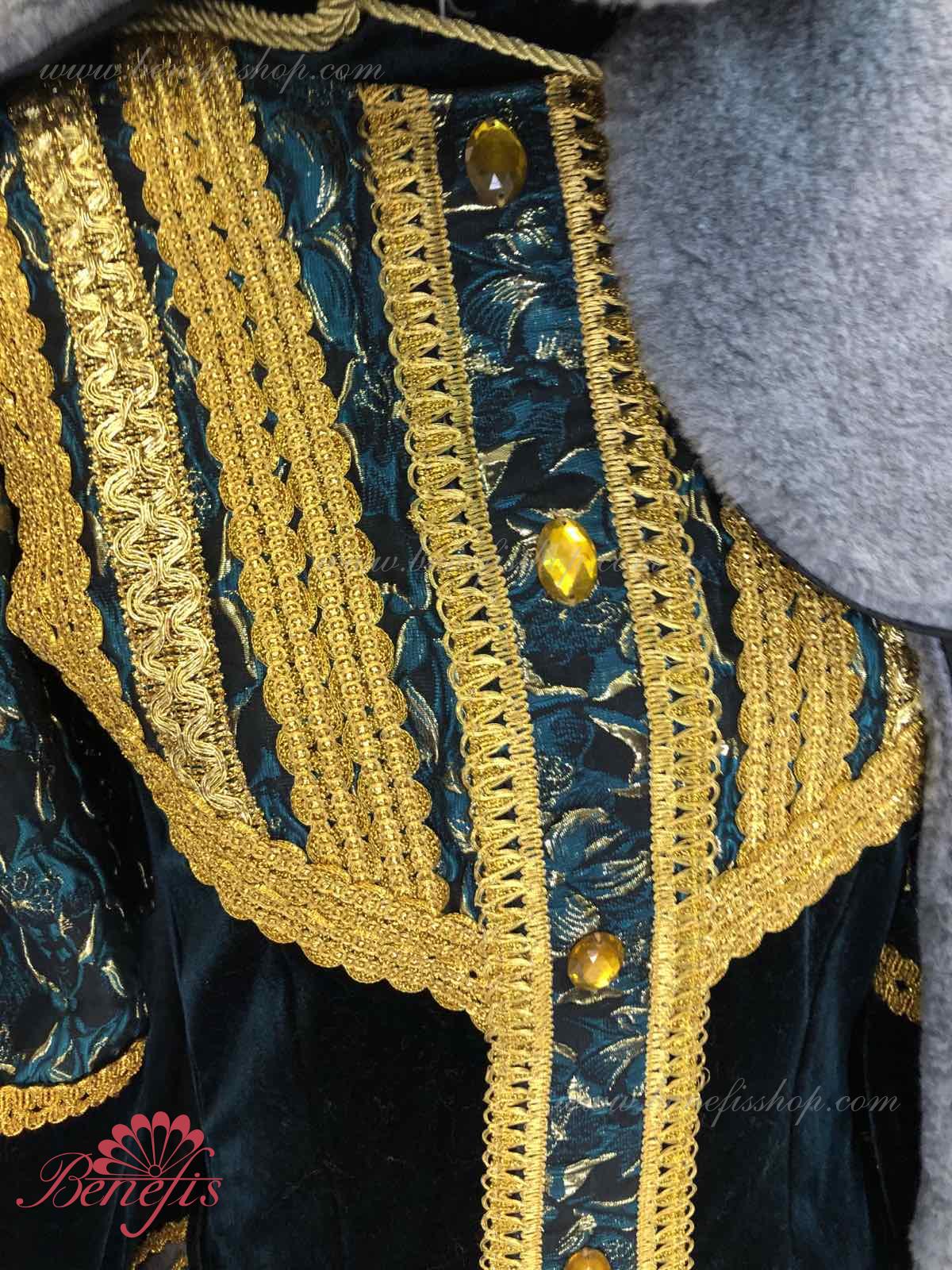 Mască de blană cu coroană atașată cu pietre. Articol decorativ pentru cap frumos este realizată din papier mâché, acoperită cu blană, ochii sunt decupați atât de convenabil încât dansatoarea poate vedea liber scena din interior în timpul dansului. În interiorul acestei măști există o închidere specială, astfel încât masca se fixează bine pe capul dansatoarei.