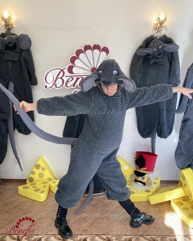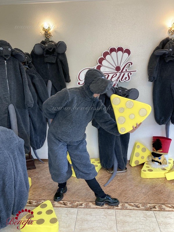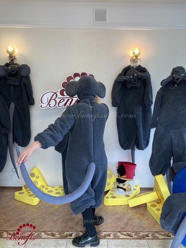 Detalii: salopetă, pălărie, brânză. Salopetă din blană, fermoar în spate. Există umplutură în burtă. Palaria este separat. Brânză Parolon
