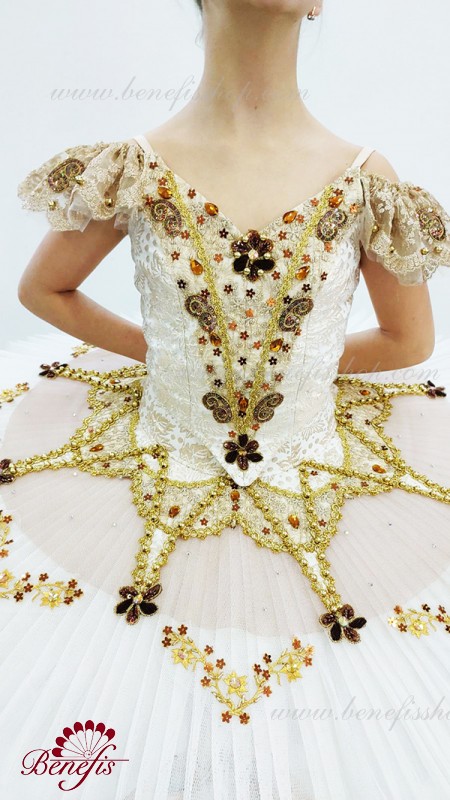 Acest costum de scenă profesional este realizat pe baza unui unui tutu de bază profesional # T 0001B (vezi secțiunea "fuste de balet de bază și de repetiție").Corsetul, cu bretele elastice, este confectionat din tesatura densa semi-elastica. Acest model este alcătuit din două părți, care sunt atașate una de cealaltă cu benzi elastice, în zona taliei. Partea inferioară este cusută într-un tutu sau fustă. Partea superioară este suprapusă pe cea inferioară, ceea ce vă permite să reglați lungimea corsetului în funcție de înălțimea balerinei și conferă corsetului o mobilitate mai mare.