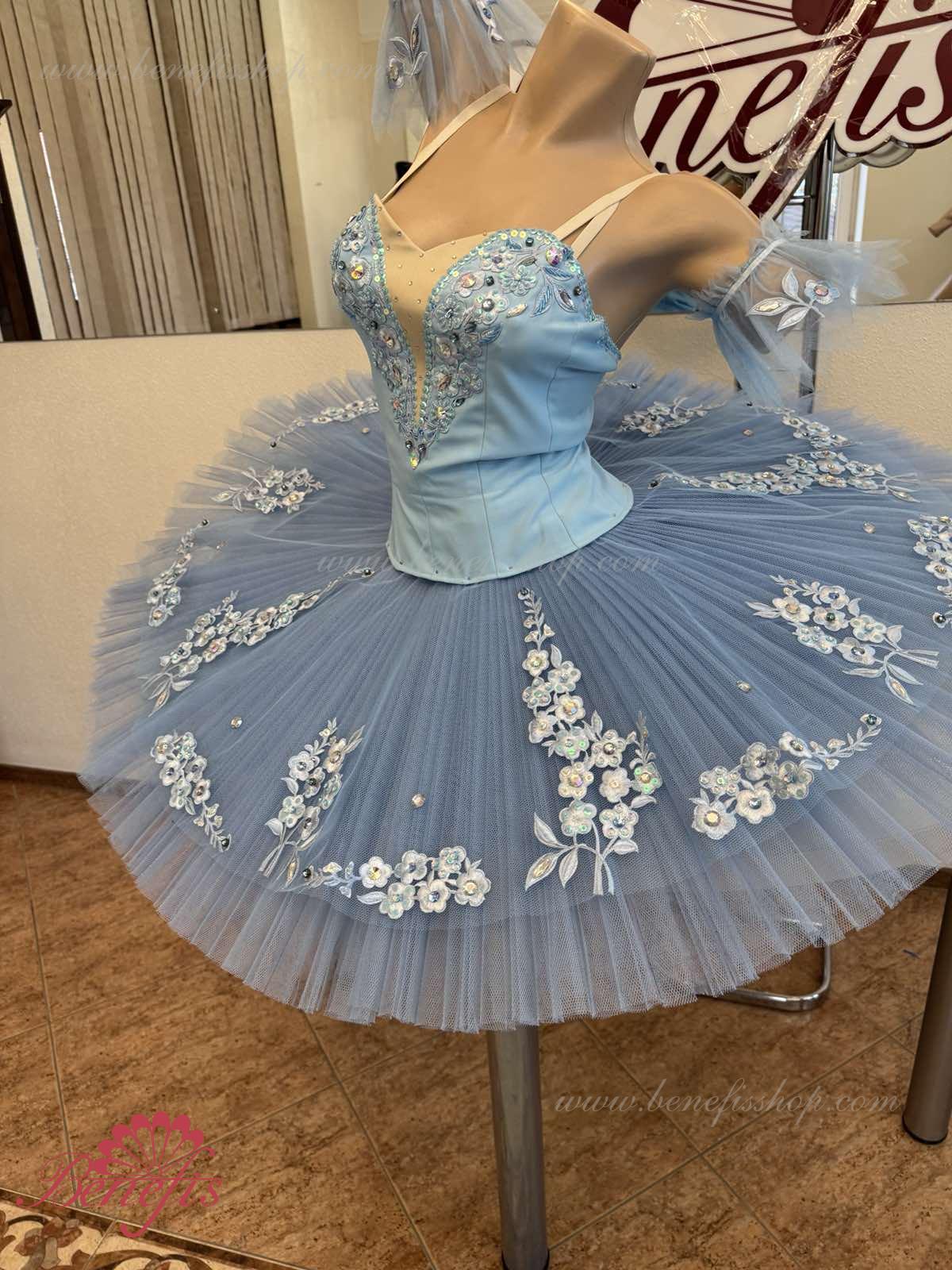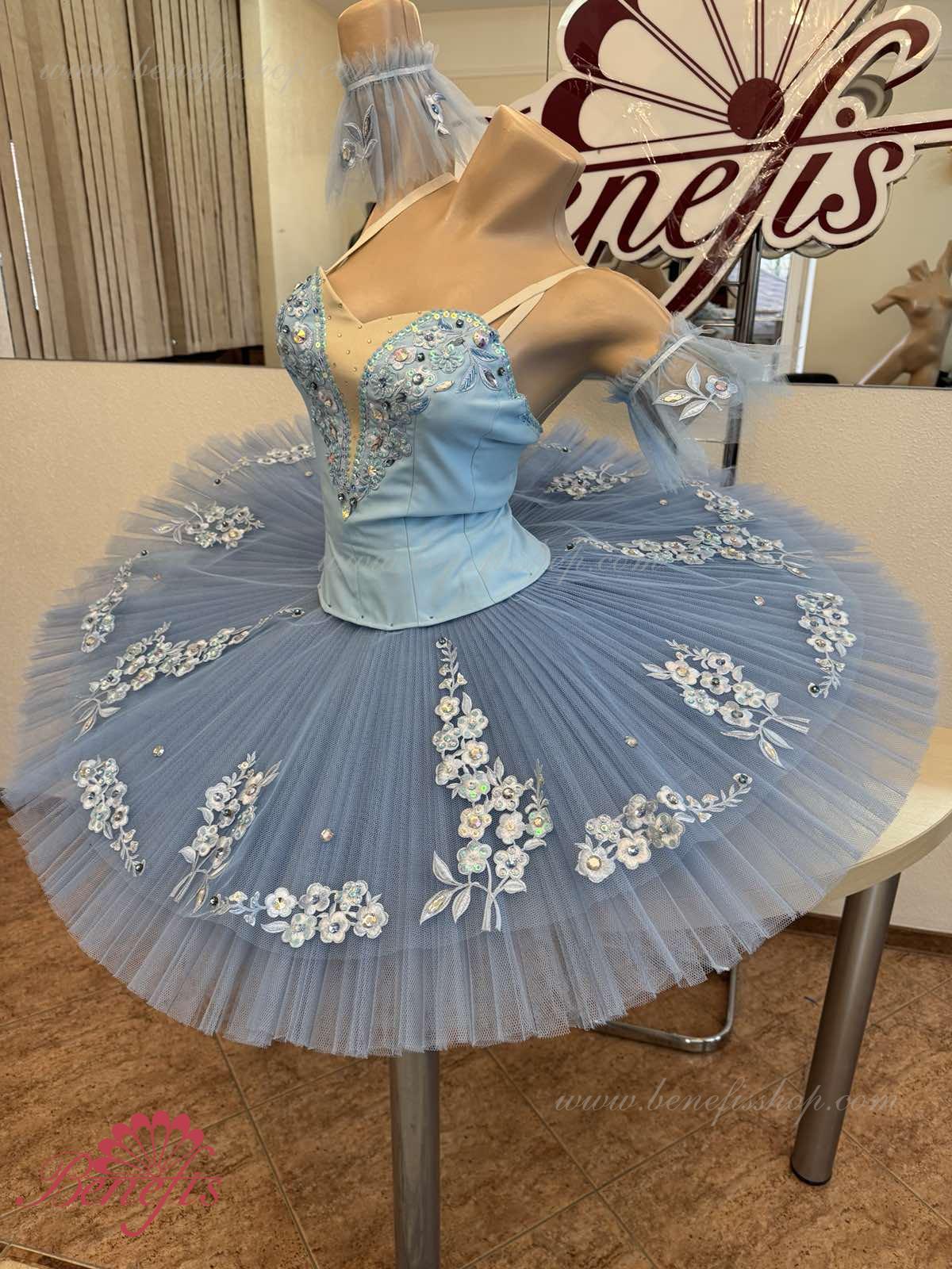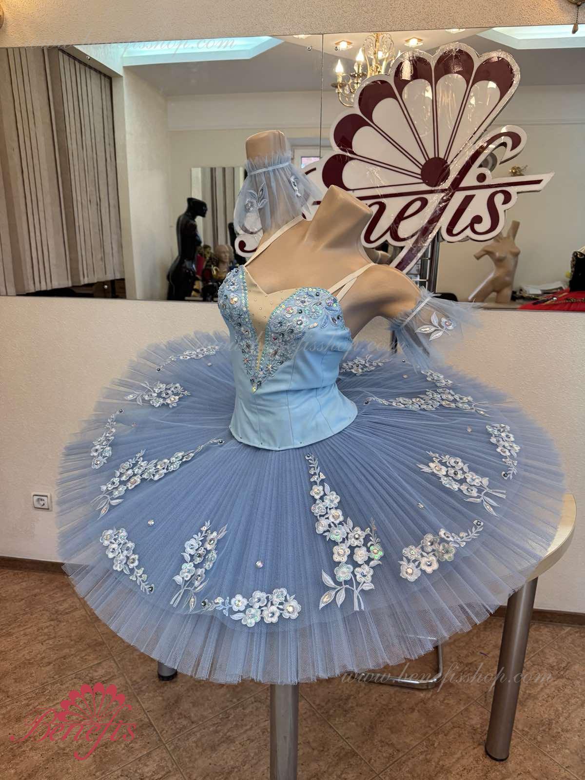 Este confectionat in baza fustei de balet profesioniste #T0001B (vezi compartimentul „Fuste de balet de baza”). Costumul este fabricat dintr-o tesatura de culoare liliacie si este decorata in culoarea tesaturii. In calitate de decor pot fi folosite margele marunte de sticla, paiete si strase argintii, aplicatii in forma de flori.