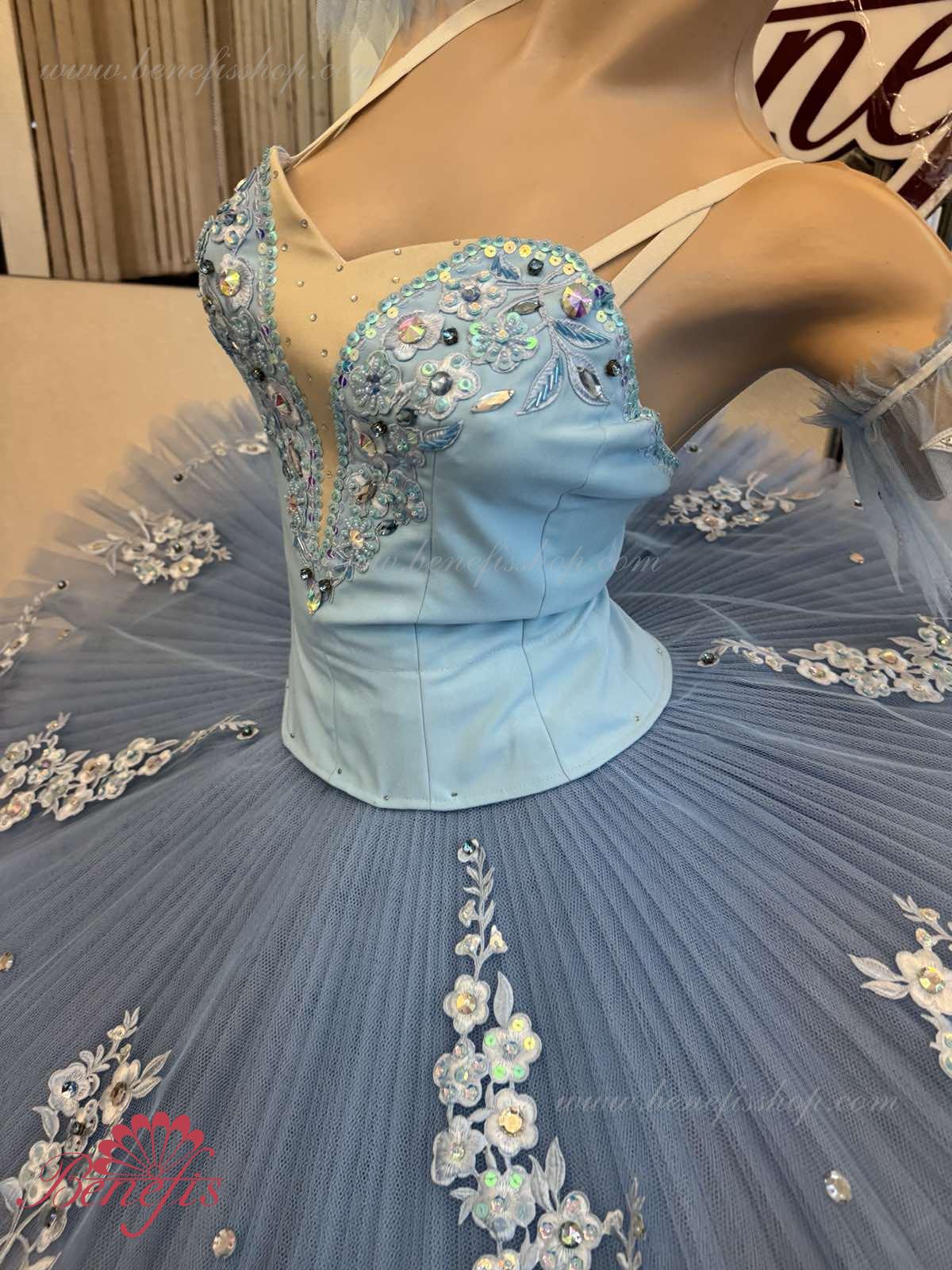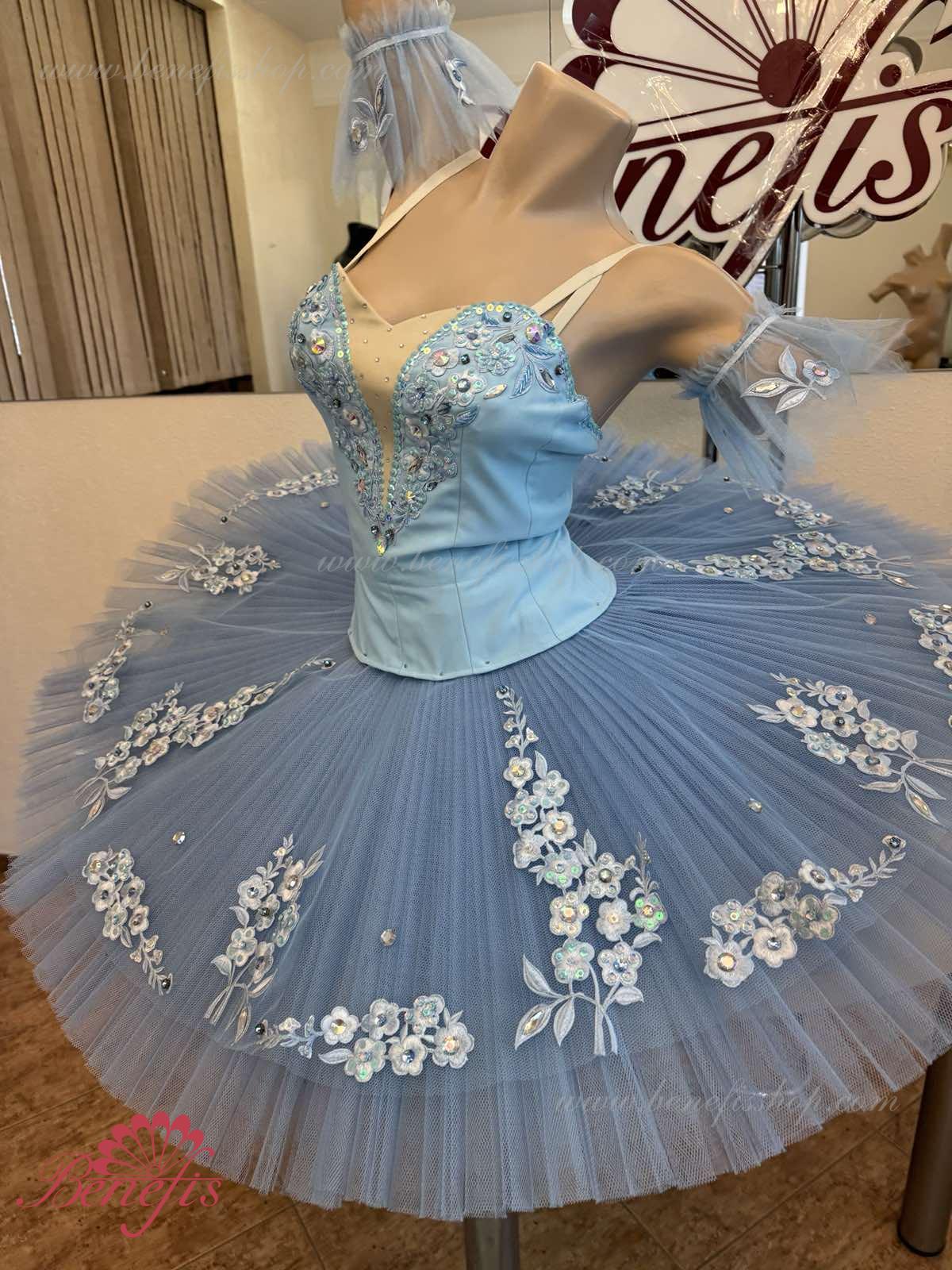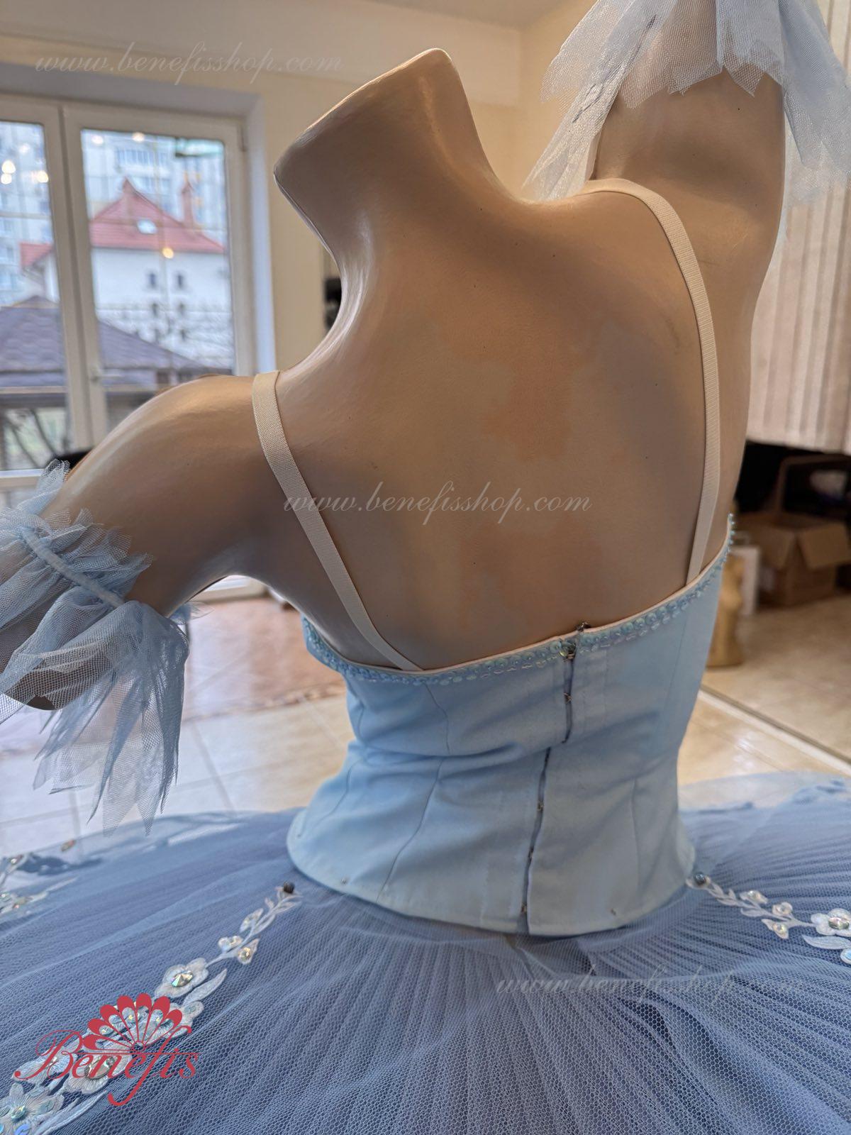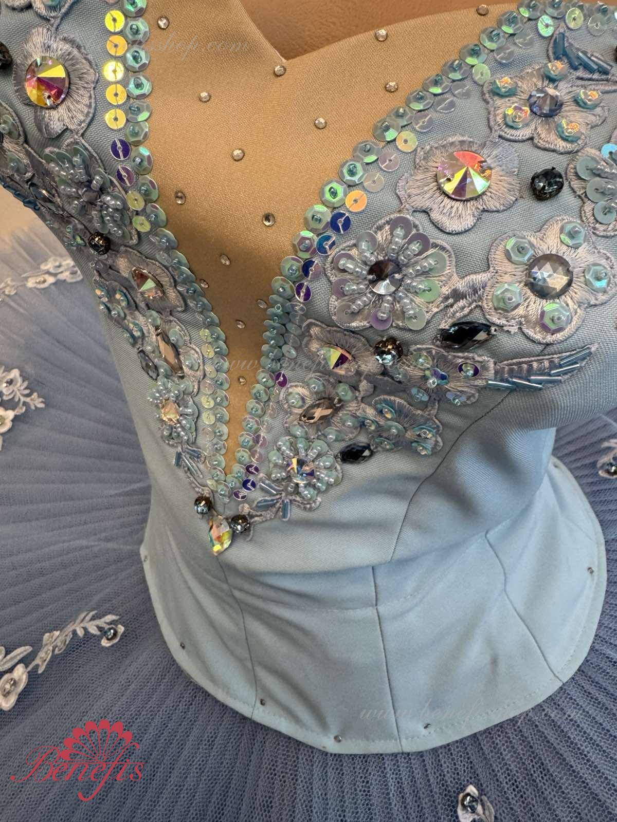 Este confectionat in baza fustei de balet profesioniste #T0001B (vezi compartimentul „Fuste de balet de baza”). Costumul este fabricat dintr-o tesatura de culoare liliacie si este decorata in culoarea tesaturii. In calitate de decor pot fi folosite margele marunte de sticla, paiete si strase argintii, aplicatii in forma de flori.