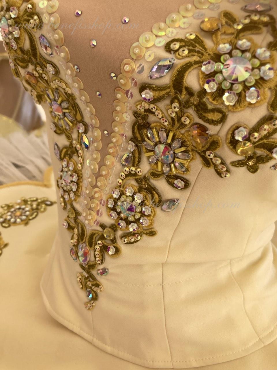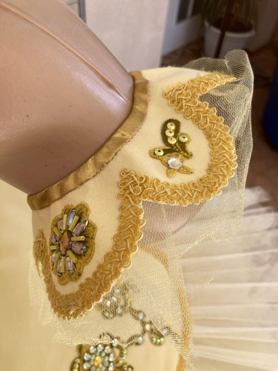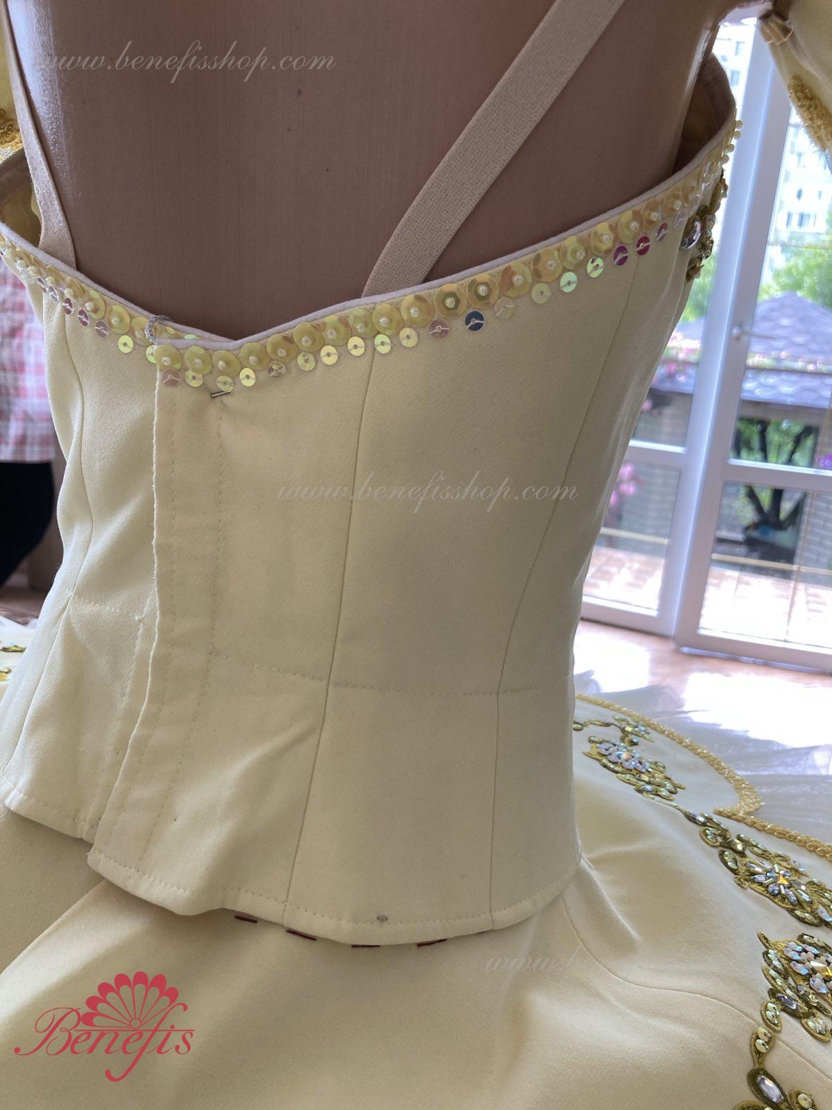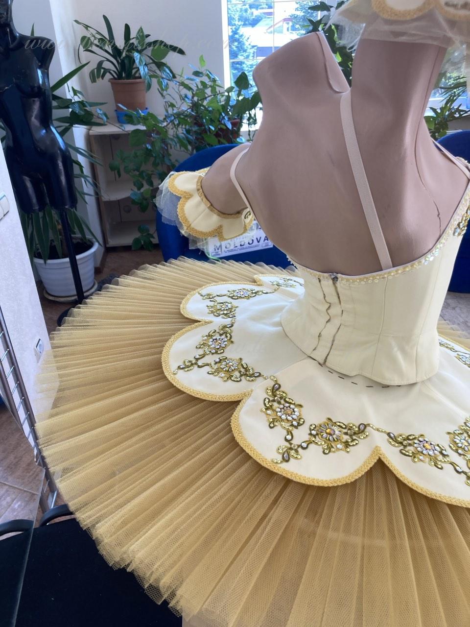 Costum de scena profesionist este confectionat in baza fustei de balet profesioniste #T0001 (vezi compartimentul „Fuste de balet de baza”).