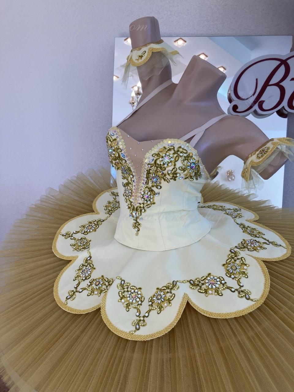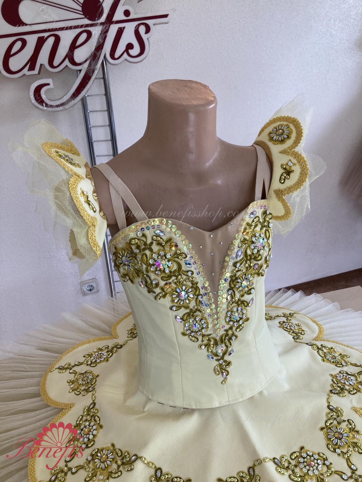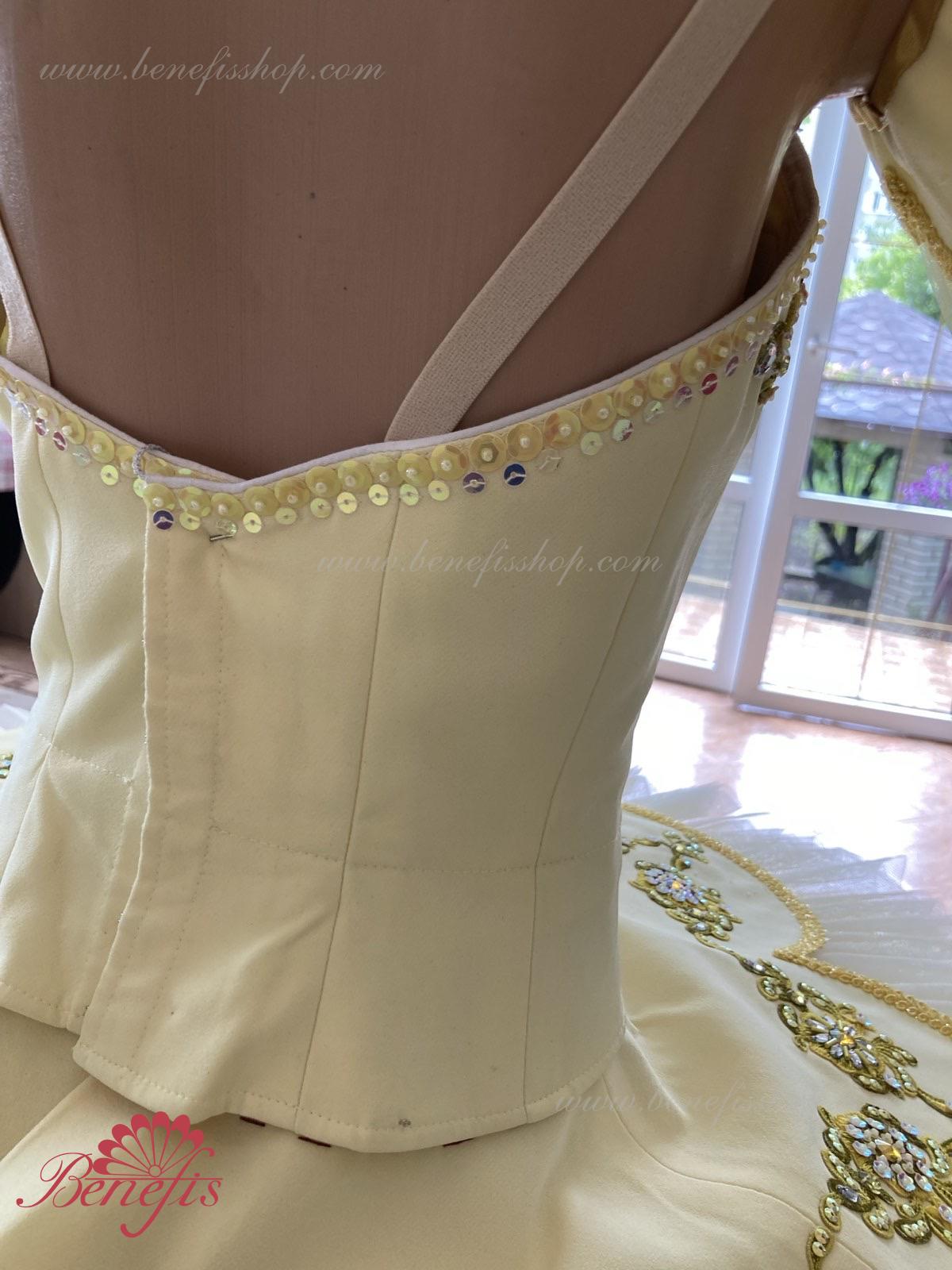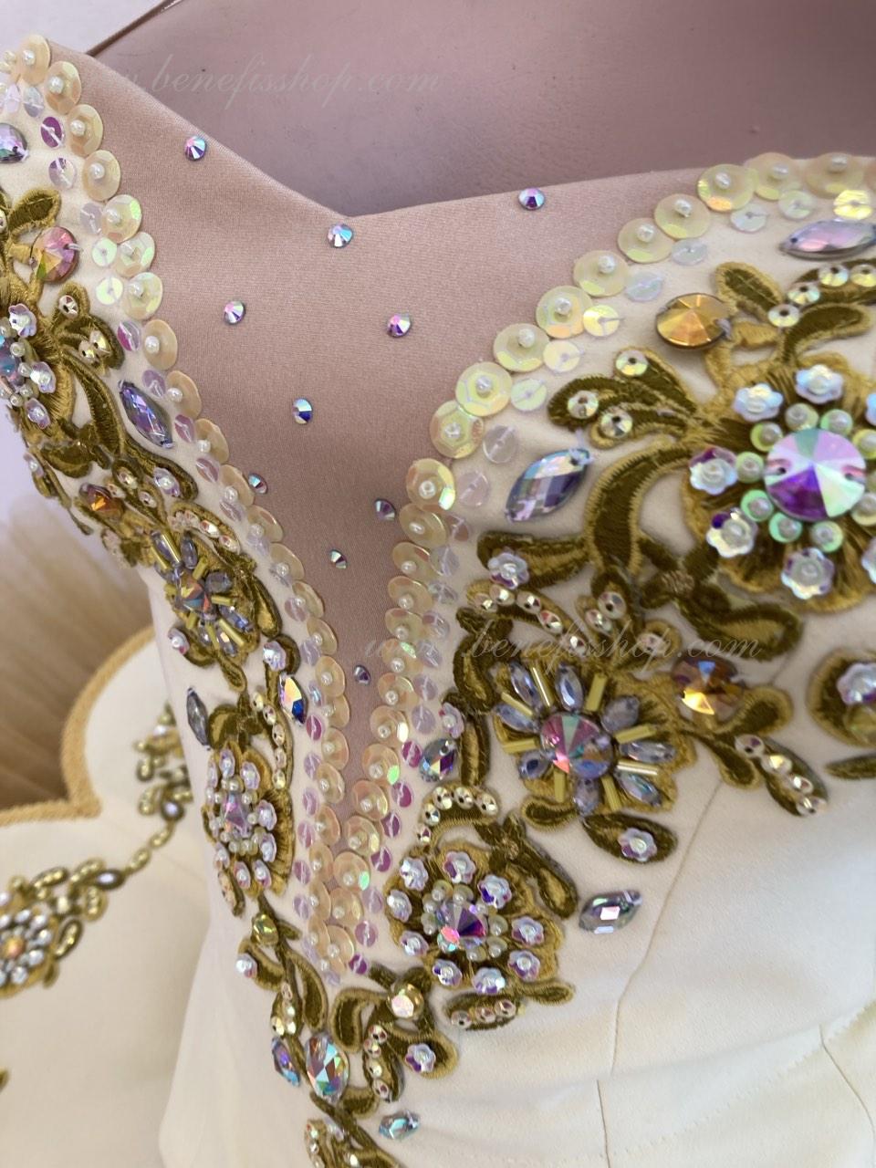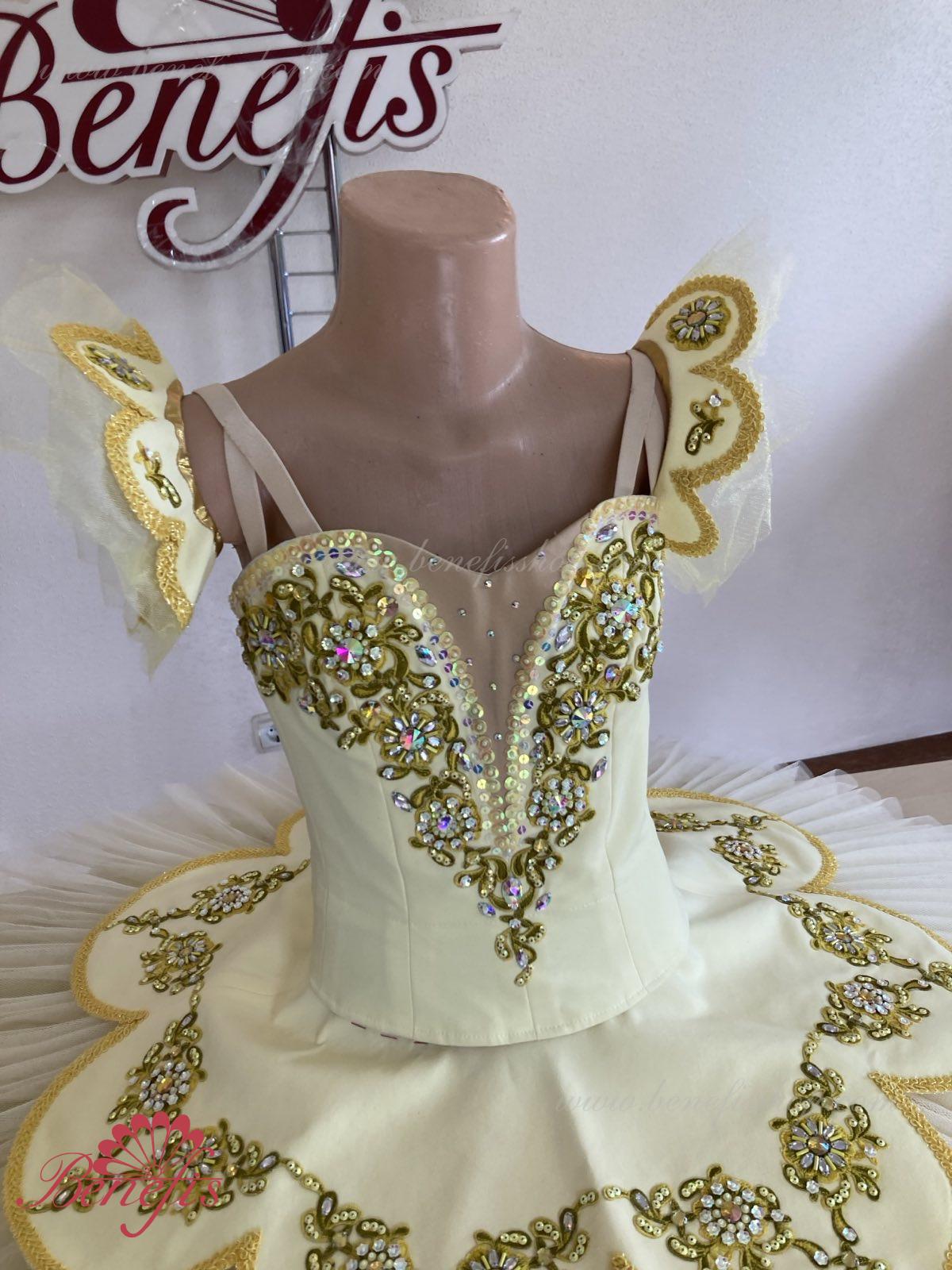 Costum de scena profesionist este confectionat in baza fustei de balet profesioniste #T0001 (vezi compartimentul „Fuste de balet de baza”).