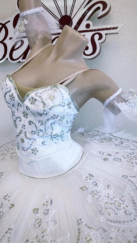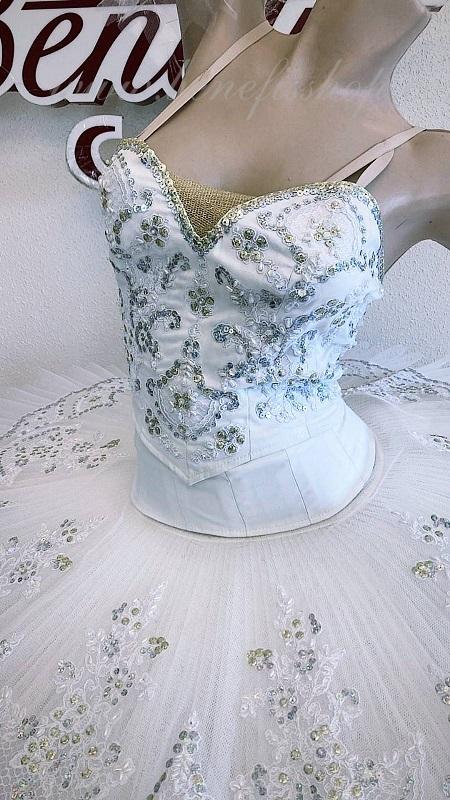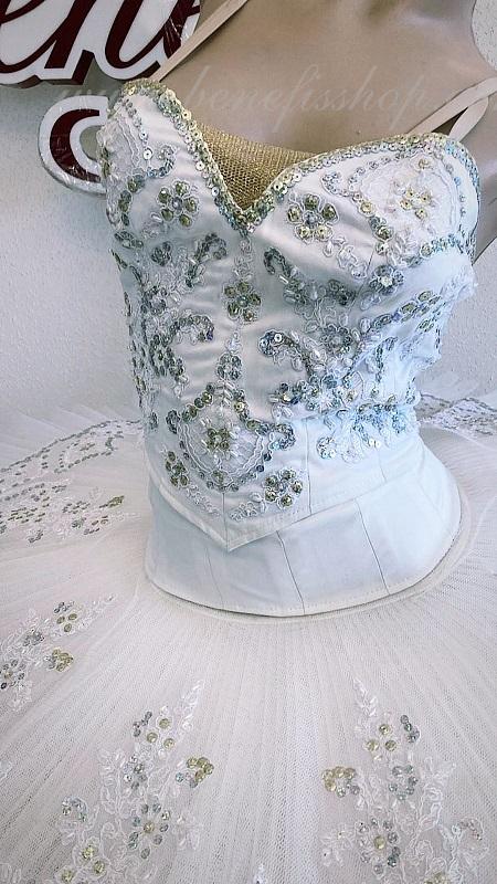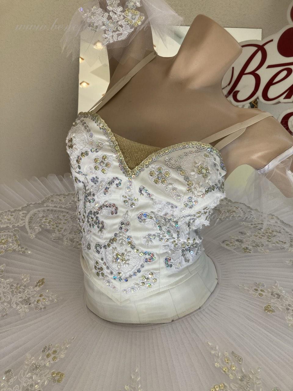 Detalii: costum. Corset T0013, baza T0001B.Corsetul cu curele elastice, poate fi fabricat din tesatură semi-stretch, precum şi din catifea sau tafta. Acest model este realizat din două părţi, care sunt fixate împreună cu benzi din elastic în zona taliei. Partea de jos este cusută la fusta de balet. Partea superioară este suprapusă părții de jos, care vă permite să reglaţi lungimea de corset, în funcţie de înălțimea balerinei, corsetul oferind astfel o mai mare flexibilitate.