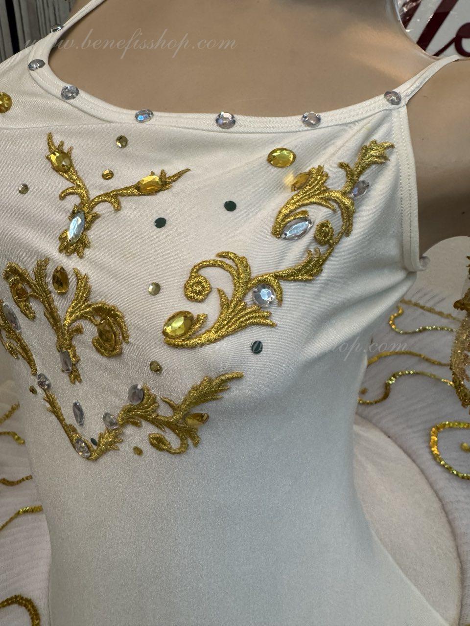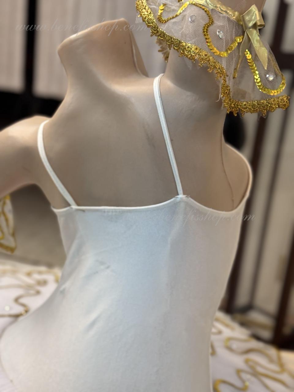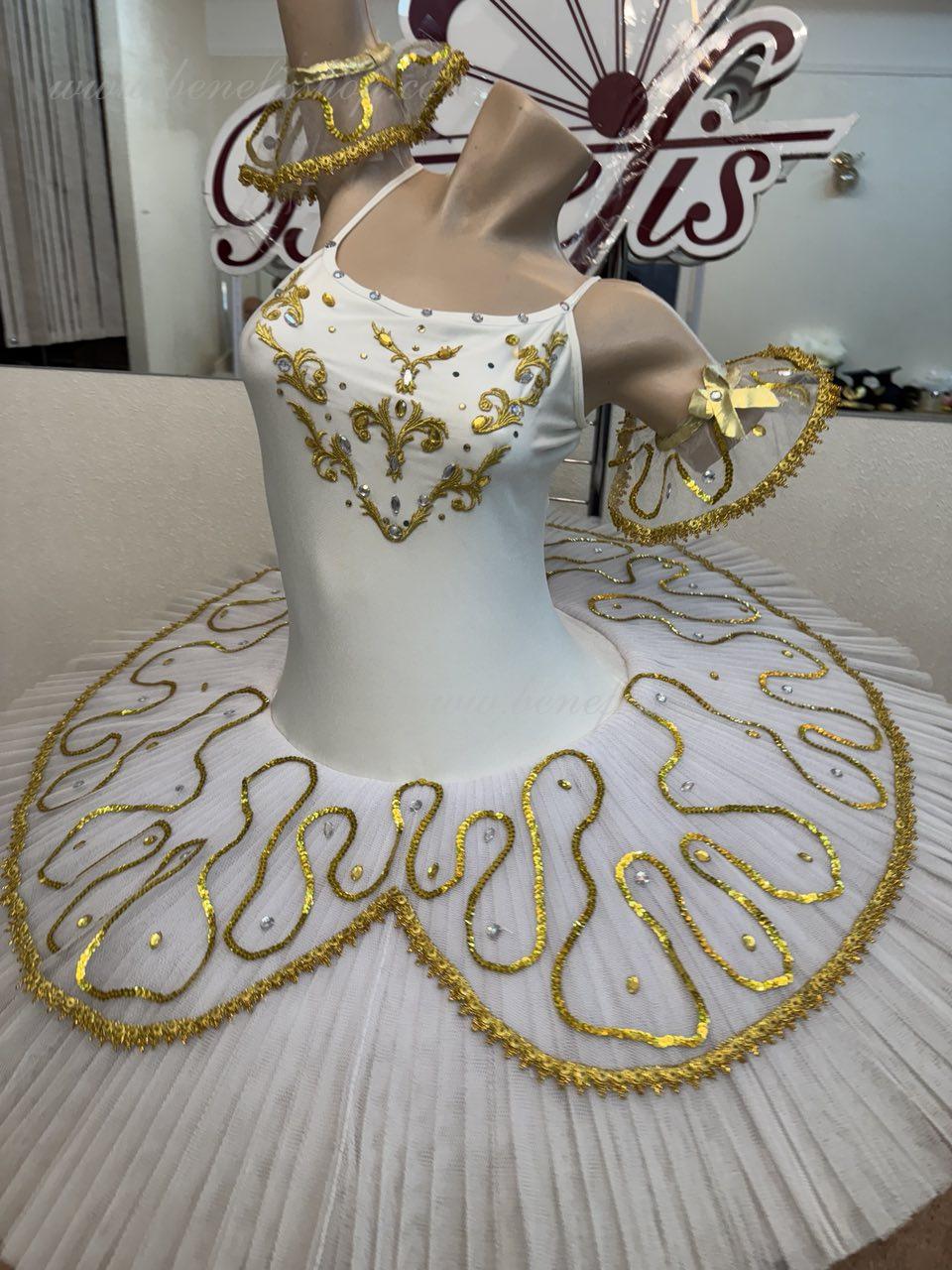 Acest costum de balet concert este indeplinit in baza unui tricou elastic si a fustei cu cercuri. Corsetul si stratul superior al fustei este decorat cu aplicatii aurii sau argintii, cristale de diferite marimi. Marginea stratului superior al fustei si minecute sunt impodobite cu panglica aurie sau argintie.