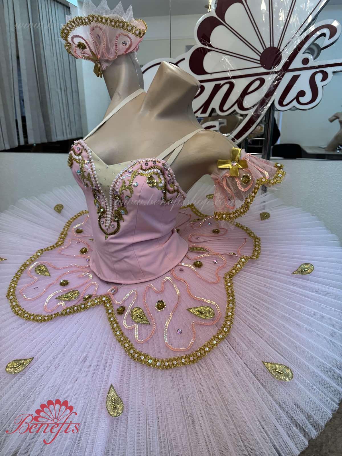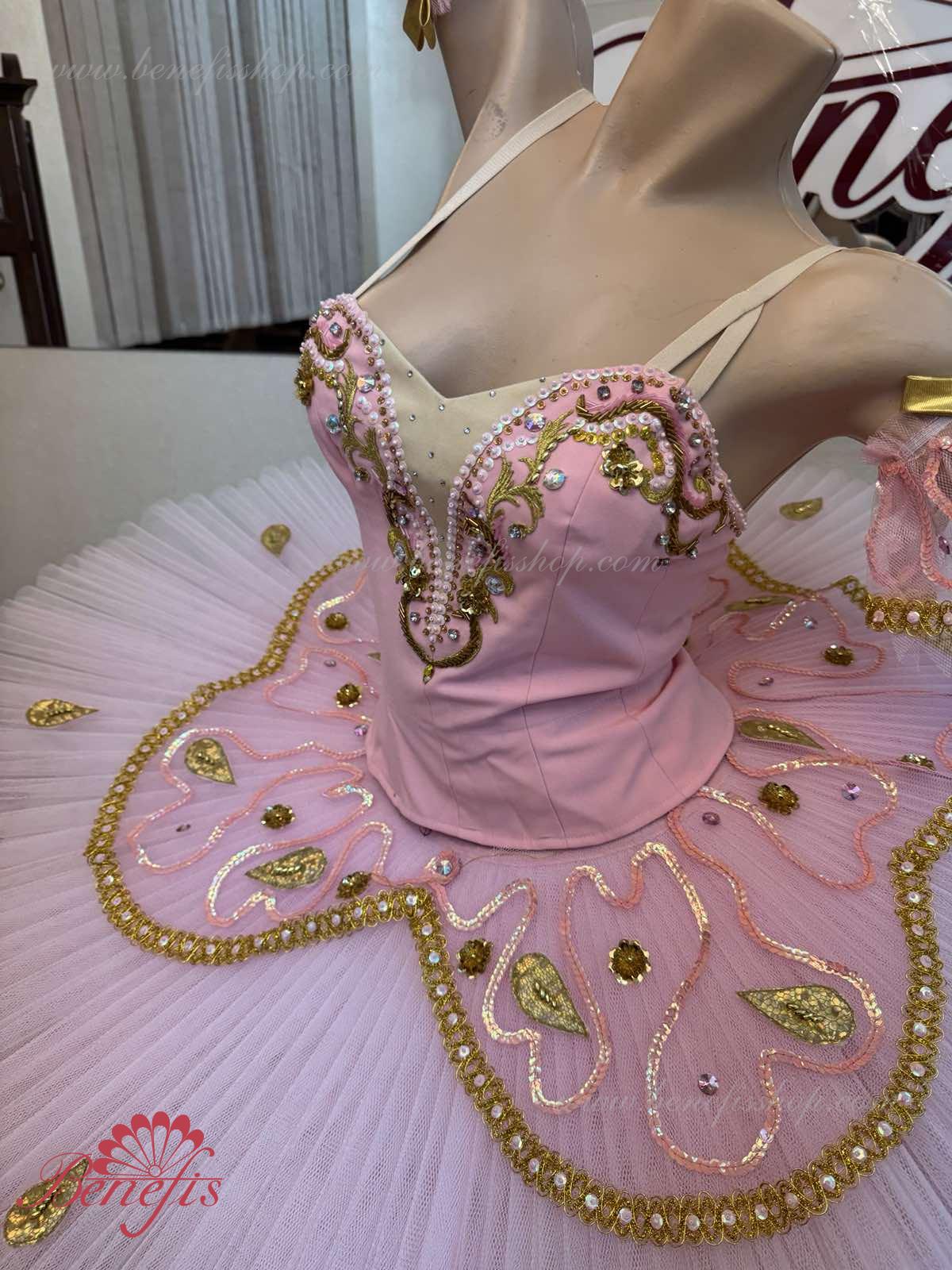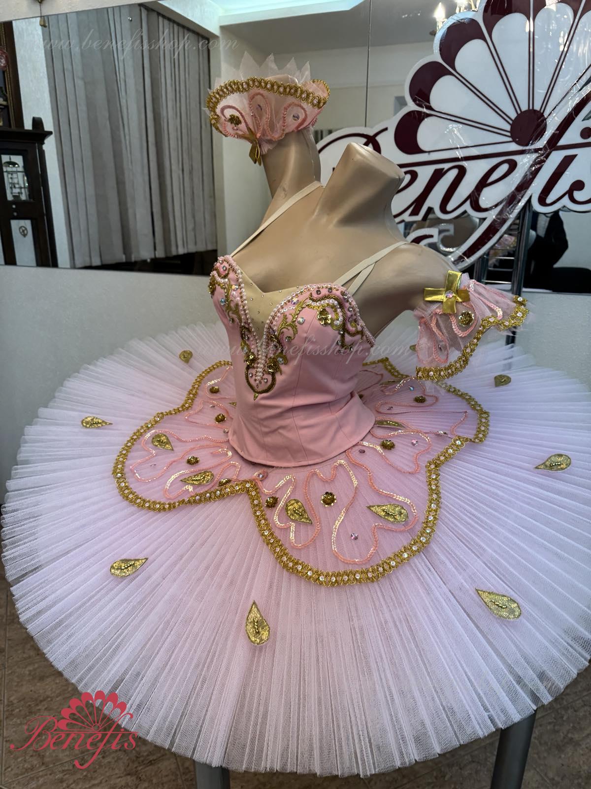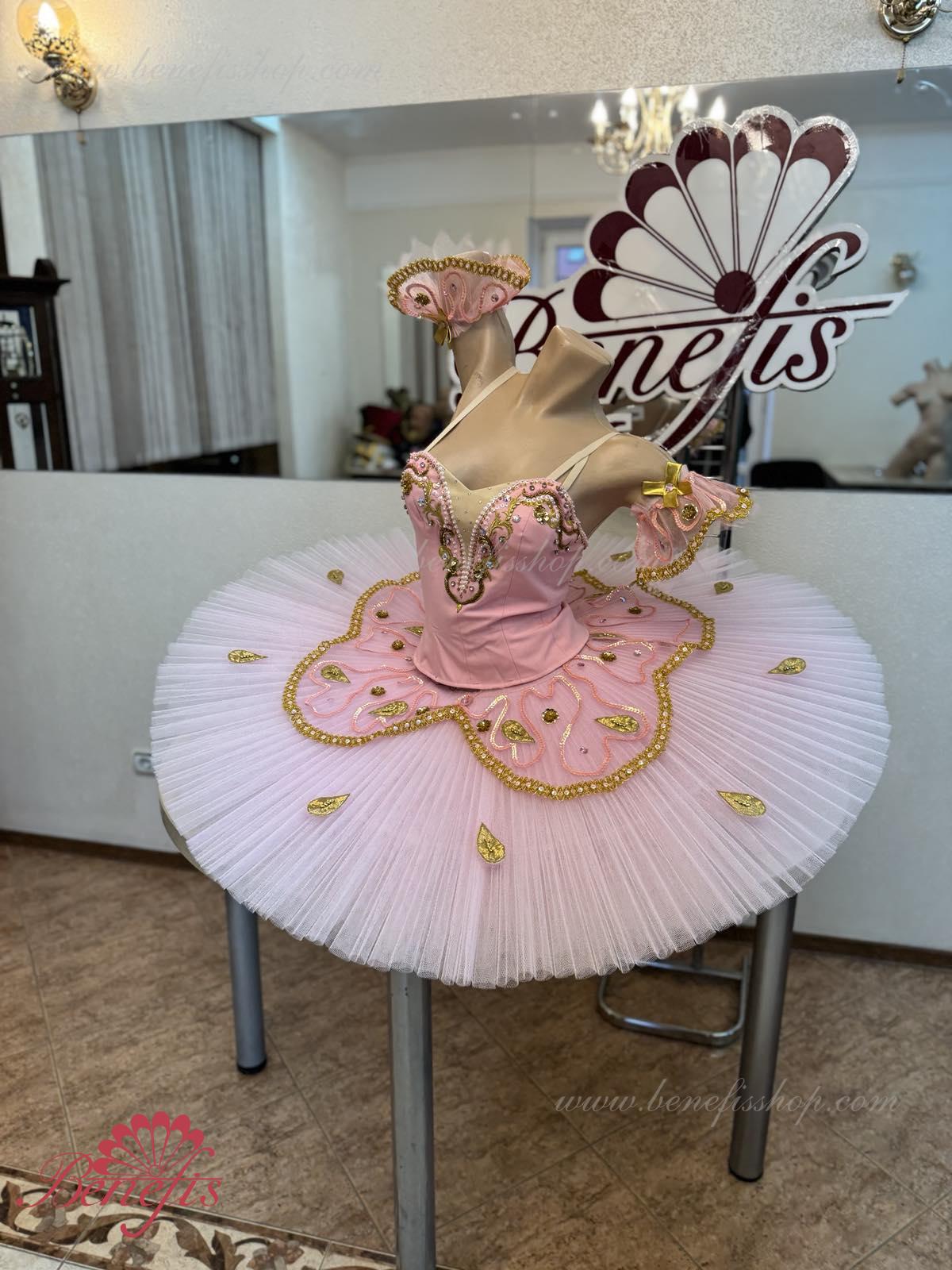 Costum de scena profesionist. Este confectionat in baza fustei de balet profesioniste #T0001B (vezi compartimentul „Fuste de balet de baza”).