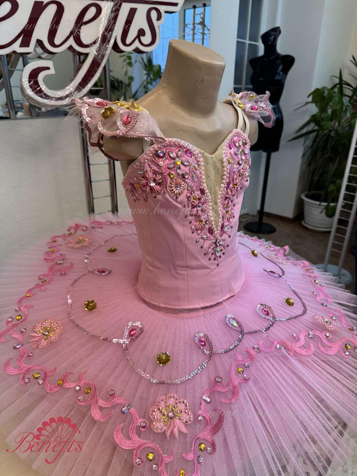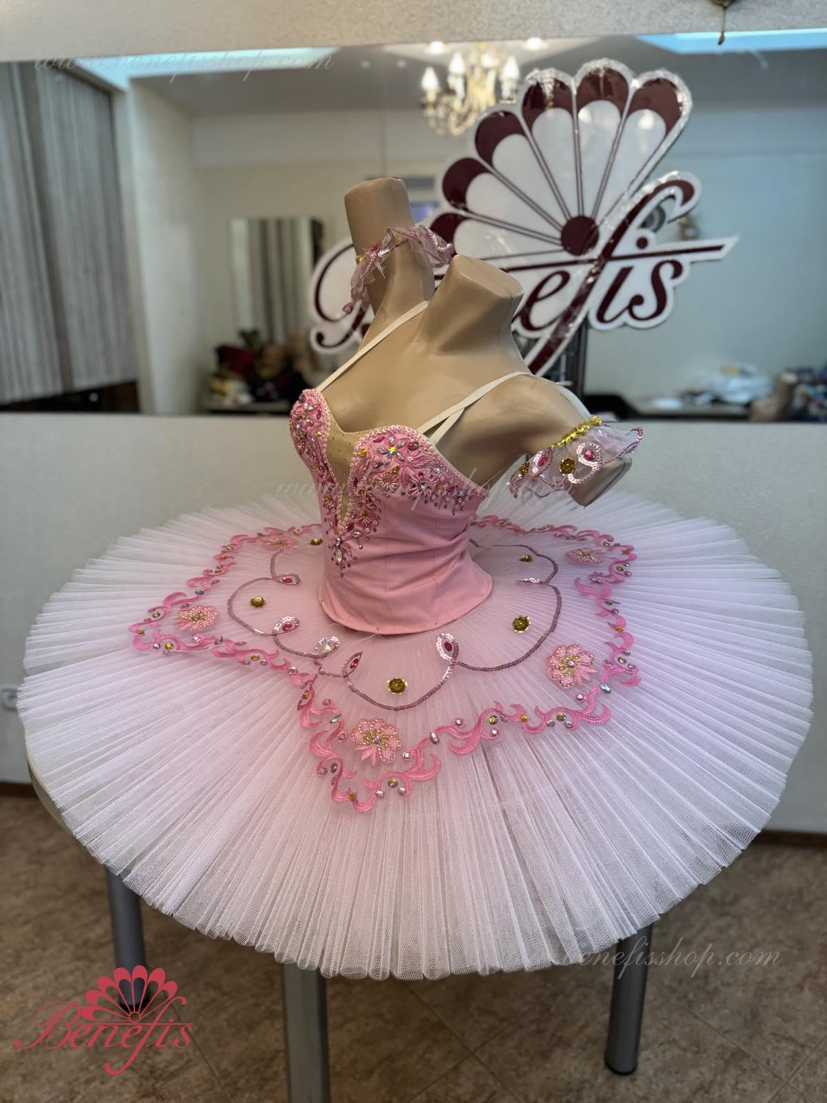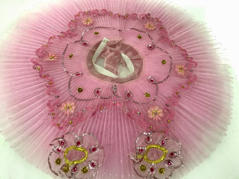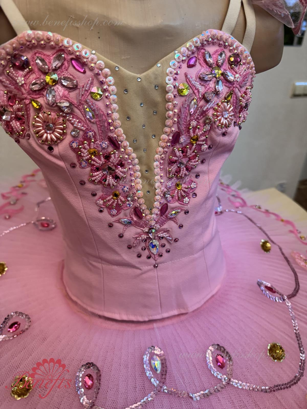 Costum de scena profesionist. Este confectionat in baza fustei de balet profesioniste #T0001B (vezi compartimentul „Fuste de balet de baza”).