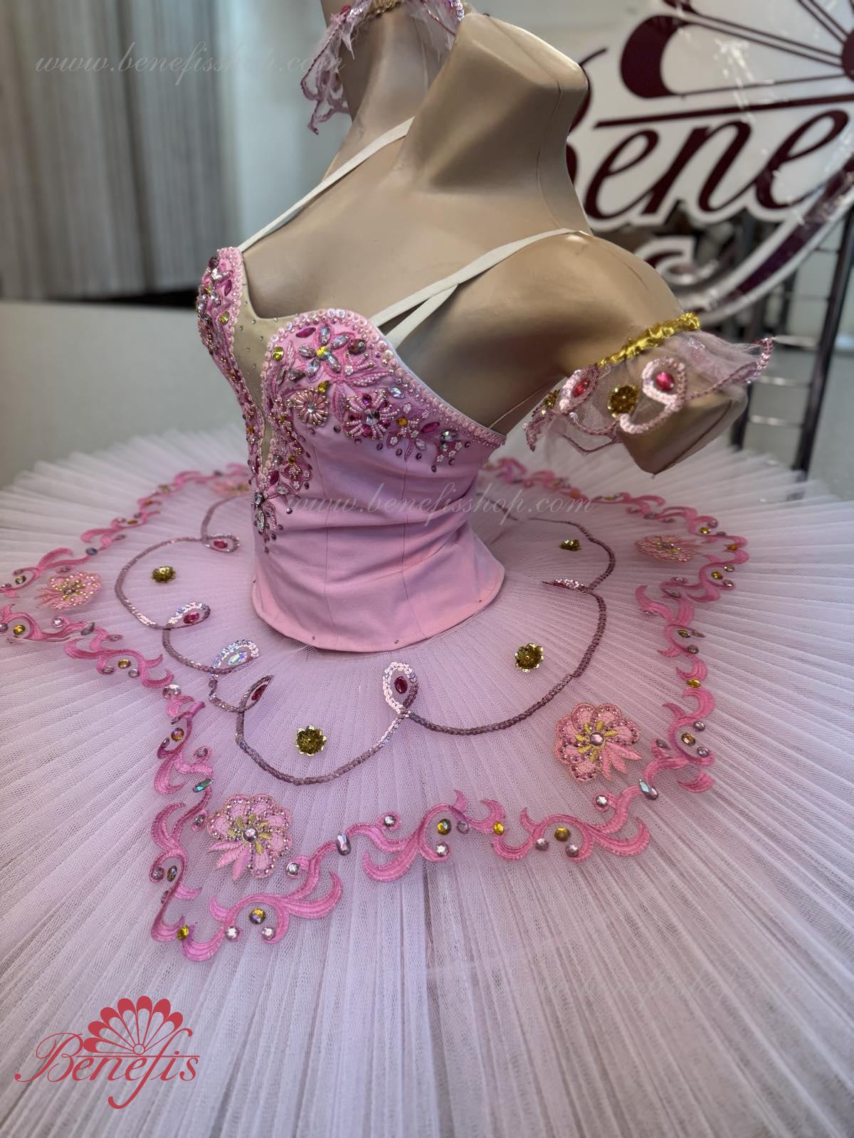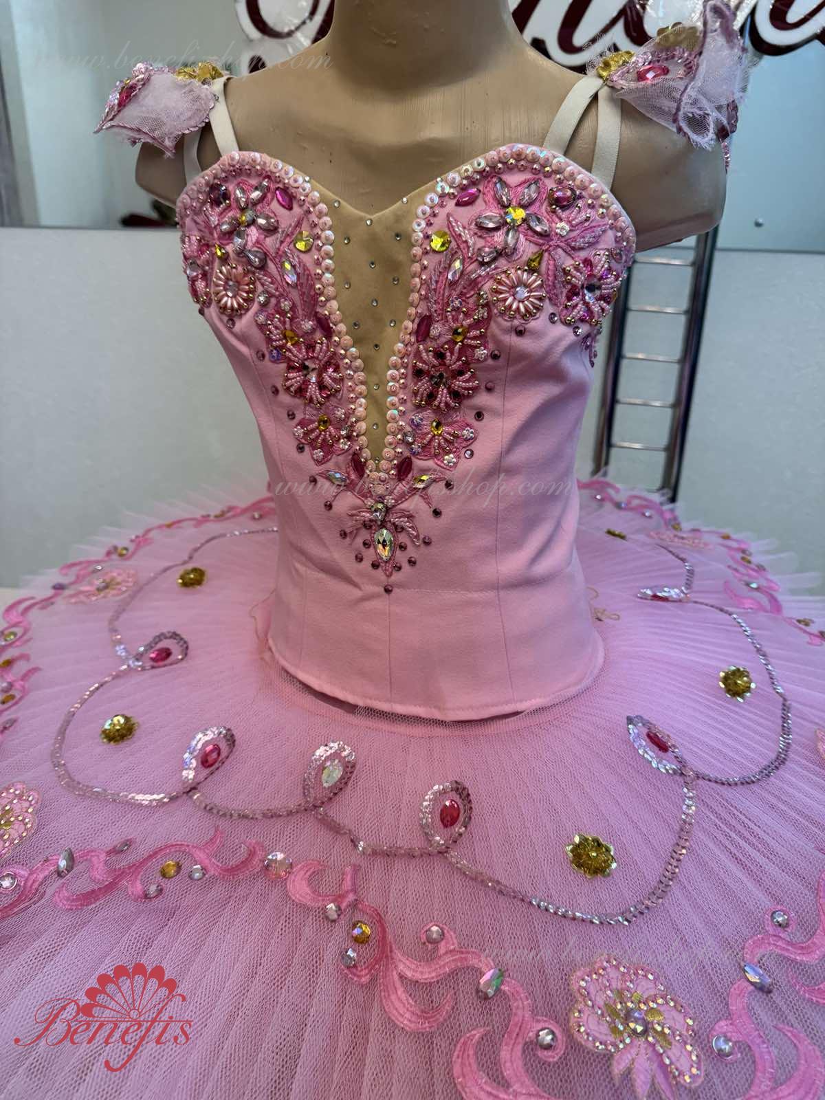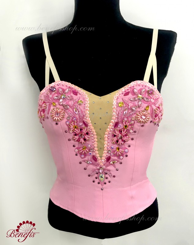 Costum de scena profesionist. Este confectionat in baza fustei de balet profesioniste #T0001B (vezi compartimentul „Fuste de balet de baza”).