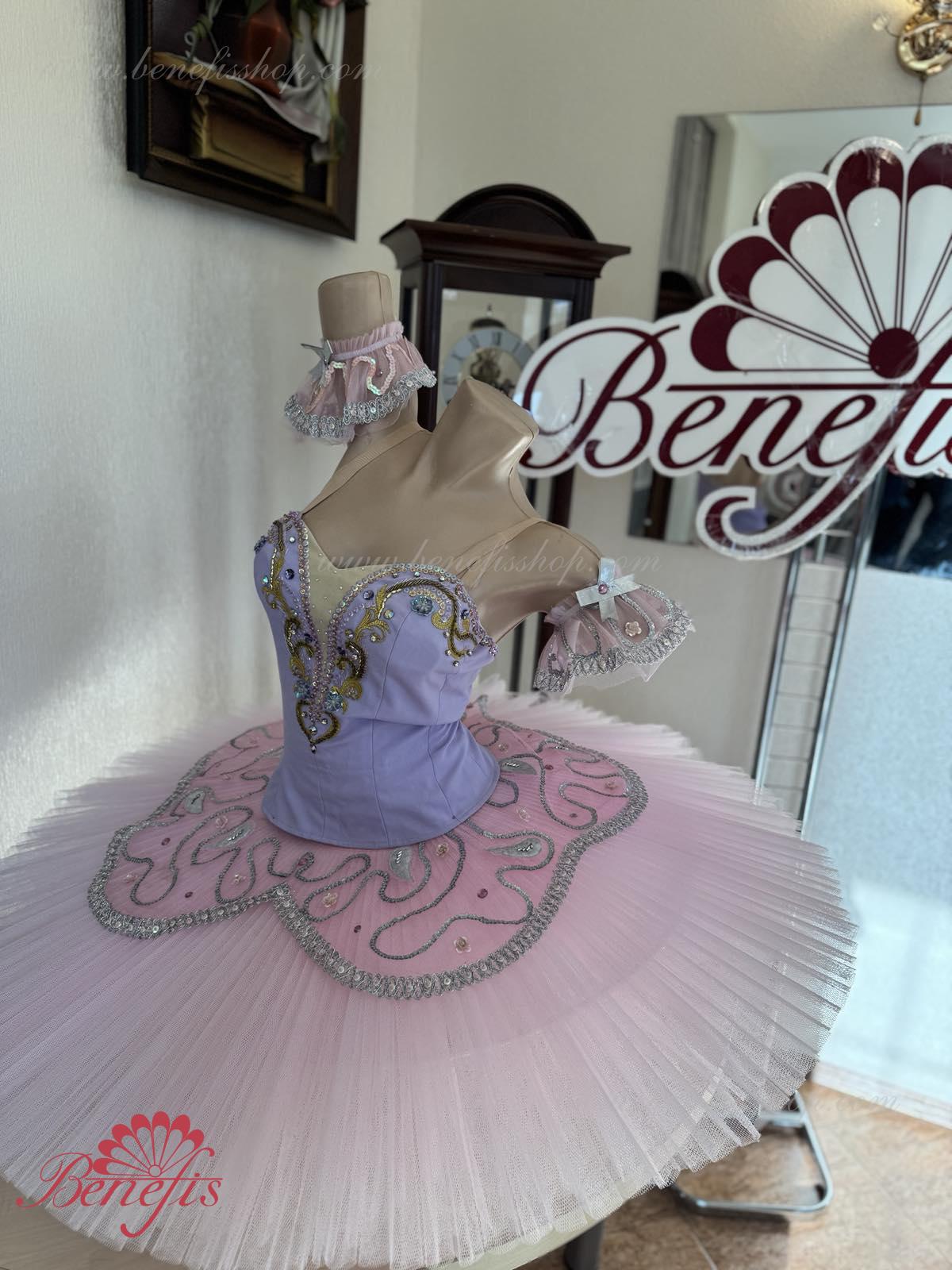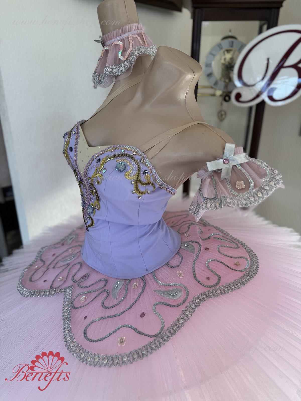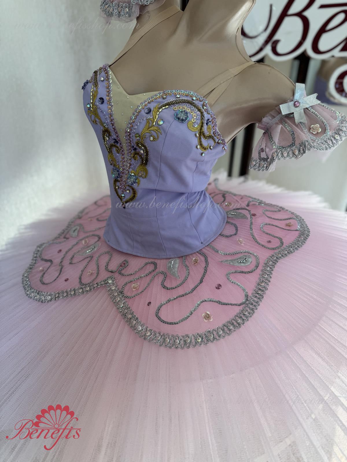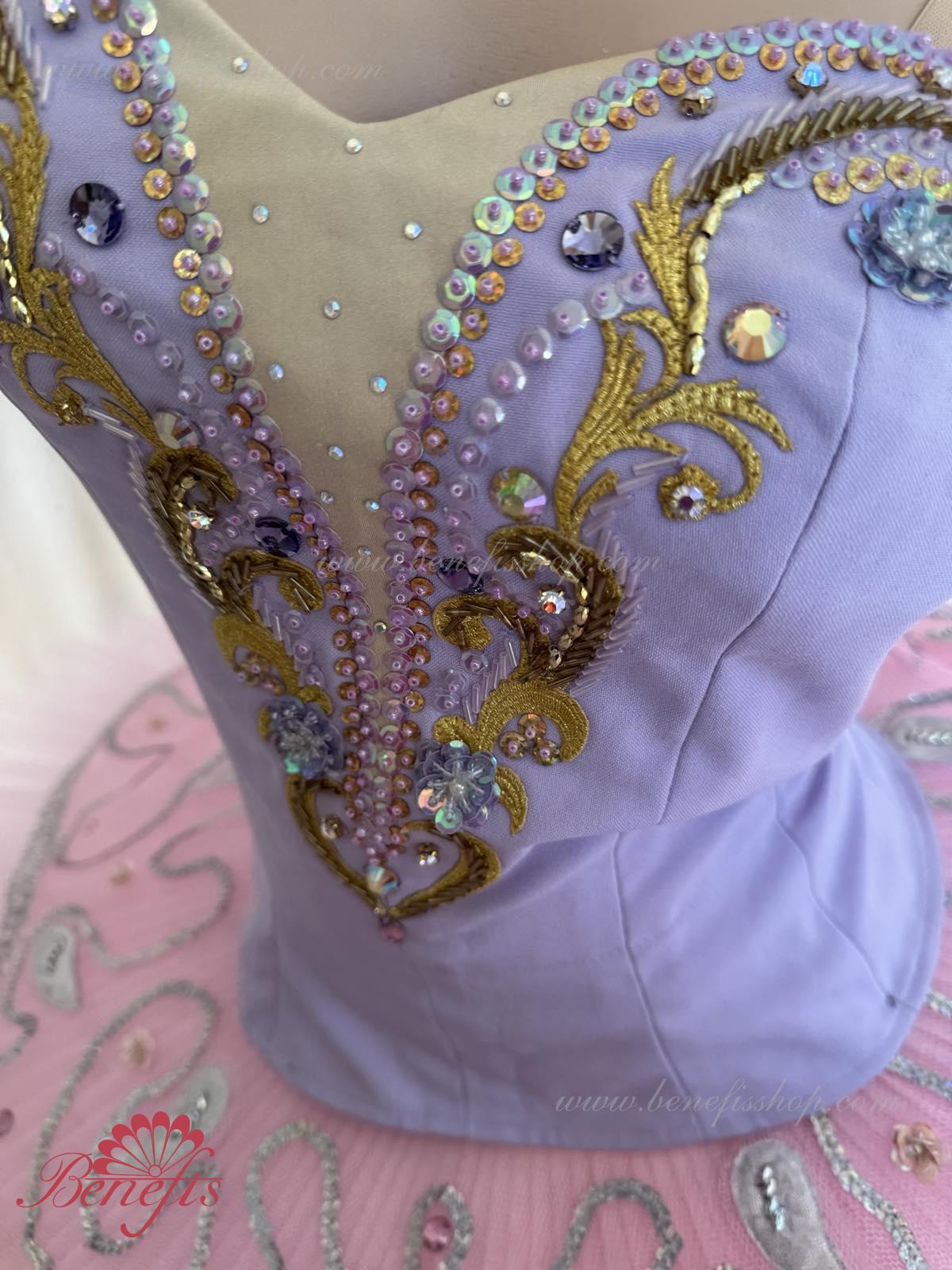 Acest costum de scenă poate fi întrebuiţat în multe piese de balet ca costum de concert si se potriveste excelent pentru prezentarea “Frumoasa Adormită” pentru rolul Zînei Liliacului.