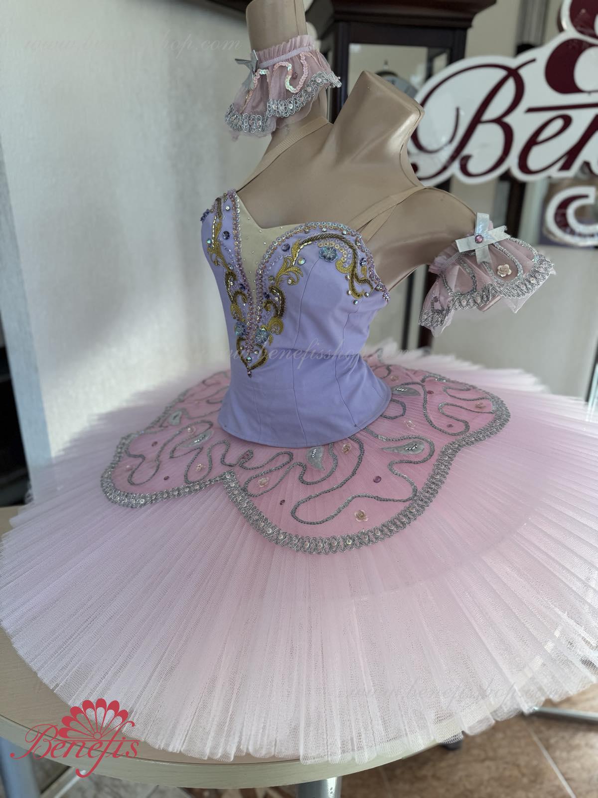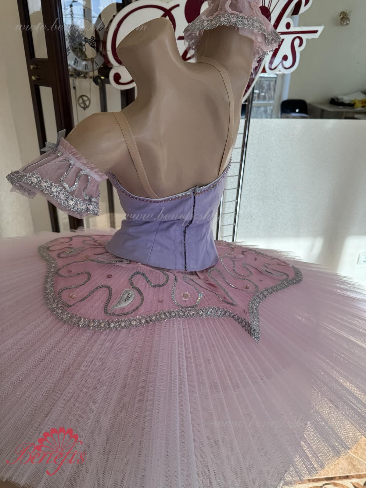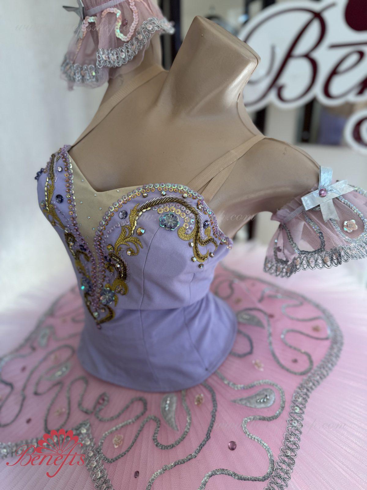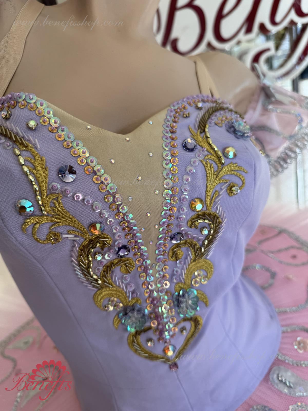 Acest costum de scenă poate fi întrebuiţat în multe piese de balet ca costum de concert si se potriveste excelent pentru prezentarea “Frumoasa Adormită” pentru rolul Zînei Liliacului.