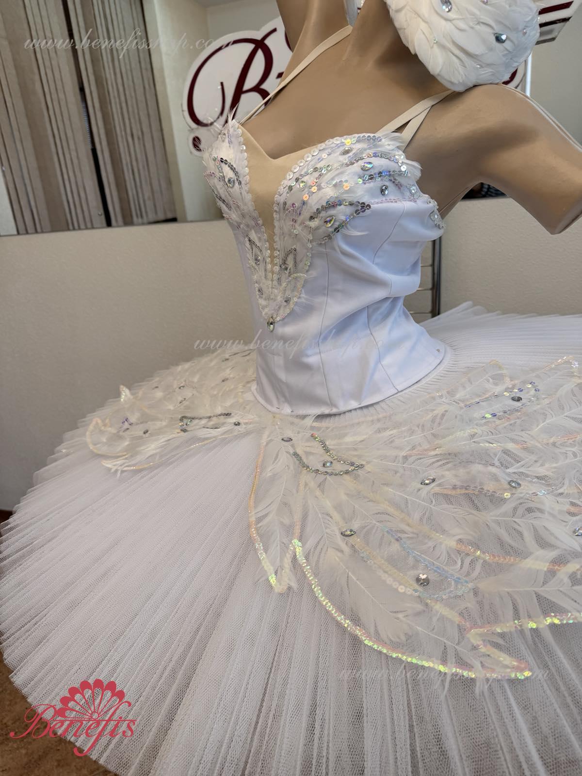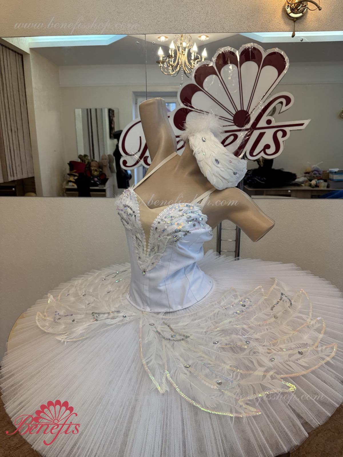 Acest tutu de balet de scenă este destinat rolului principal-Odette, în baletul "Lacul Lebedelor", și poate fi folosit și într-o miniatură de balet pe muzica lui Saint-Saens "The Dying Swan".