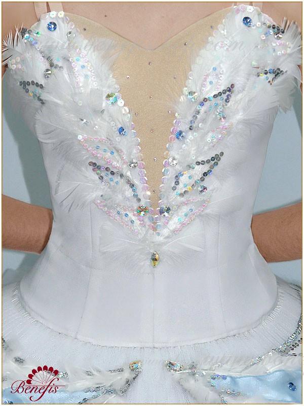 Ca decor al fustei de balet și al corsetului, se folosesc pene naturale albe și puf de lebădă, strasuri albe de diferite dimensiuni, mărgele de sticlă, mărgele, paiete cu și fără hologramă. Acest decor arată grozav de pe scenă.