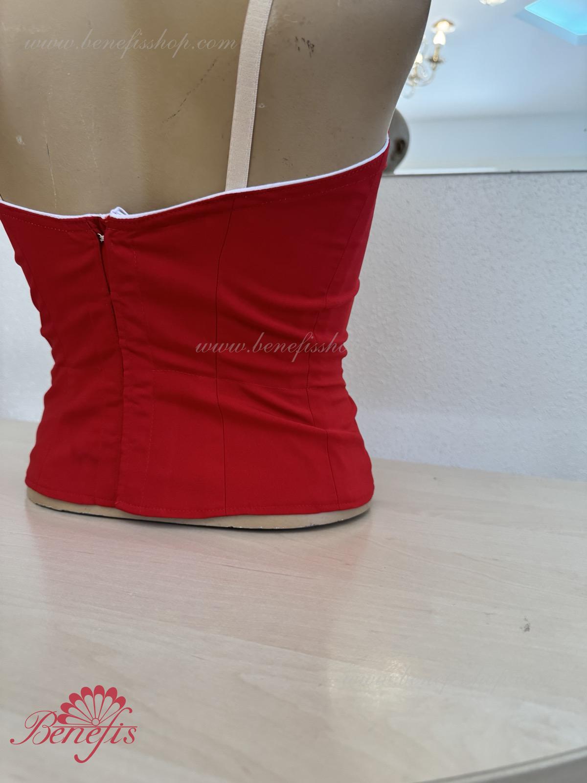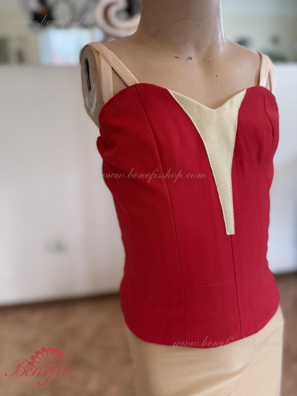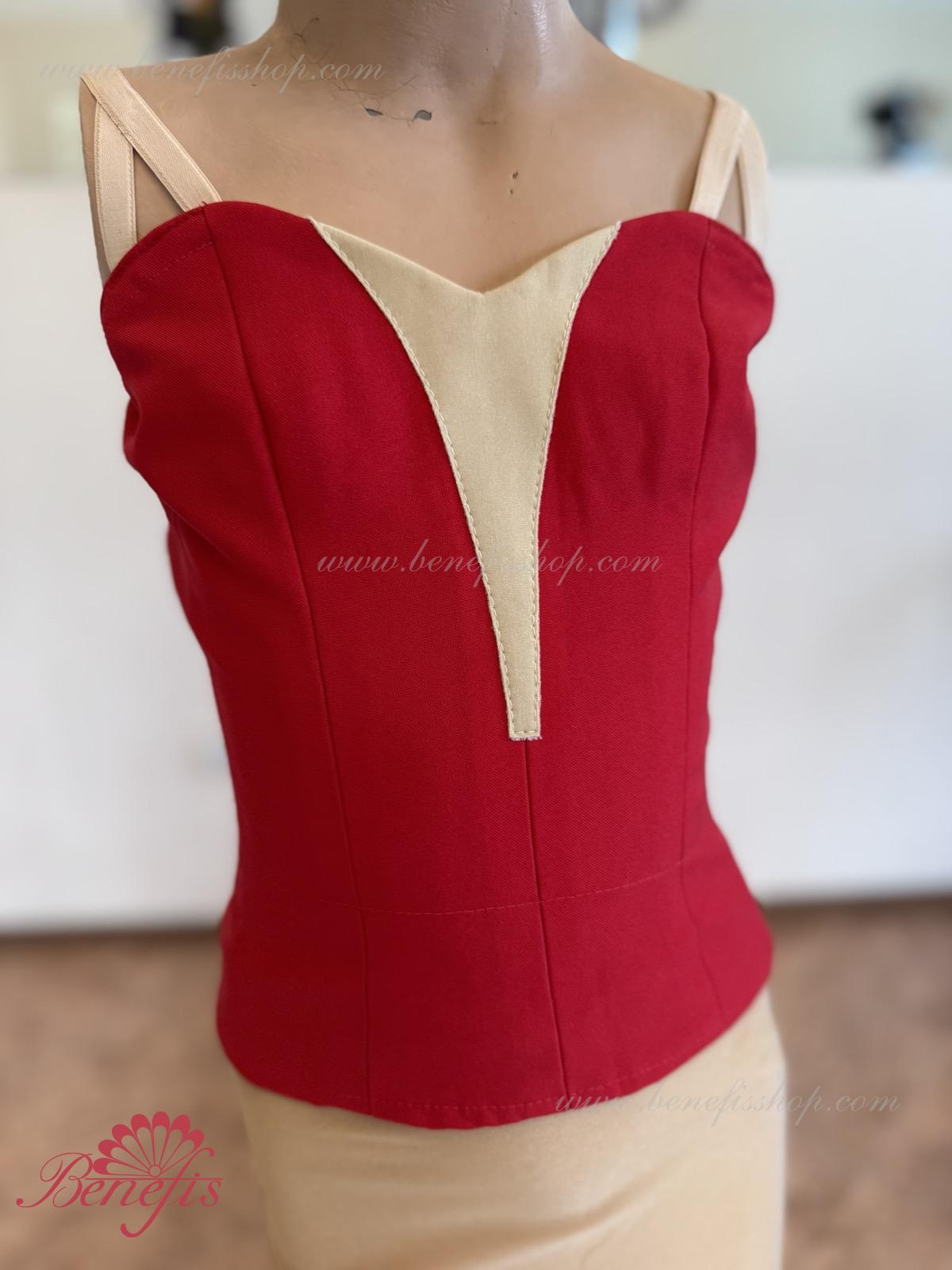 Detalii: Corsetul, cu bretele elastice și o inserție de culoare bej pe piept, este realizat din gabardină. Corsetul este fixat cu cârlige în două rânduri pentru o reglare ușoară, cordonul interior este folosit pentru a strânge corsetul în zona pieptului.