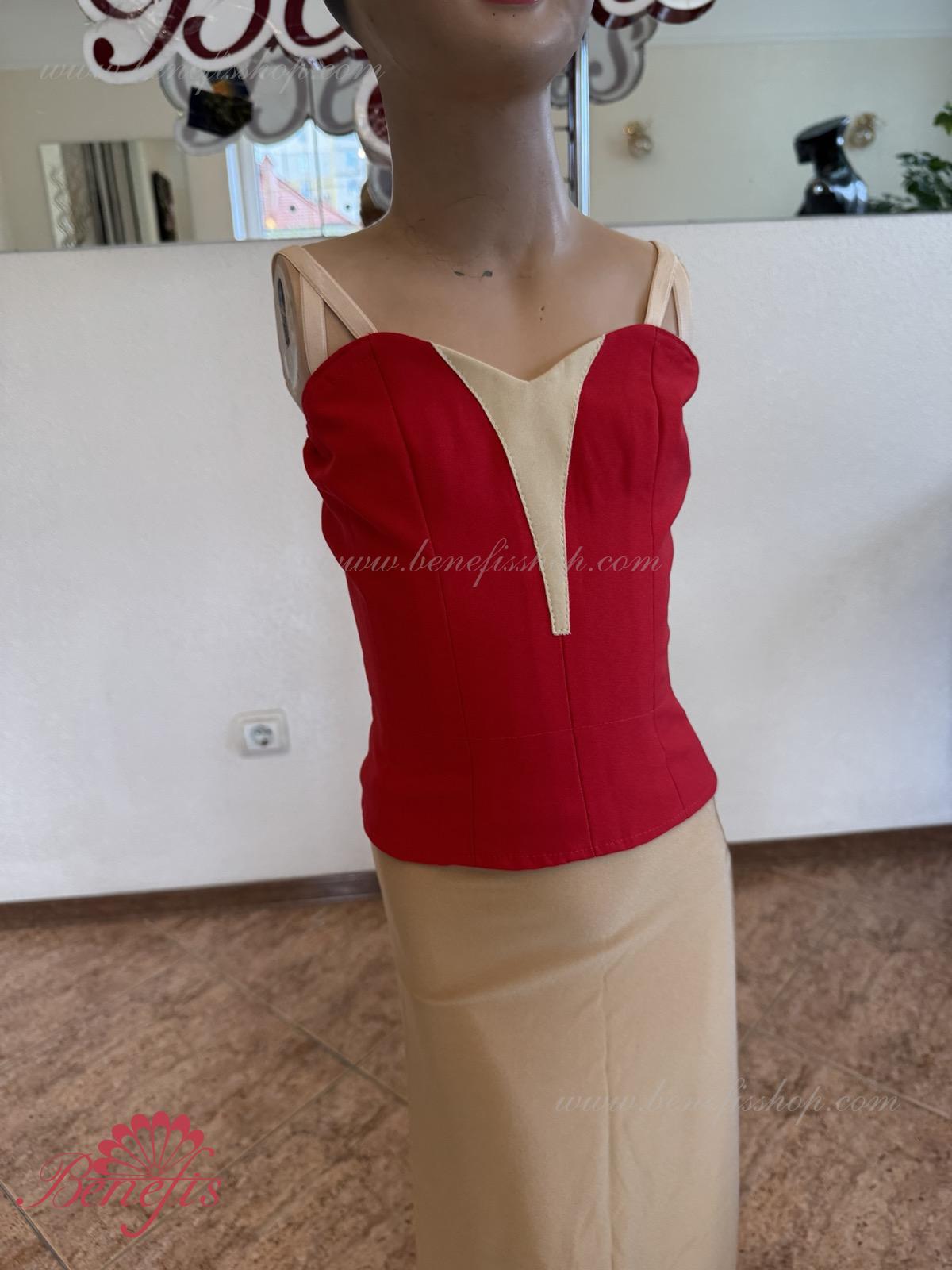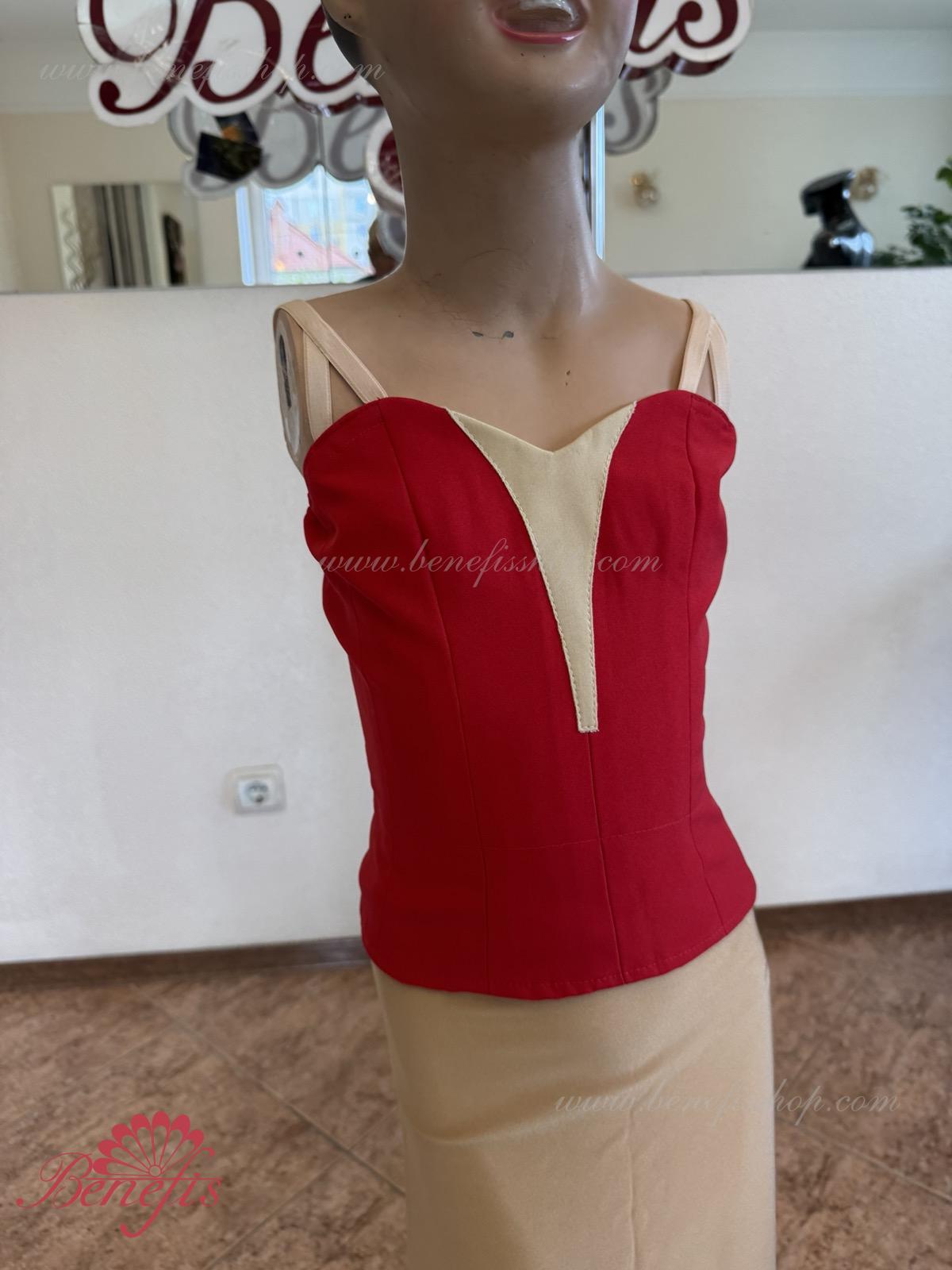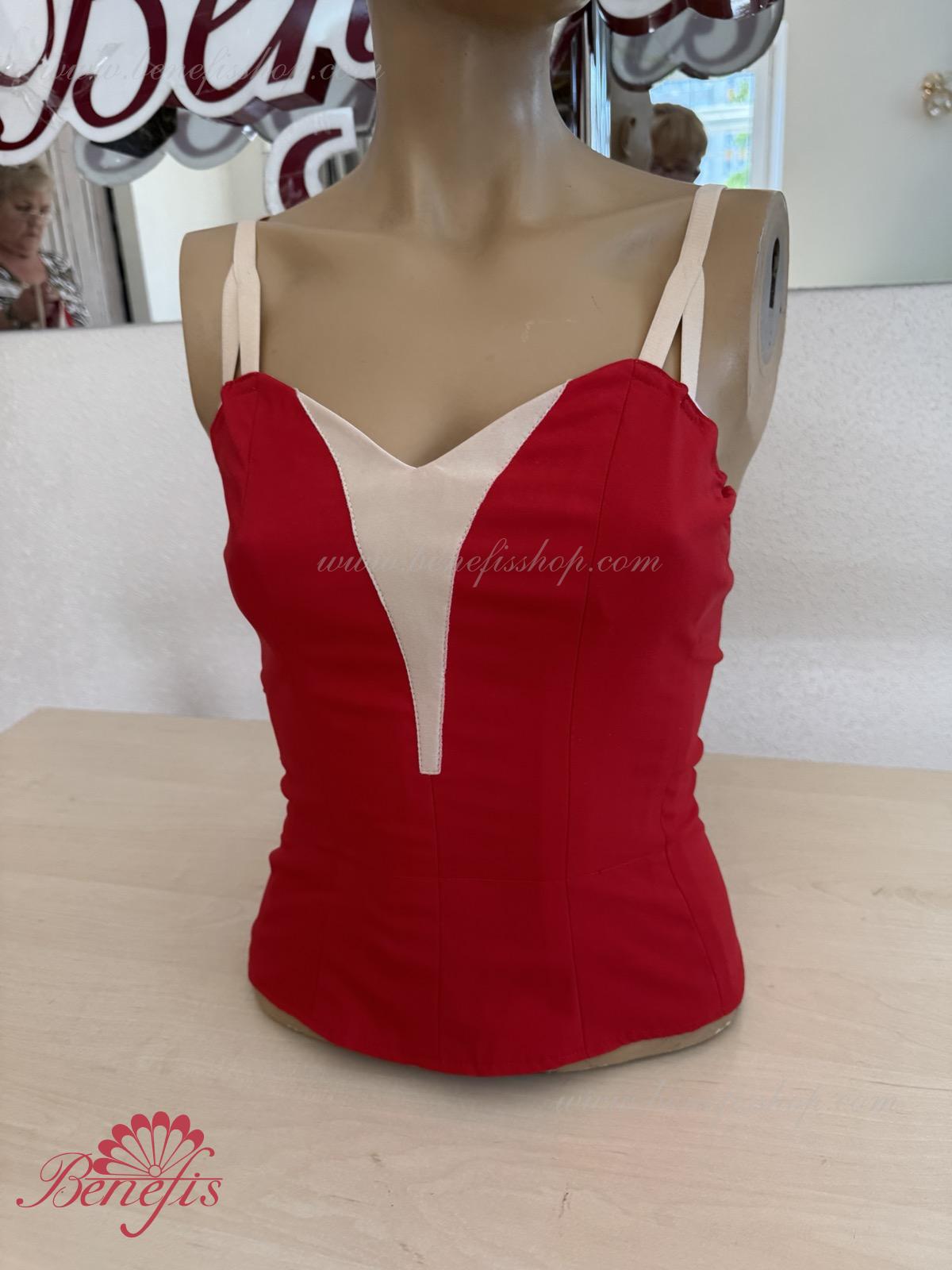 Detalii: Corsetul, cu bretele elastice și o inserție de culoare bej pe piept, este realizat din gabardină. Corsetul este fixat cu cârlige în două rânduri pentru o reglare ușoară, cordonul interior este folosit pentru a strânge corsetul în zona pieptului.