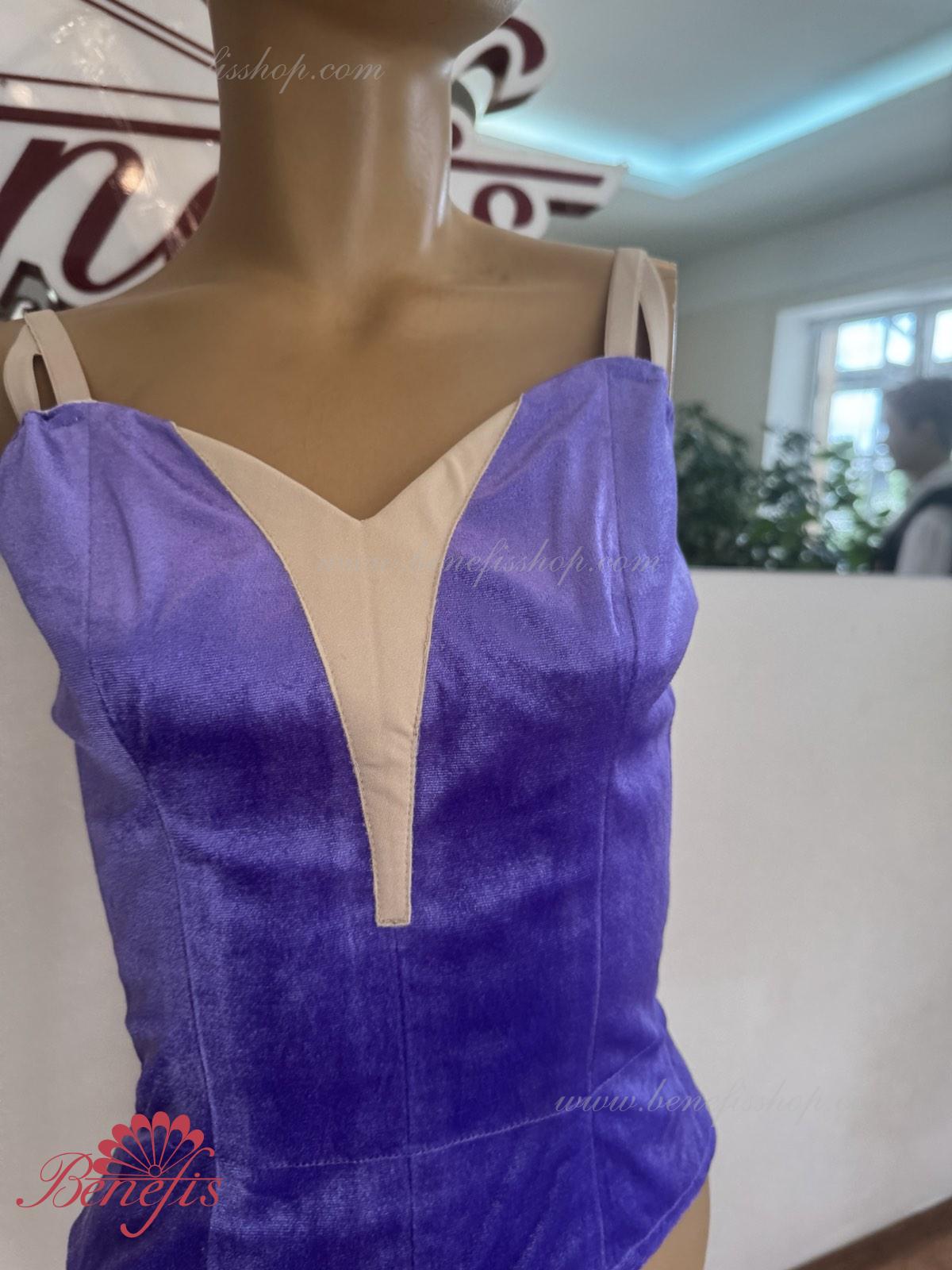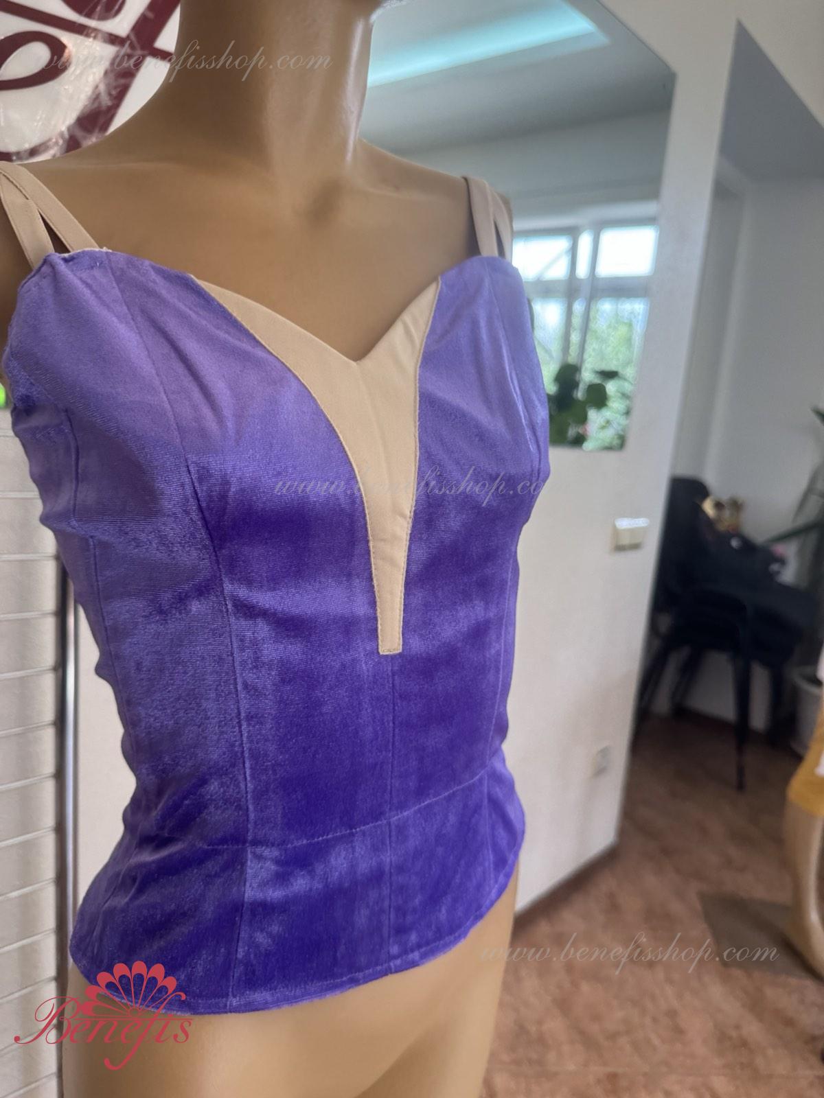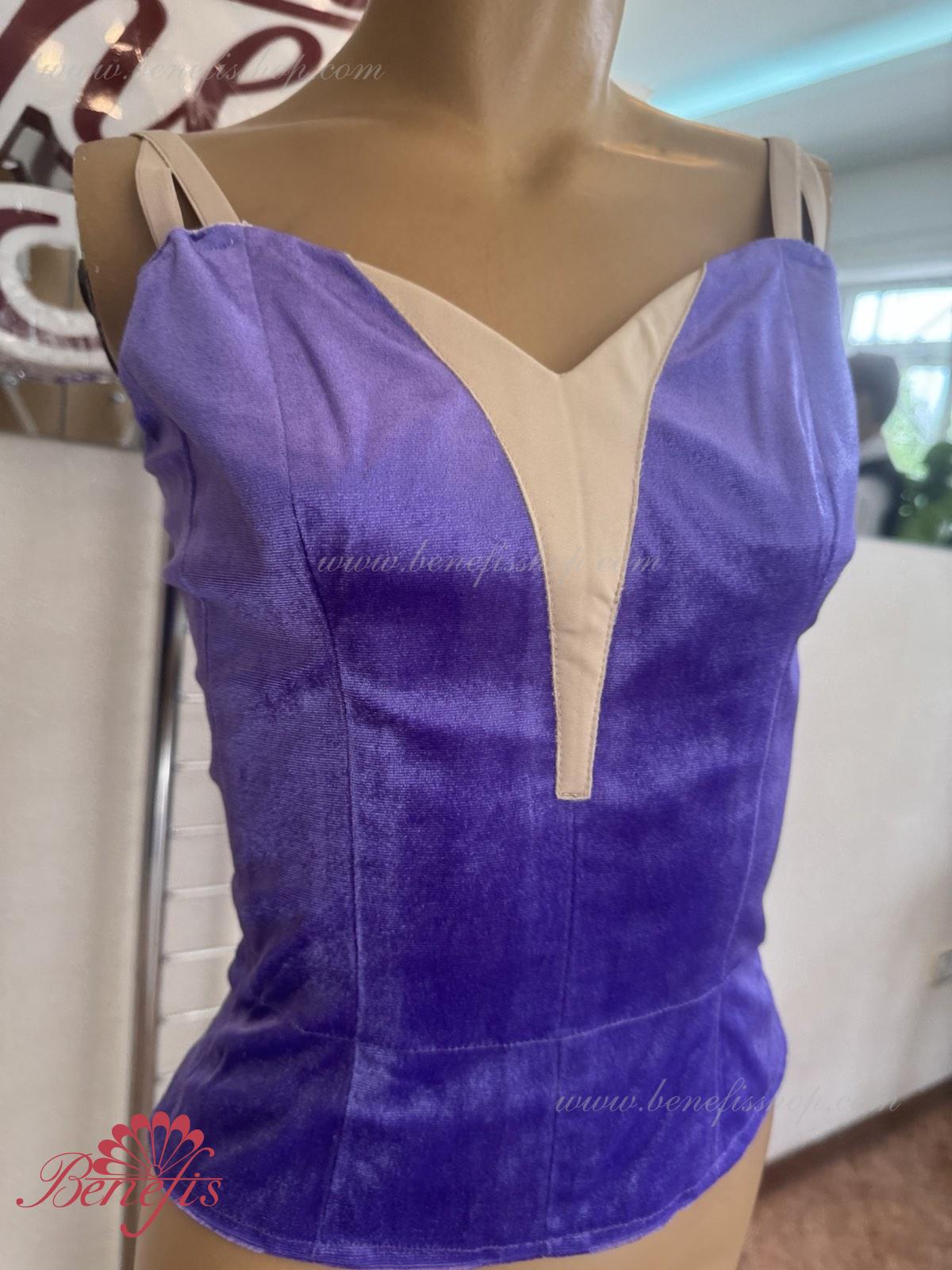 Detalii: Corsetul este confectionat din catifea.. Pe corset sunt prezente doua rinduri de chirlige pentru regularea comoda si un snur intern pentru stringerea corsetului la nivelul pieptului.Pe piept se intrevede o insertie de culoarea pielii. Chingele sunt de culoarea pielii.