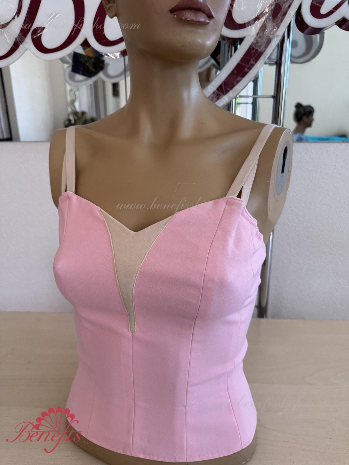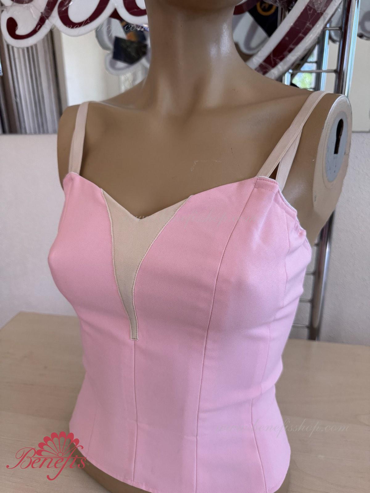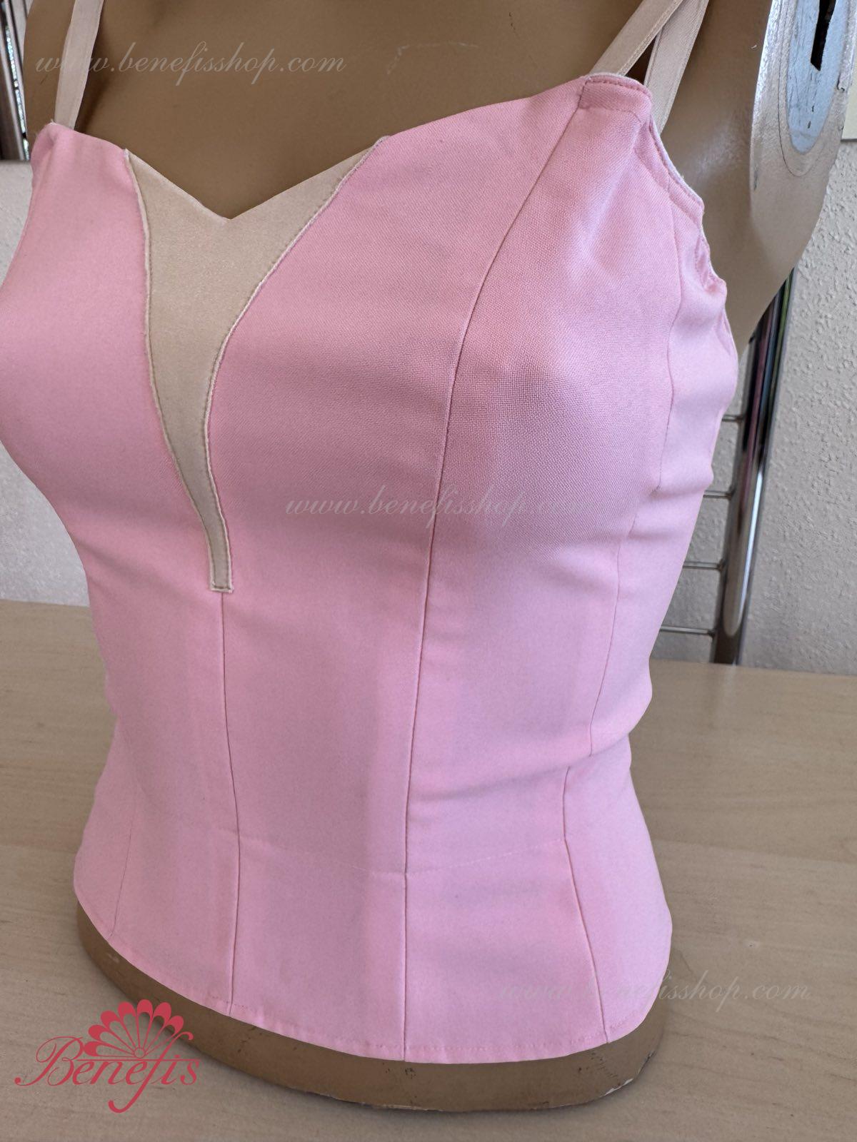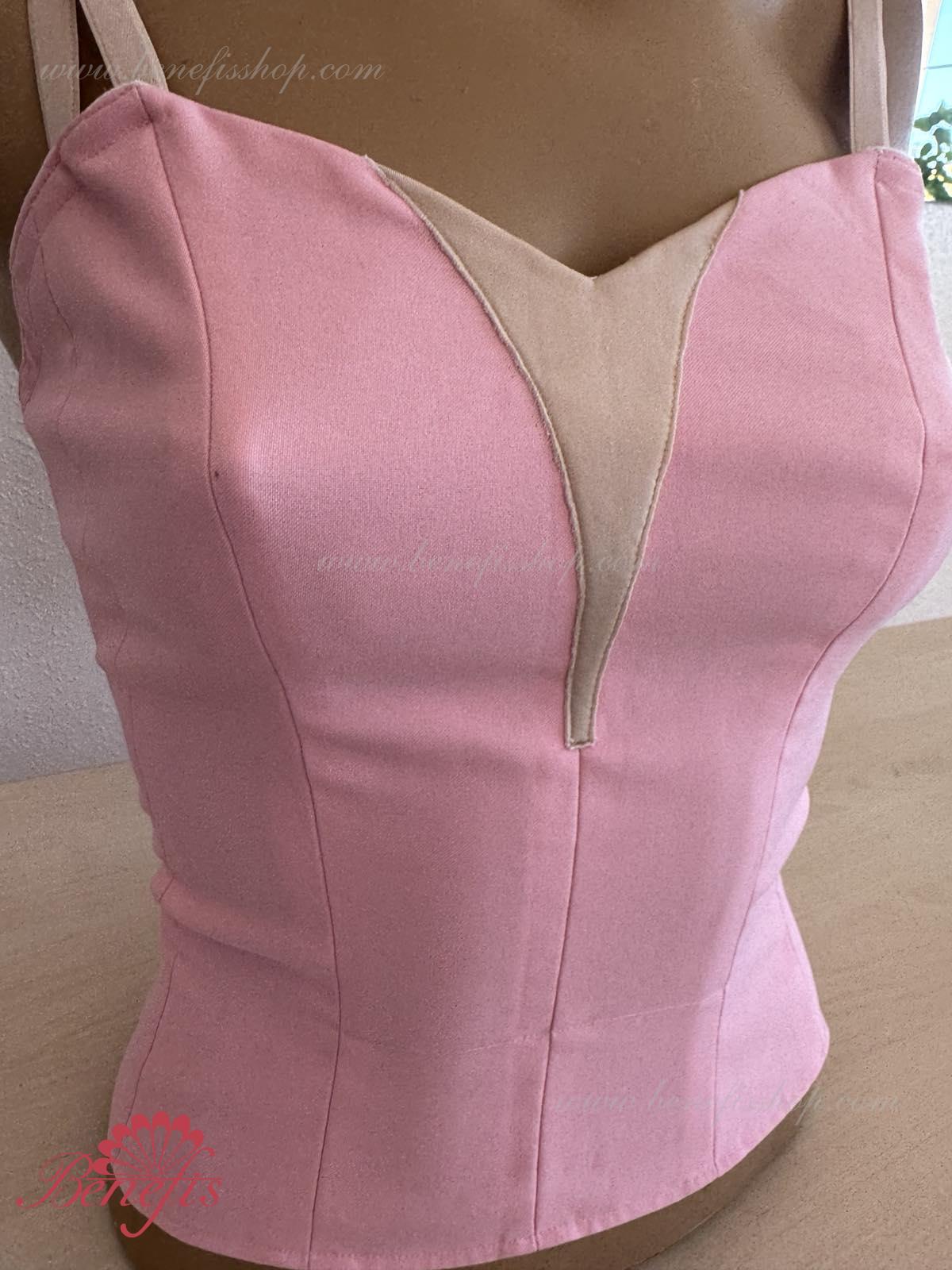 Detalii: Corsetul este confectionat din tesatura densa semi-stretch. Pe corset sunt prezente doua rinduri de chirlige pentru regularea comoda si un snur intern pentru stringerea corsetului la nivelul pieptului.Pe piept se intrevede o insertie de culoarea pielii. Chingele sunt de culoarea pielii.