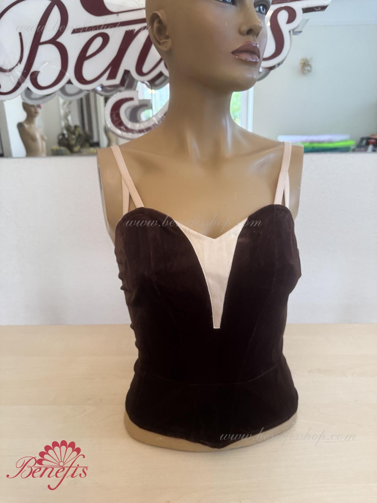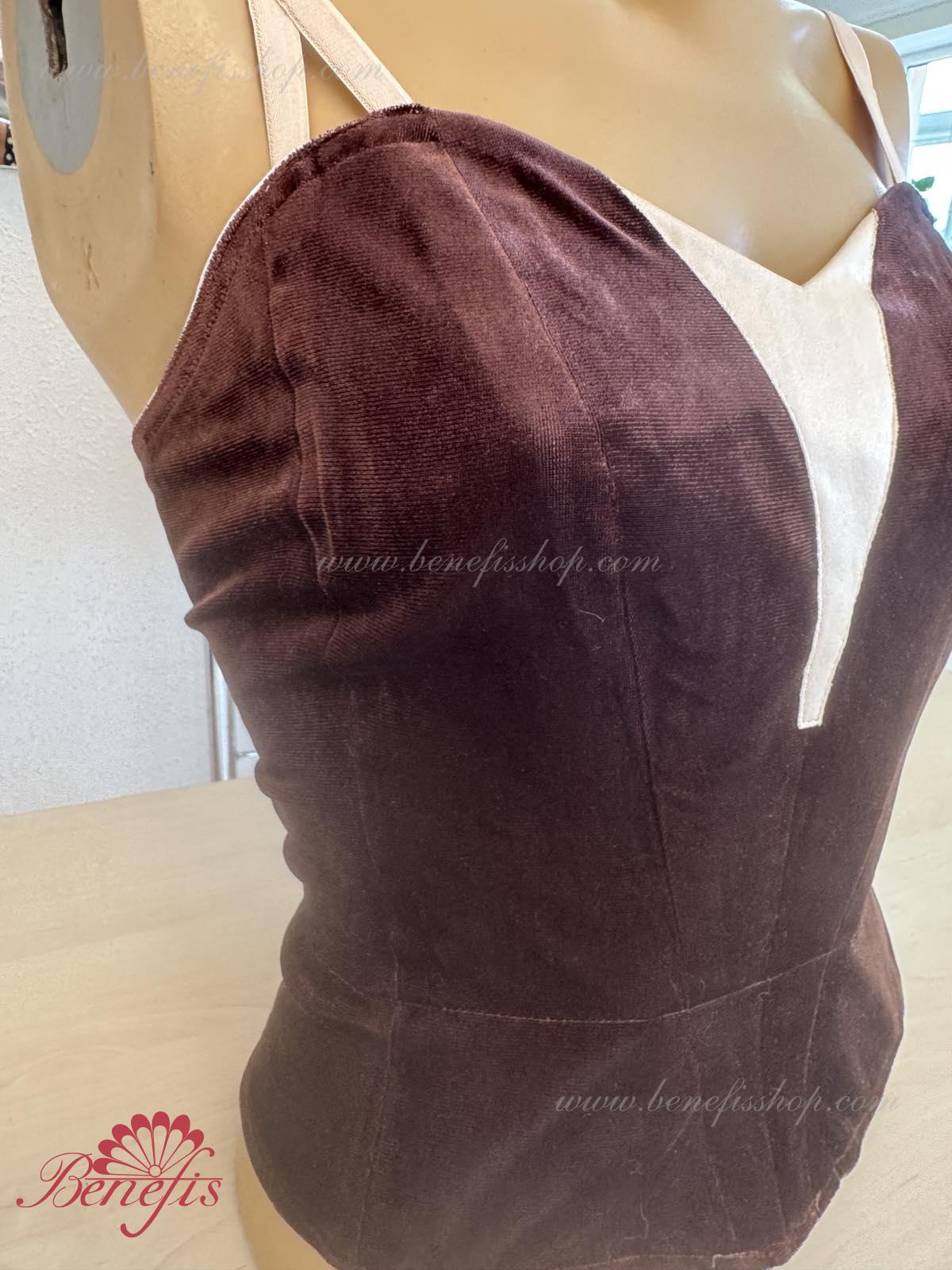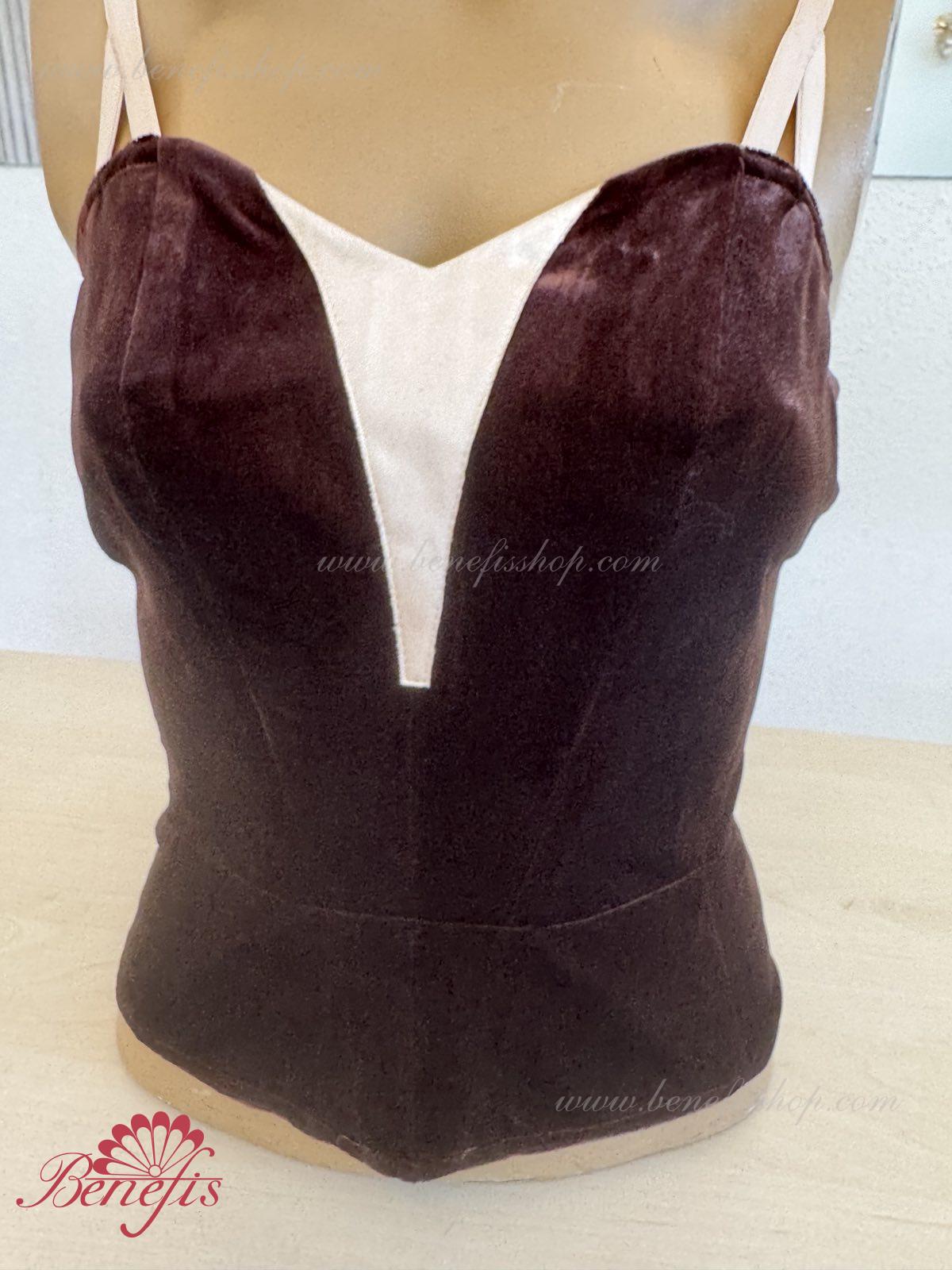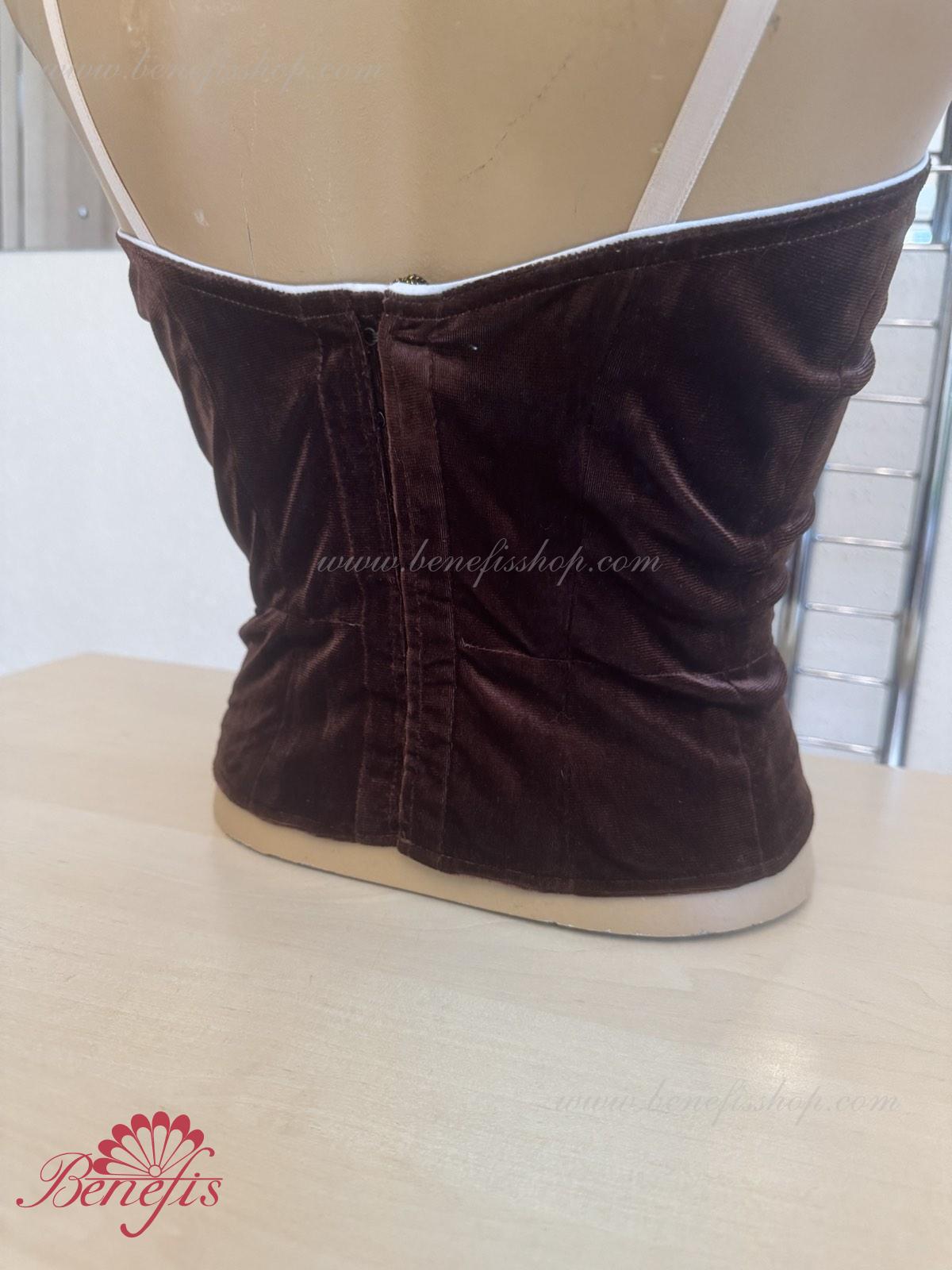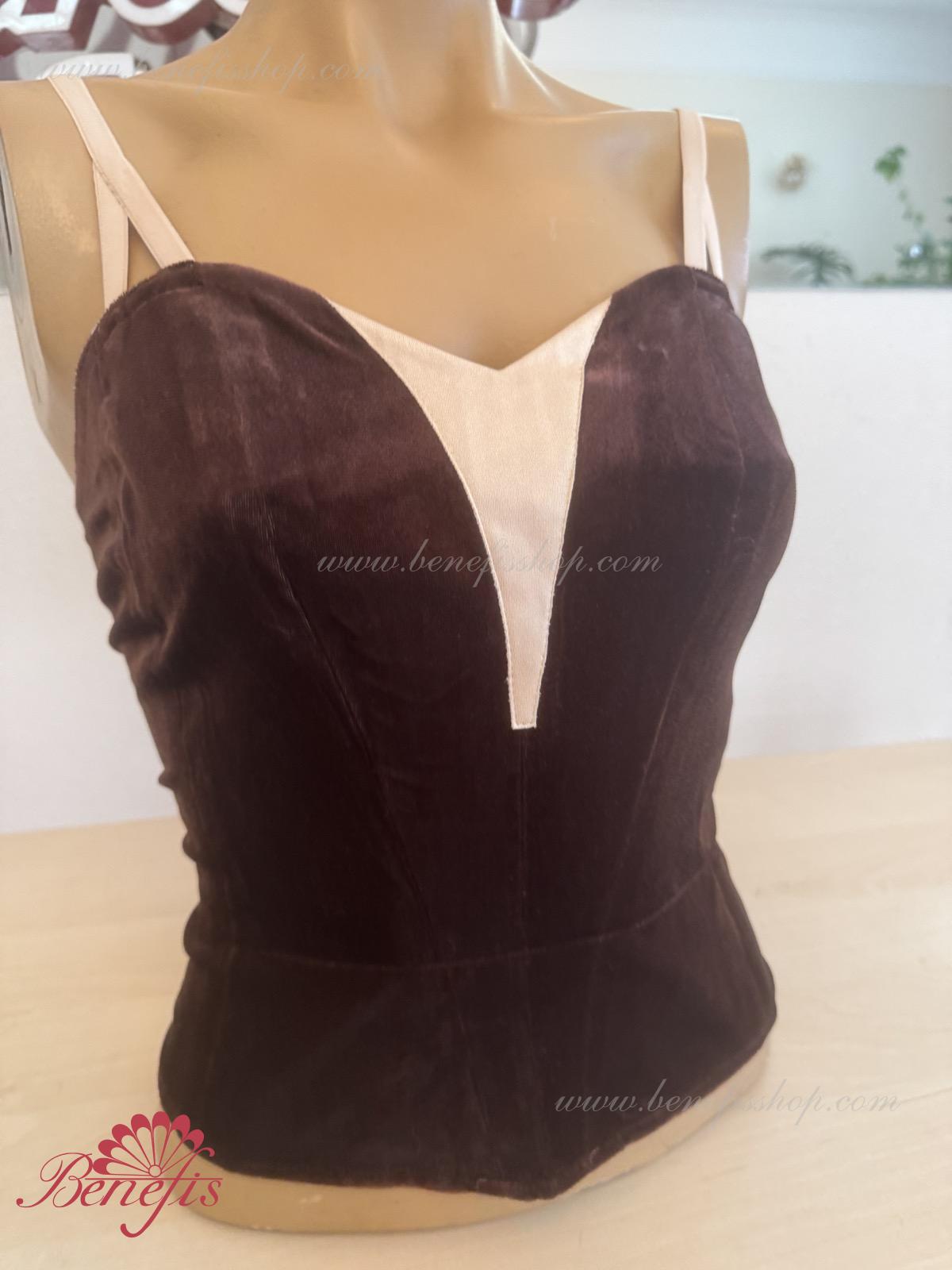 Detalii: Corsetul, cu bretele elastice și o inserție de culoare bej pe piept, este realizat din gabardină. Corsetul este fixat cu cârlige în două rânduri pentru o reglare ușoară, cordonul interior este folosit pentru a strânge corsetul în zona pieptului.