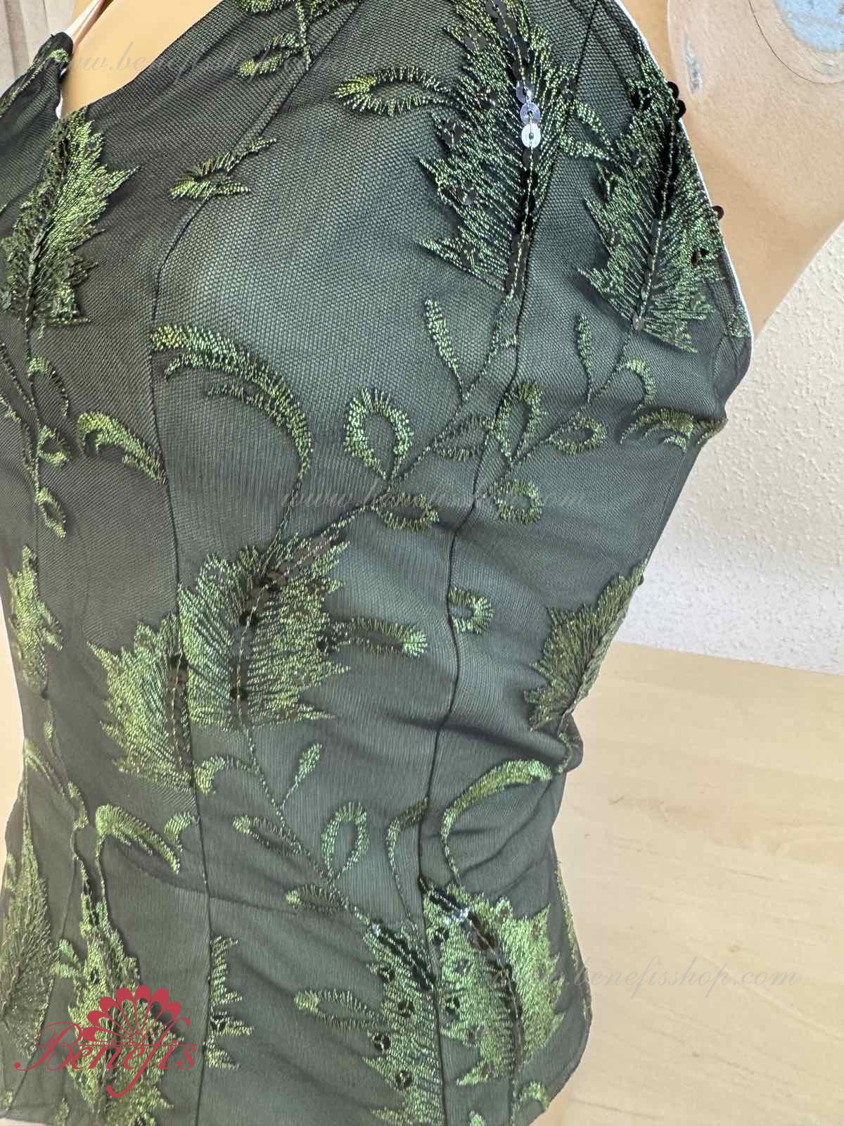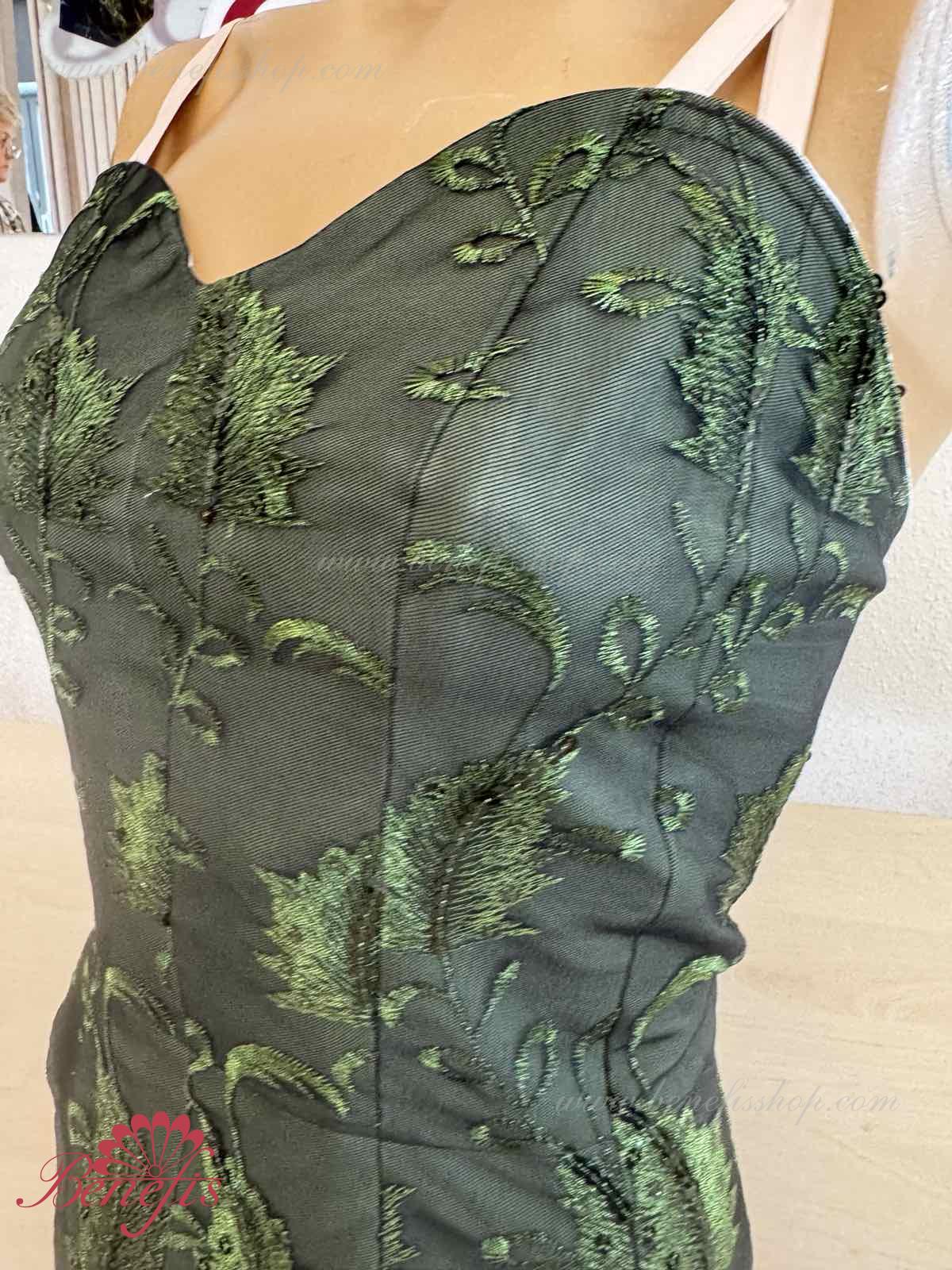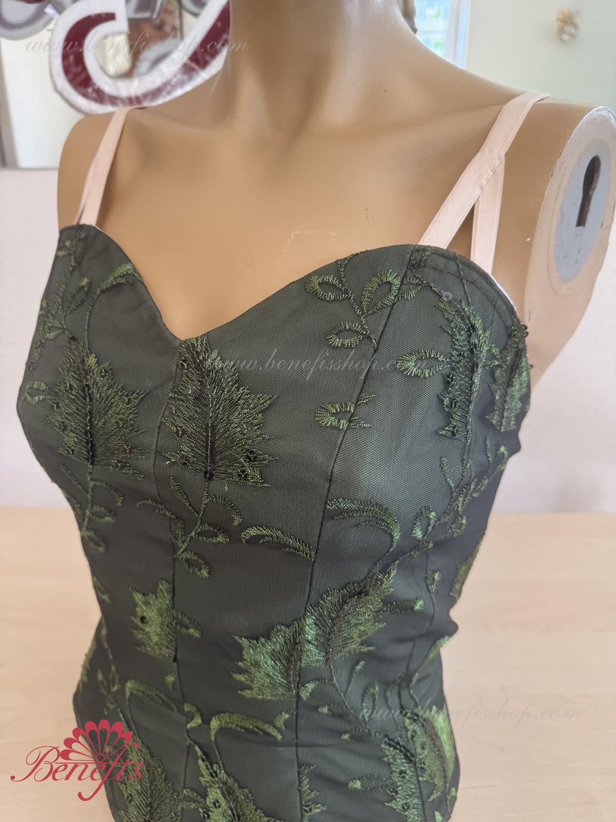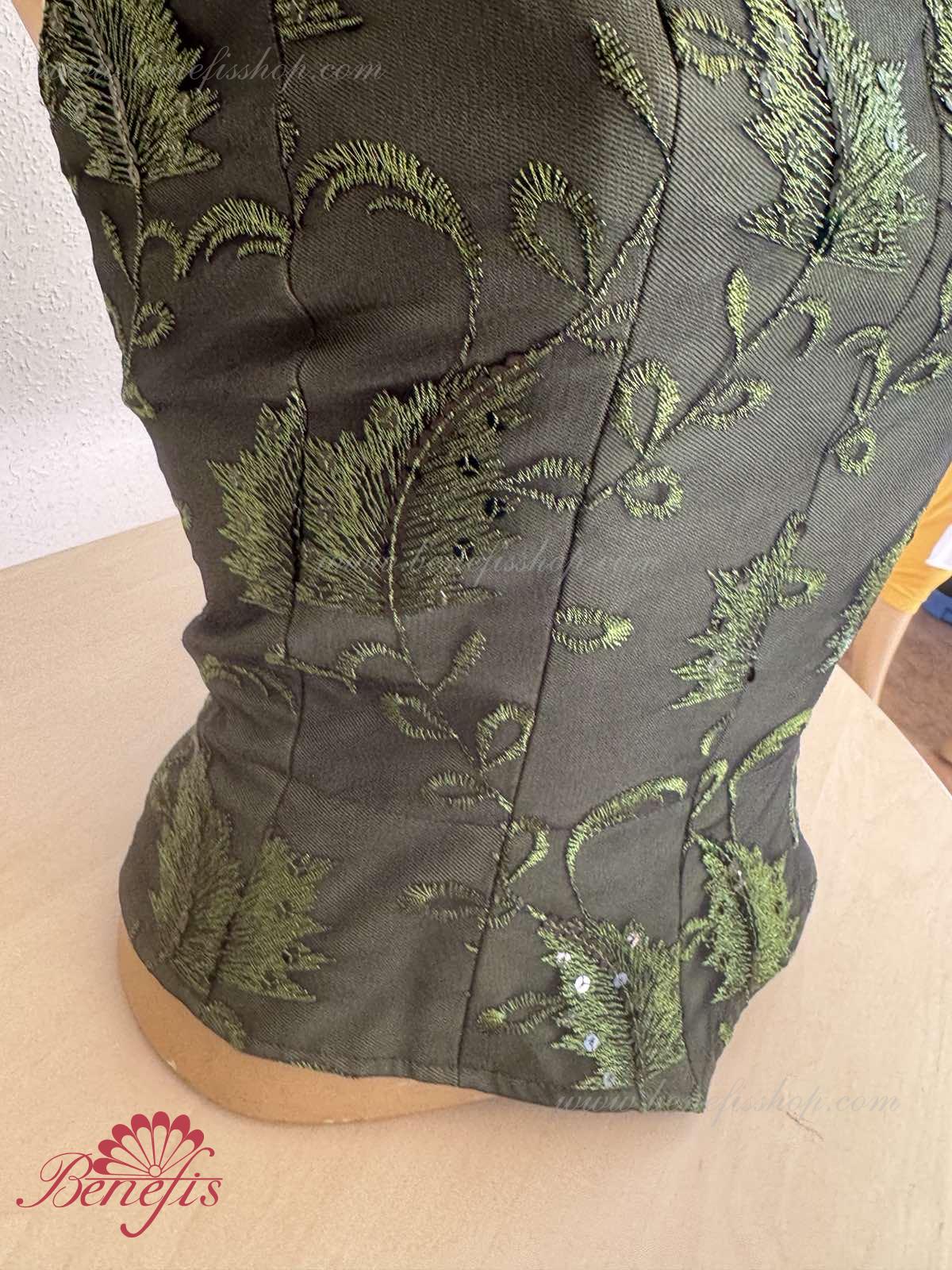 Detalii: Corsetul, cu bretele elastice, este confectionat din tesatura densa semi-elastica. Corsetul este fixat cu cârlige în două rânduri pentru o reglare ușoară, cordonul interior este folosit pentru a strânge corsetul în zona pieptului. Decor: paiete.