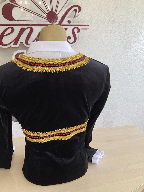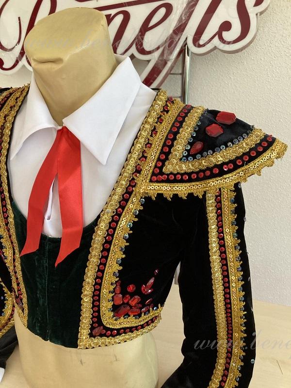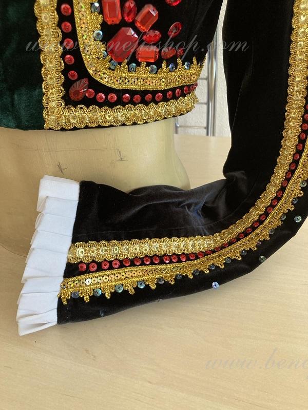 Costumul dat se potriveste perfect pentru piesa de balet Don Quijote, rolul lui Bazil – al 3-lea act si poate fi la fel utilizat ca costum pentru concert.