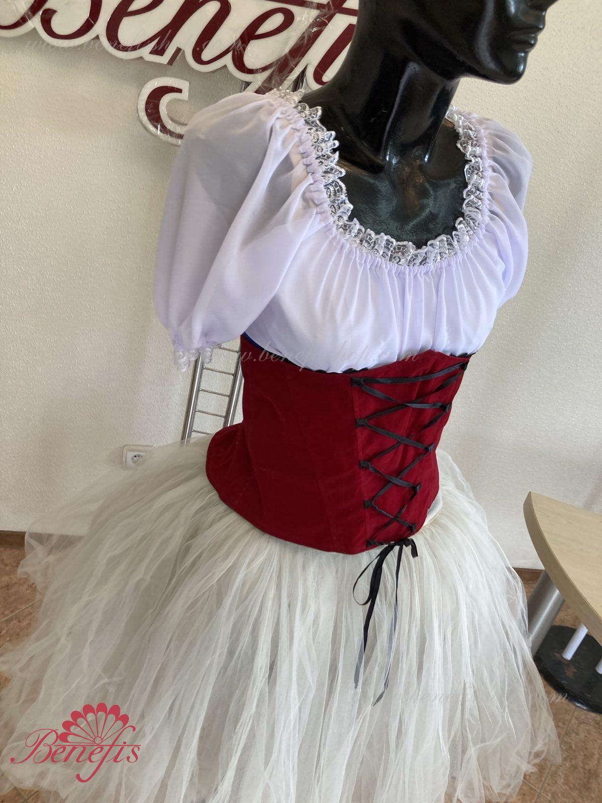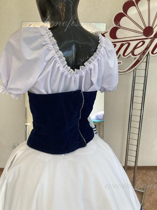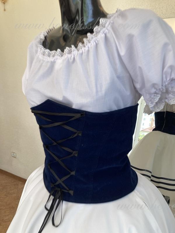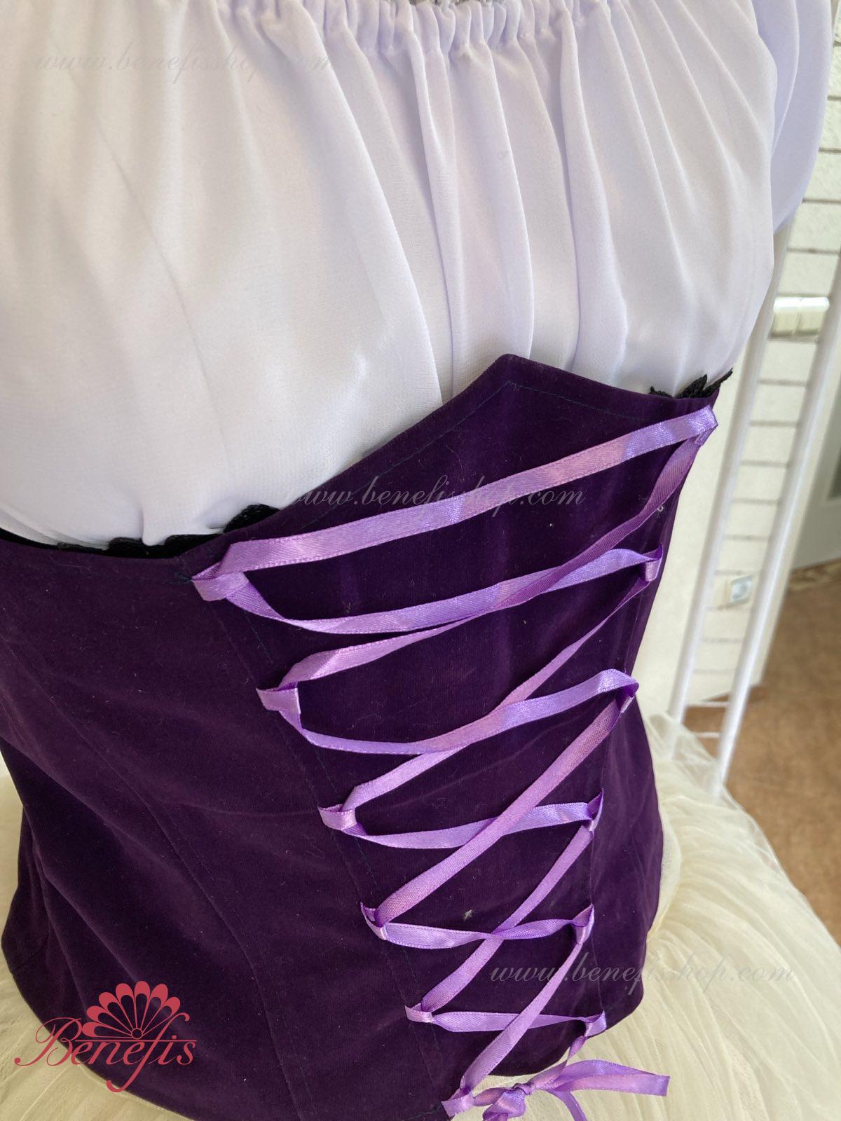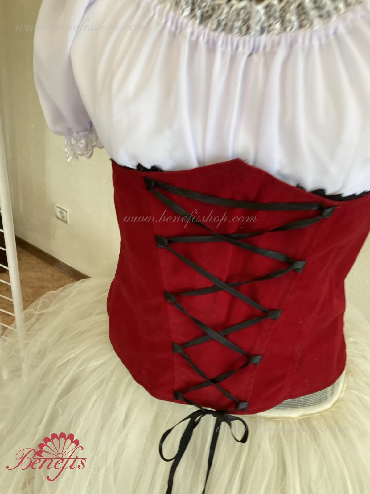 Corsetul captusit este confectionata din catifea de hârtie. Şiretul din panglica din satin va permite sa ajustati lățimea corsetului. Conturul din partea de sus a articolului elegant subliniază forma sanilor. Corsetul se inchide la spate cu fermoar. Costumul este gata pentru expediere imediată