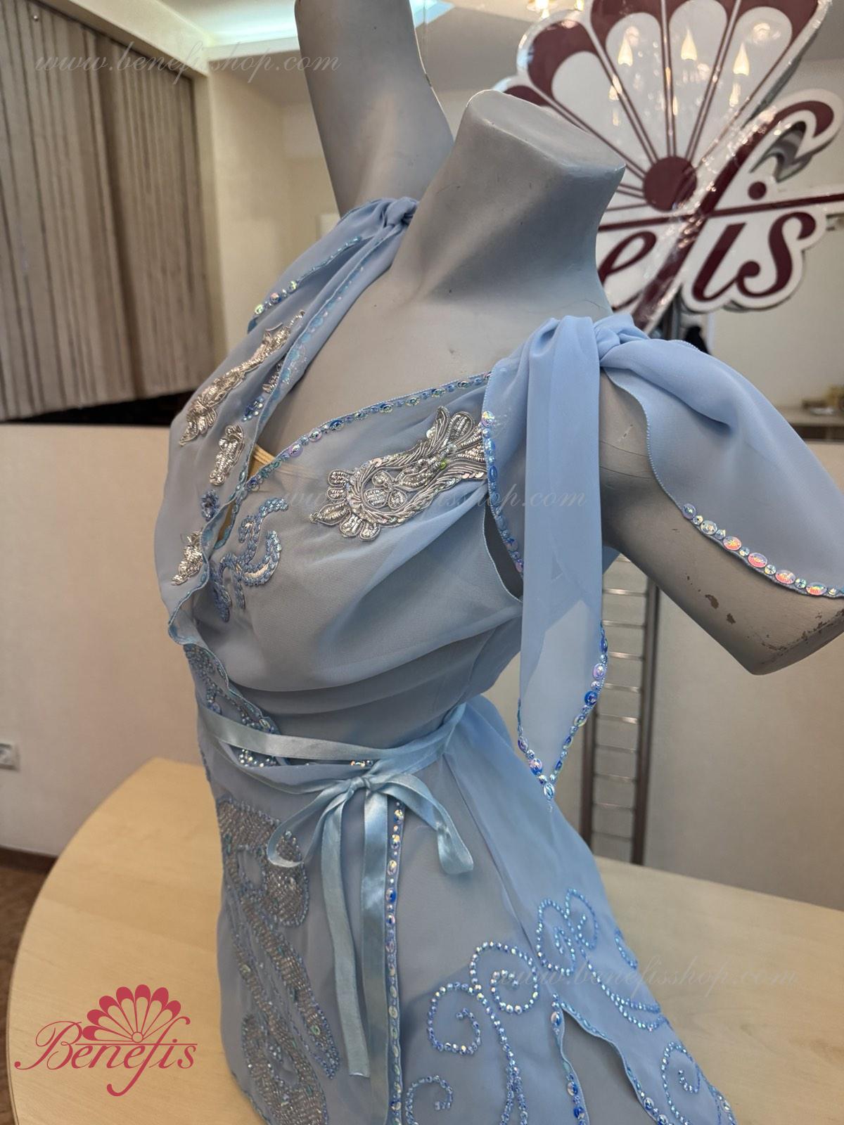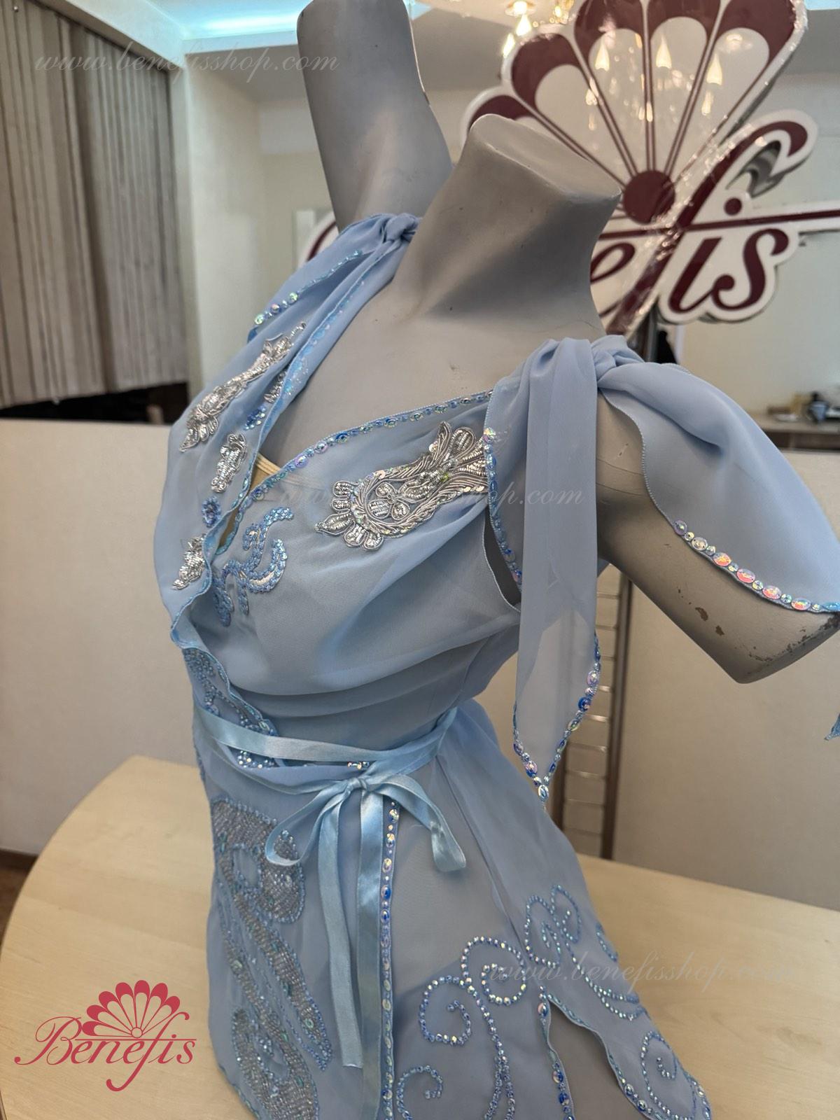Pentru executarea rochiei este folosit sifon ce usor isi revarsa culoarea si acorda costumului putin volum.