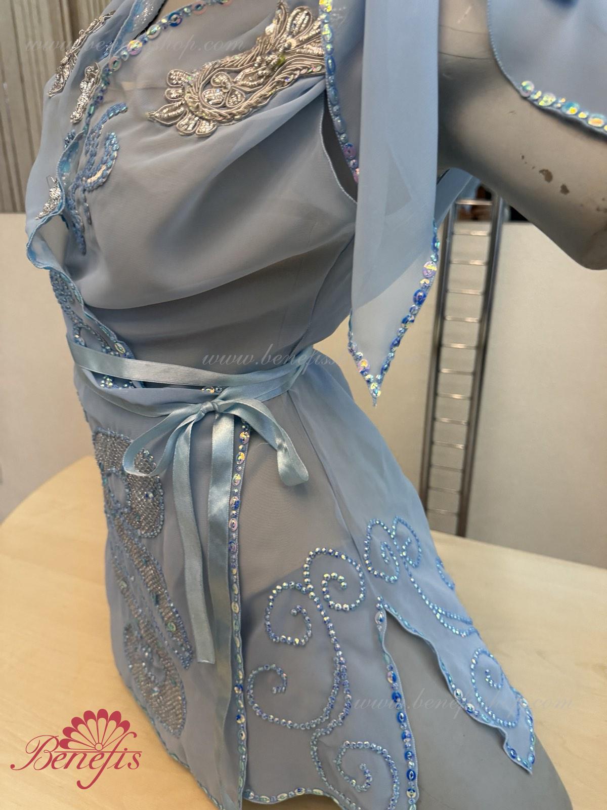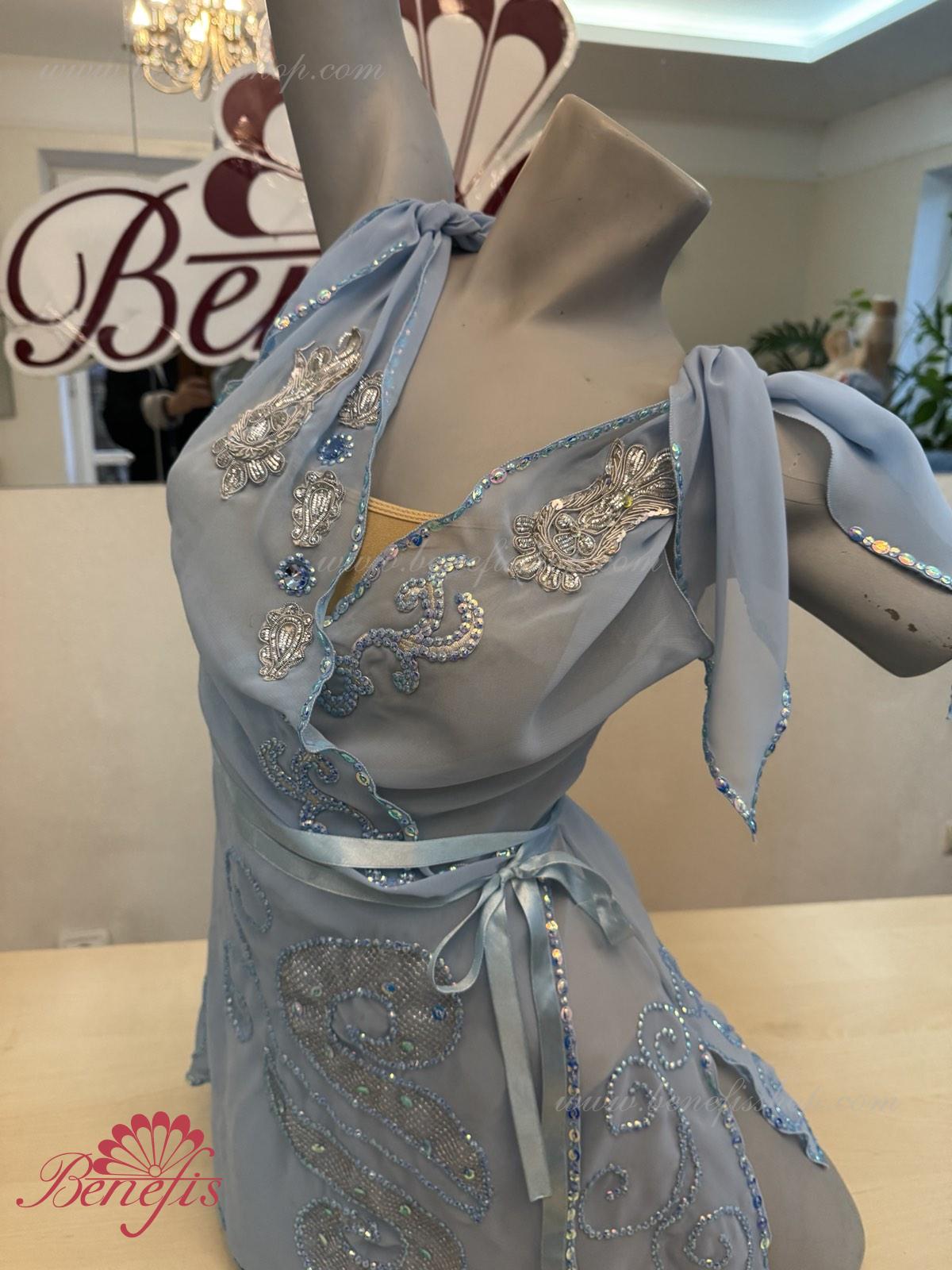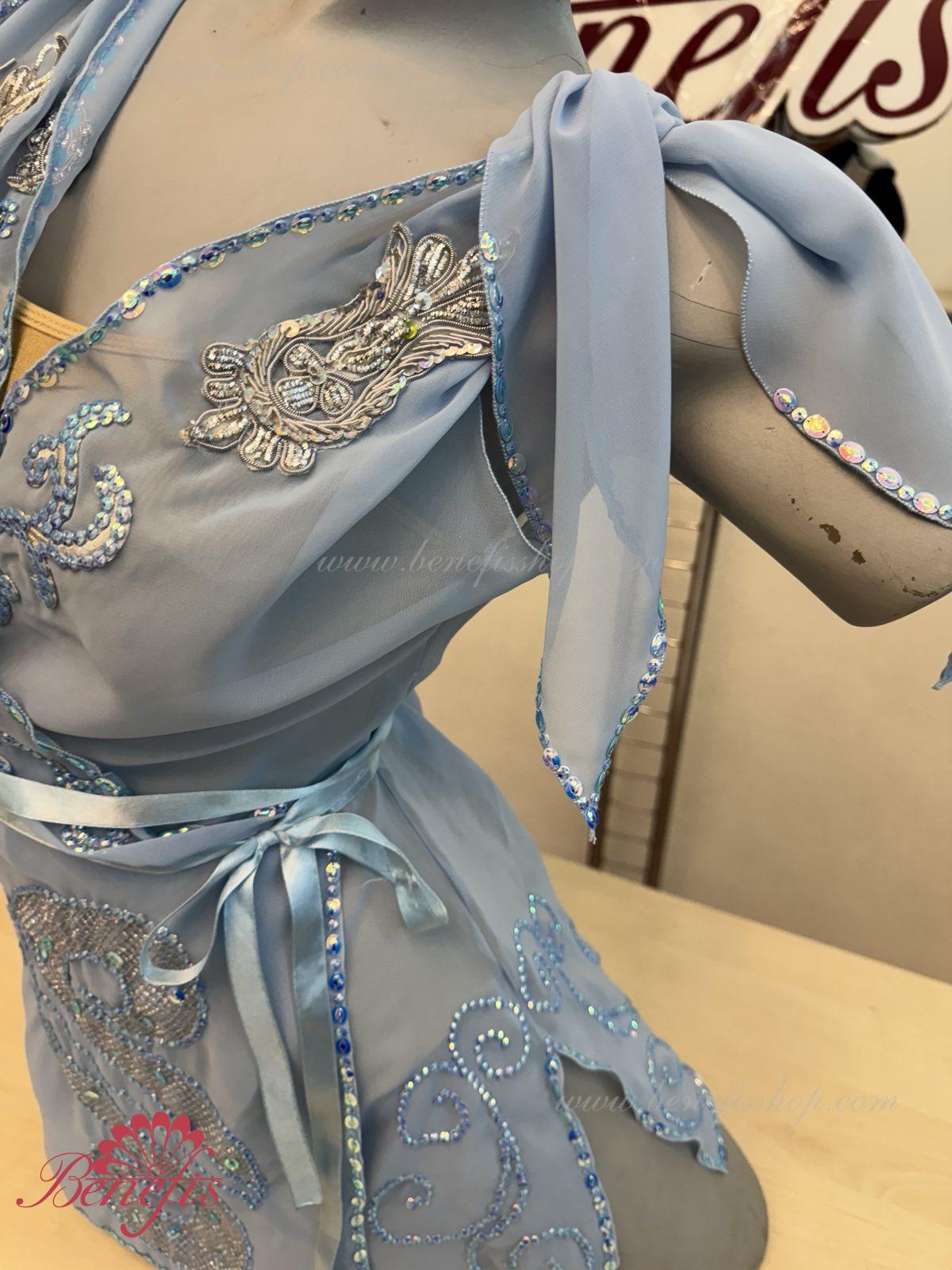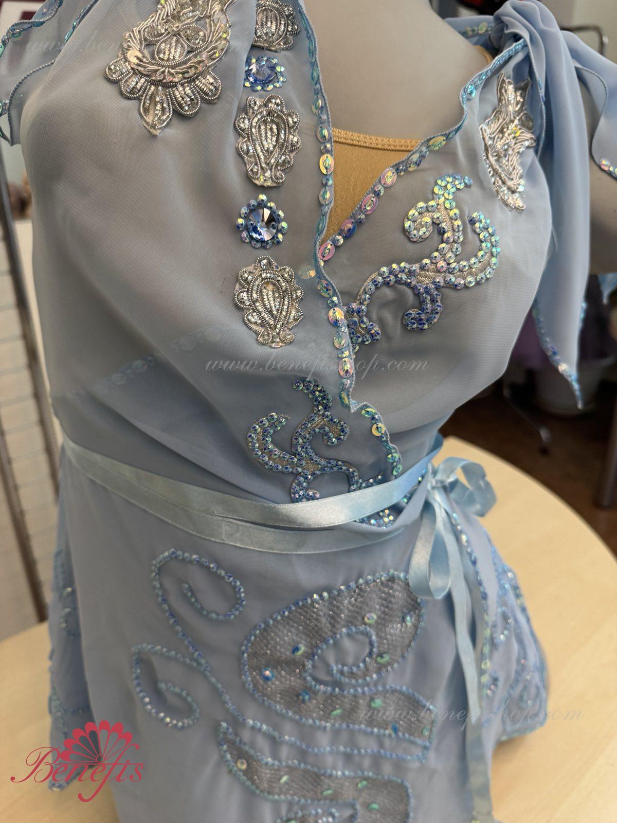 Costumul este bogat ornamentat cu diverse aplicatii, strase, paiete si margele marunte.